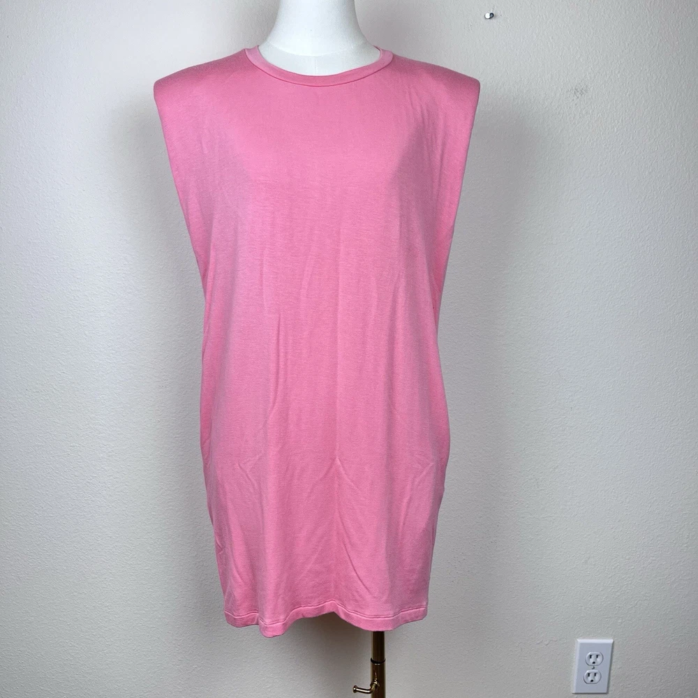 Elan Womens T Shirt Dress Modal and spandex blend Shoulder pads Sleeveless Mini Shift Preppy. Coastal. Classic. Basic. Capsule . Good used conditon Measurements in photos. Size S