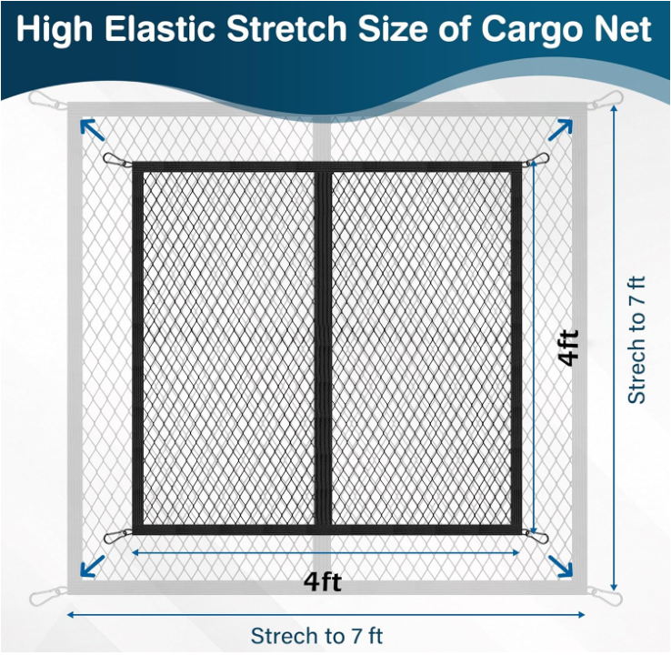 Cargo Net for Pickup Truck Bed, High Elastic Cargo Net with Fine Mesh and 8 Metal Hooks, Stretches from 4'×4' to 7'×7', Ideal for Most Vehicles and Boat, Truck Bed Netting for Cargo Secure Transport Size 4'x4' Vehicle Service Type ATV, Van, Car, UTV, Truck, Boat Material Nylon Color Black Brand Upitay About this item UNIVERSAL FIT, ROCK-SOLID HOLD - With 8 tough metal carabiners and a super sturdy 1"x1" mesh, this cargo net for pickup truck bed is like a safety blanket for your stuff. Even on the roughest roads, this truck bed cargo net holds everything tight, keeps your cargo tightly secured—no shifting, no spills, just peace of mind. SO EASY, ANYONE CAN USE IT - Forget about struggling with complicated tying and knotting! Our truck bed net has a simple locking system that makes securing your load a breeze. Just hook it up, lock it in place, and you’re good to go. Loading up has never been quicker or simpler! PREVENTS CARGO COLLISIONS, REDUCES NOISE DURING TRANSPORT - Whether you drive a pickup truck, a trailer, an SUV, or even an ATV/UTV or a boat, this truck bed netting for cargo has got you covered, always keeping your cargo safe and secure. PERFECT SIZE, LIGHTWEIGHT YET DURABLE - The roof rack cargo net is stretchy enough to cover most thing, particularly well for securing loose items, ideal for for daily use without adding bulk. A GIFT THAT’S ACTUALLY USEFUL - Looking for the perfect gift for an outdoor lover? This truck net is something they’ll actually use. It’s great for birthdays, holidays, or Christmas—give it to your dad, your partner, or your friends, and they’ll thank you every time they hit the road! . We offer FREE shipping on all orders! . We ship within Five business days of payment, usually sooner. . We use a selection of shipping services such as UPS, FedEx, USPS etc. . We only ship to the lower 48 states, no APO/FPO addresses or PO Boxes allowed. . Local pickups and combined shipping options are not provided at this time. . Your satisfaction is a wonderful reward for our efforts. Please assist us by leaving a positive review if you feel pleased with our service. . In the event that you encounter any difficulties related to your order, please do not hesitate to reach out to us directly through the Messaging system on the Ebay platform. Kindly consider opening a COMPLAINT or a RETURN REQUEST as a last resort, only after all other possible measures have been attempted and we have been unable to provide you with assistance. . We will get in touch with you within 24 hours and make every effort to ensure your satisfaction. . Please rest assured of our service quality.