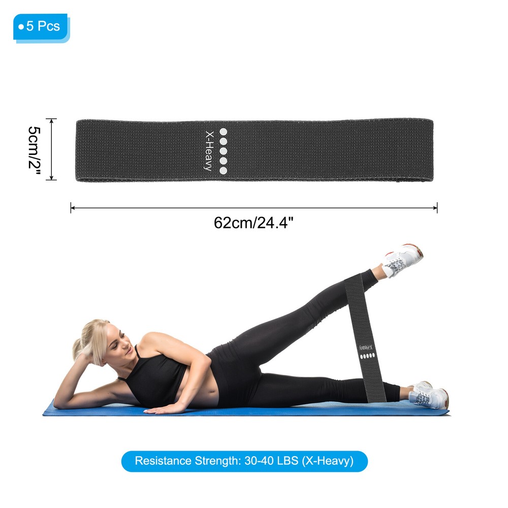 Document These resistance bands are suitable for working out, stretching, yoga, pilates, squats, lunges, glute bridges, kicks, etc, specifically target and engage your booty, legs and thighs. It is great for body-shaping and muscle-strengthening routines.SpecificationColor: BlackMaterial: Polyester Cotton, Latex SilkResistance Strength: 30-40 LBS (X-Heavy)Size: 62 x 5 cm / 24.4 x 2 inch (L*W)Packing List: 5Pcs x Exercise BandsAdvantageFine workmanship, good elasticity, sturdy and durable, and wear-resistant. Workout band is lightweight and portable, perfect for home, travel, on-the-go, and gym, you can pack it in your fitness bag, backpack, or luggage, allowing for efficient training anytime and anywhere.Instruction5 levels of resistance levels from beginner to professional. X-Light is 5-10 LBS, Light is 10-15 LBS, Medium is 15-20 LBS, Heavy is 25-30 LBS, X-Heavy is 30-40 LBS.NOTE: Please choose the appropriate resistance band according to your needs. Elastic Fabric Resistance Bands Exercise Workout Bands X-Heavy, Black 5 Pack These resistance bands are suitable for working out, stretching, yoga, pilates, squats, lunges, glute bridges, kicks, etc, specifically target and engage your booty, legs and thighs. It is great for body-shaping and muscle-strengthening routines. Specification Color: Black Material: Polyester Cotton, Latex Silk Resistance Strength: 30-40 LBS (X-Heavy) Size: 62 x 5 cm / 24.4 x 2 inch (L*W) Packing List: 5Pcs x Exercise Bands Advantage Fine workmanship, good elasticity, sturdy and durable, and wear-resistant. Workout band is lightweight and portable, perfect for home, travel, on-the-go, and gym, you can pack it in your fitness bag, backpack, or luggage, allowing for efficient training anytime and anywhere. Instruction 5 levels of resistance levels from beginner to professional. X-Light is 5-10 LBS, Light is 10-15 LBS, Medium is 15-20 LBS, Heavy is 25-30 LBS, X-Heavy is 30-40 LBS. NOTE: Please choose the appropriate resistance band according to your needs. Hot Item Payment 1.We accept eBay payment . 2.Payment must be received within 7 business days of auction closing. Shipping 1.We ship to your eBay or Paypal address. Please make sure your eBay and Paypal address is correct before you pay. 2.Items will be shipped within 1-3 business day when we received payment. 3.Delivery time depends on destination and other factors. Description Policy Elastic Fabric Resistance Bands Exercise Workout Bands X-Heavy, Black 5 Pack These resistance bands are suitable for working out, stretching, yoga, pilates, squats, lunges, glute bridges, kicks, etc, specifically target and engage your booty, legs and thighs. It is great for body-shaping and muscle-strengthening routines. Specification Color: Black Material: Polyester Cotton, Latex Silk Resistance Strength: 30-40 LBS (X-Heavy) Size: 62 x 5 cm / 24.4 x 2 inch (L*W) Packing List: 5Pcs x Exercise Bands Advantage Fine workmanship, good elasticity, sturdy and durable, and wear-resistant. Workout band is lightweight and portable, perfect for home, travel, on-the-go, and gym, you can pack it in your fitness bag, backpack, or luggage, allowing for efficient training anytime and anywhere. Instruction 5 levels of resistance levels from beginner to professional. X-Light is 5-10 LBS, Light is 10-15 LBS, Medium is 15-20 LBS, Heavy is 25-30 LBS, X-Heavy is 30-40 LBS. NOTE: Please choose the appropriate resistance band according to your needs. Hot Item Payment 1.We accept eBay payment . 2.Payment must be received within 7 business days of auction closing. Shipping 1.We ship to your eBay or Paypal address. Please make sure your eBay and Paypal address is correct before you pay. 2.Items will be shipped within 1-3 business day when we received payment. 3.Delivery time depends on destination and other factors.