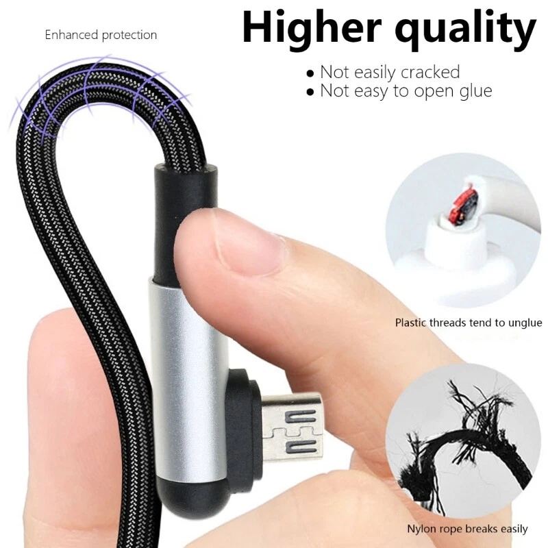 Features: Elbow design: Adopting elbow design, it can use in narrow space for more convenience. Nylon material: The outer layer is craft from nylon braidedmaterial, good wear resistance and tensile strength, and can effectively prevent the breakage and damage of cable. Micro USB universal: The Micro USB interfaces is compatibility with various devices, such as Micro USB phones, tablets, Fast charging function: supports 5A fast charging technology, which can quickly, save users charging time, and improve charging efficiency, support data transmission. Durability: Quality materials, with strong durability and stability, bearing wear and plugging under conventional usage conditions. Specifications: Material: Nylon Braided Wire+Copper Color: refer to pictures to please Length: about 1.2m/3.9ft Package Includes: 1x Charging Cable note: Please allow 1-2cm errors due to manual measurement. Please allow for slight color differences due to different display resolution.