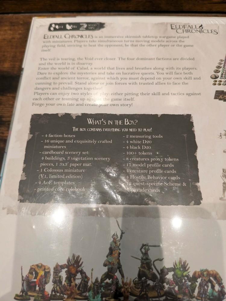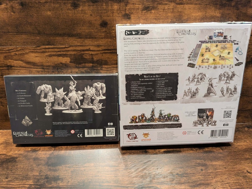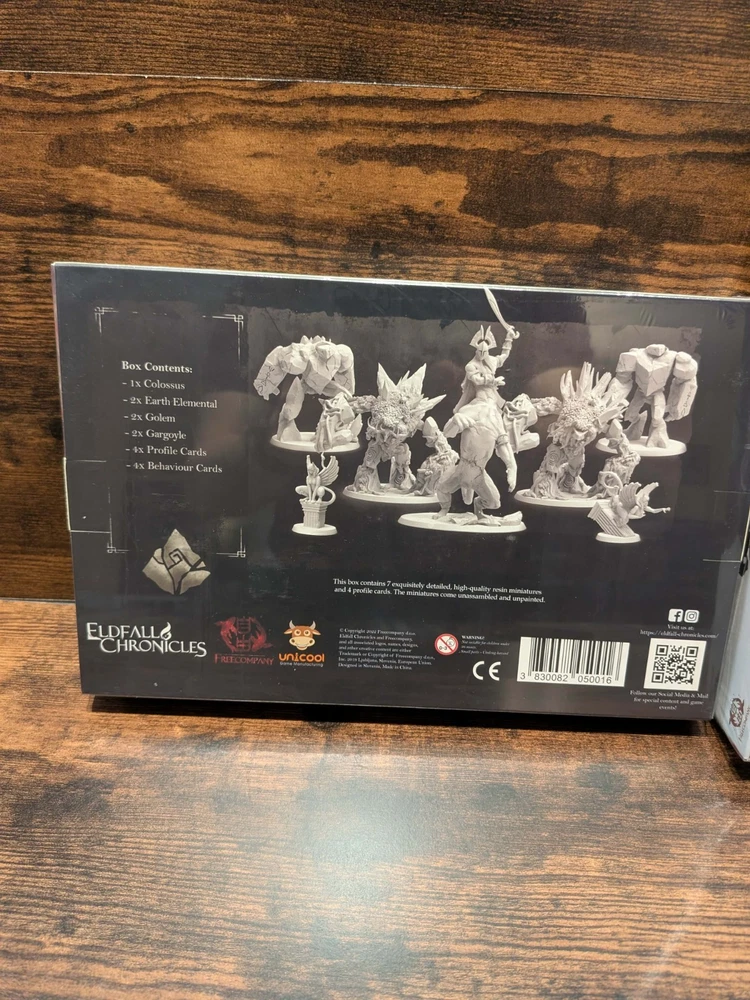 ⚜️ WATTS WARGAMES BOUTIQUE: THE DEFINITIVE 1ST RUN BUNDLE ⚜️ This is a premier acquisition for the serious collector. Watts Wargames Boutique has secured a strictly limited number of Free Company Eldfall Chronicles 1st Run Archive Bundles . These are original production assets from the "Mar" wave, featuring the most sought-after sculpts in the skirmish range. Bundle Components: 1st Run Core Box: Original Limited Edition containing the Exclusive Female Colossus (NLA/Out of Print). Earthen Creatures Expansion: The essential companion set to complete the faction's tactical depth. Archive Status: Condition: New-in-Box (NIB) / Factory Sealed. Rarity: No Longer Available (NLA) via retail. These are 1st Run originals. 📜 Official Archive Manifest: Eldfall Chronicles 1st Run Skirmish Box This box contains everything you need to play! 4 Faction Boxes 16 Unique and Exquisitely Crafted Miniatures Cardboard Scenery Set: 4 buildings 5 vegetation scenery pieces 1 3x3 paper mat 1 Colossus Miniature (V1, Limited Edition, Female) 4 AoE Templates Printed Core Rules 2 Measuring Tools 4 White D20 Dice 4 Black D20 Dice 100+ Tokens 8 Creatures Proxy Tokens 17 Model Profile Cards 4 Creature Profile Cards 4 Hostile Behavior Cards 12 Quest-Specific Scheme & Upgrade Cards ➕ PLUS: The Earthen Creatures Expansion The Earthen Creatures Expansion includes 7 summonable creatures of the Earth Element that add immersion and provide an epic atmosphere of massive proportions to your games. Complete Contents: 1x V2 Colossus - Living statue centaur-like giant 2x Earth Elementals - Tree-like beings with rocks and vines 2x Golems - Rocks in humanoid shape 2x Gargoyles - Egyptian sphinx-like creatures (each with different pose) Bonus creature behavior and profile cards 🎯 Ideal For: Elite Players: Those who dare to tackle more difficult quests and face multiple monsters. Sand Kingdoms Tacticians: Players who wish to summon hordes of monsters under their command. The Atmospheric Collector: Adding epic scale and narrative depth to every session. ⚠️ Important Archive Notes: Expansion Status: This is an expansion. The base game (included in this bundle) is required to play. Condition: All miniatures come unassembled and unpainted. Assembly: Access the official assembly guide on the Eldfall Chronicles website under "Resources". Watts Wargames Boutique Fulfillment: We specialize in collector-grade logistics. This bundle will undergo our Armored Fulfillment protocol: double-boxed with internal suspension to ensure the box corners remain crisp upon arrival. Secure this piece of Free Company history today.