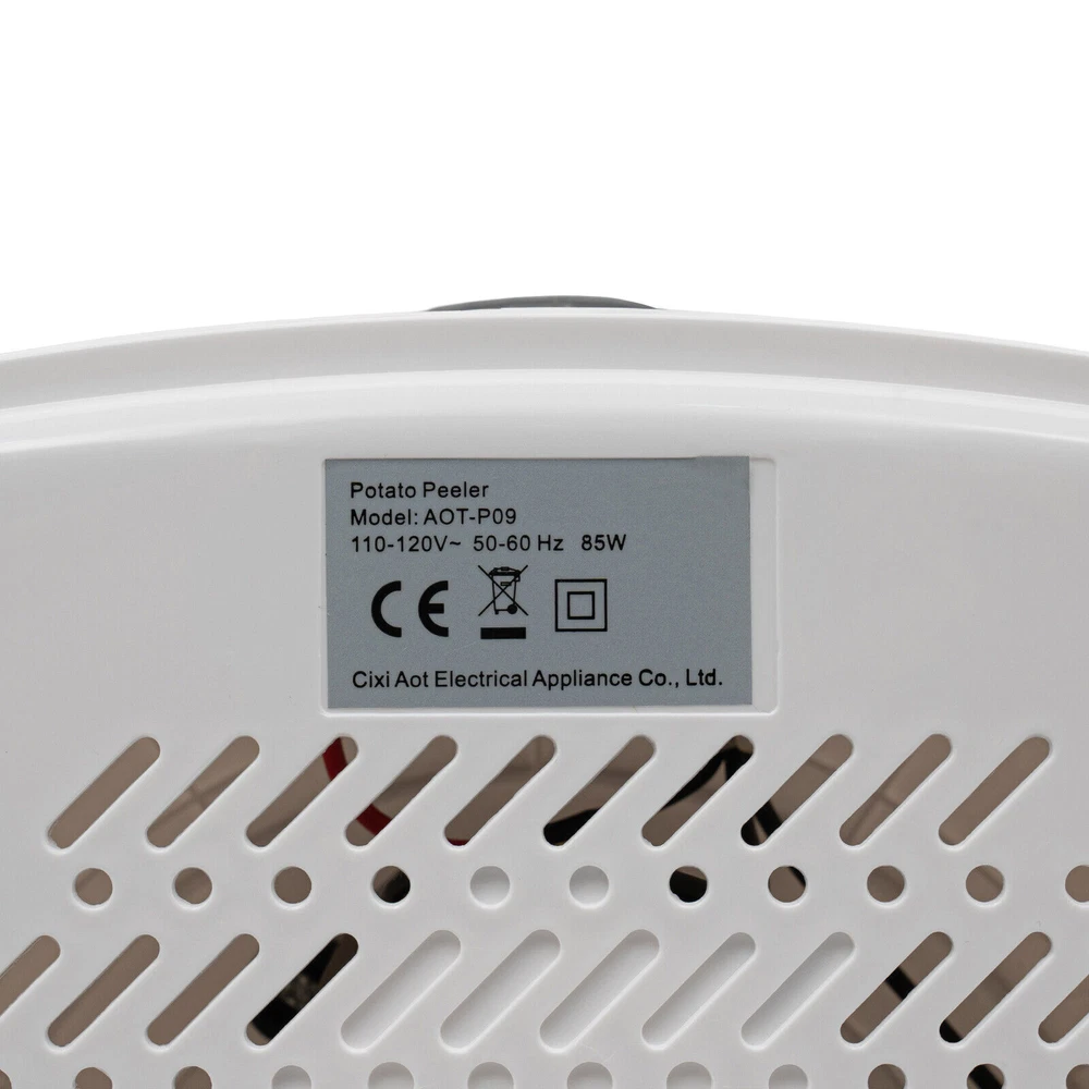 Electric 85W 110V Fruit Vegetable Kitchen Peeler Potato Automatic Spinner Peeler Description Peeling potatoes manually is time-consuming and laborious, with a risk of accidentally cutting your fingers. So you need an electric potato peeler, our product is made of high-quality material and a powerful motor. Simple operation allows you to peel potatoes and drain vegetables quickly, it will be your ideal purchase! Key Features Last and Durable: It is made of high-quality ABS+PS+PP with good toughness and formability that can resist wear, corrosion, and has a long service life. Powerful Function: The powerful 85w pure copper motor allows you to peel the potatoes in about two minutes with smooth surface, so you can cook more conveniently! Life Assistant: It only takes one button to start, you can say goodbye to the traditional time-consuming and laborious hand-peeling of potatoes and take care of your fingers! Good Heat Dissipation: Uniform and dense heat dissipation holes at the bottom can help the product dissipate heat in a timely manner, improving the durability and safety of the product. Multi-functional Use: It can peel about 1.76 lbs of potatoes in addition to holding about 0.77 lbs of vegetables for drying, making it a great value for money with two machines in one! Space-saving: With its compact size (11.14*9.3-inch) and cylindrical design, you can store it in a cabinet without taking up too much space. Ideal Gift: With its practicality, you can give it Christmas or Thanksgiving gift to your friends or family. Protective Package: This product comes in customized foam to resist normal compression and falls, which can prevent product damage in transit as much as possible. Customer Service: We aim to provide quality products and services. If you have problems, please feel free to contact us. We will reply and solve the problem for you as soon as possible. Details Anti-slip Pads: 4 non-slip pads on the bottom ensure stable placement. Locking Clips: The black locking clips on both sides secure the top cover and make it easy for you to carry the product. Visible Cover: It allows you to watch the potato peeling inside at all times. Application It can be used in kitchens, restaurants, fast food stores, hotels, etc. for drying vegetables and peeling apples or vegetables similar to potatoes. Specifications Material: ABS+PS+PP Color: White Model: AOT-P09 Shape: C ylinder Number of Pieces: 1 Mounting Type: Table Standing Assembly Required: Yes Power Source: Corded Electric Plug Type: US Standard Motor: Pure Copper Motor Power: 85W Voltage: 110-120V, 50-60Hz Peeling Time: About 2 mins Capacity: Max 0.8kg/1.76 lbs Potatoes Gross Weight: 9.9kg/21.83lbs Net Weight: 8.9kg/19.62lbs Product Size: 28.3*23.6cm/ 11.14*9.3in Package Size: 28.3*28.3*25cm/11.14*11.14*9.84in Package Included 1* Electric Potato Peeler 1* Cover 1* Pallet 1* Basin 1* Draining Basket 1* English Manual Notes Please read the instruction manual carefully before use and pay particular attention to the safety instructions contained therein. Please note that this product does not include potatoes or other vegetables, and this product should only be used for peeling potatoes or draining vegetables. Please allow the slight color difference caused by the shooting light and 1-3cm error due to manual measurement, and make sure you do not mind before ordering. Shape Cylinder Number of Pieces 1 Mounting Type Table Standing Assembly Required yes Power Source Corded Electric Plug Type US Standard Motor Pure Copper Motor Power 85W Voltage 110-120V, 50-60Hz Peeling Time About 2 mins Capacity Max 0.8kg/1.76 lbs Potatoes Gross Weight 9.9kg/21.83lbs Net Weight 8.9kg/19.62lbs Product Size 28.3*23.6cm/11.14*9.3in Package Size 28.3*28.3*25cm/11.14*11.14*9.84in Brand Unbranded Type Vegetable Peeler Material ABS+PS+PP Color White Model AOT-P09