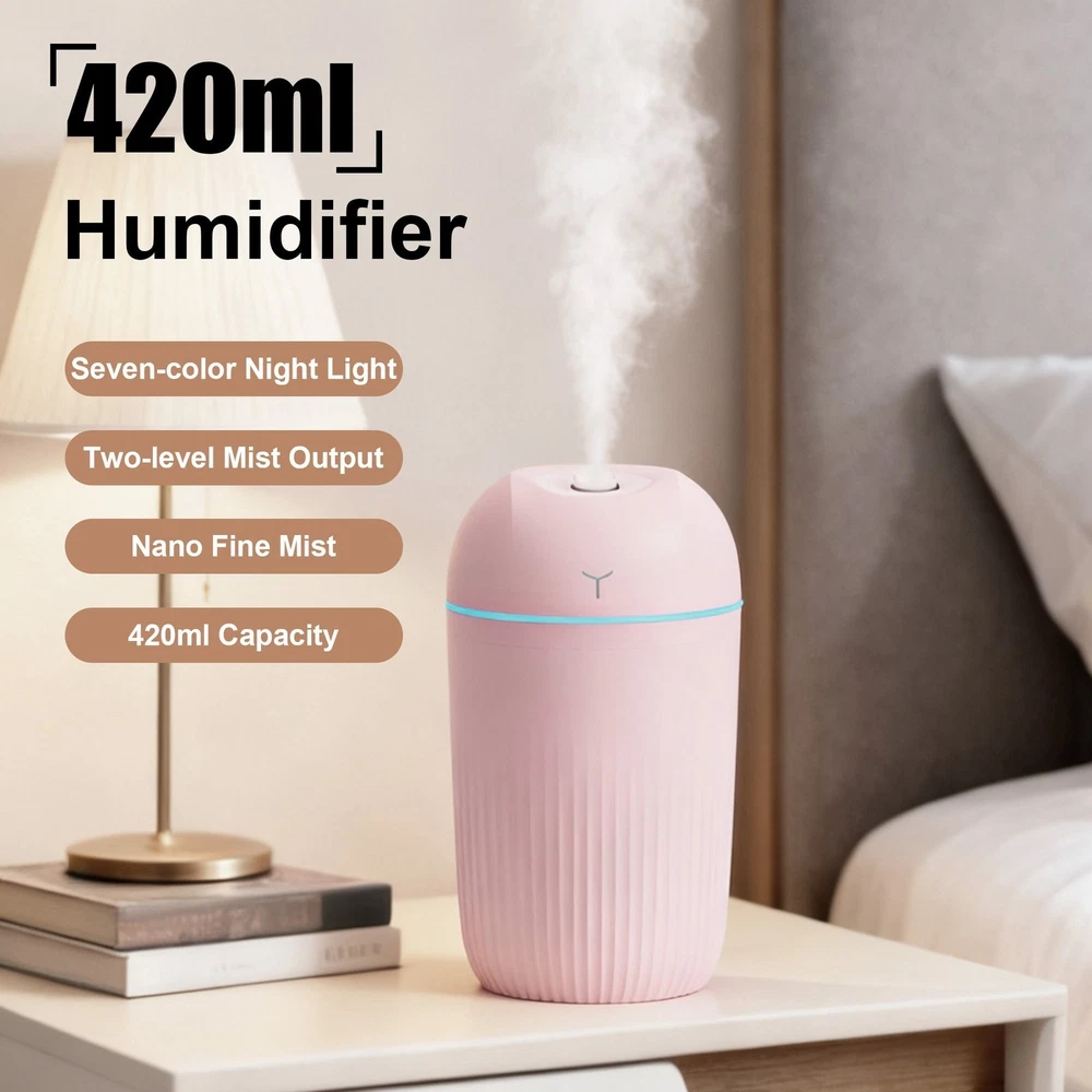 Features: *Mini size and portable: The humidifier is designed in a mini size, which makes it easy to carry and use in various places such as home, car, dormitory, bedroom, and office. It is perfect for creating a comfortable and soothing atmosphere. *Silent operation: This humidifier adopts advancedtechnology, silent operation without causing any disturbance while sleeping or working. Enjoy the quiet environment and improve your sleep quality. *Large water capacity: With a capacity of 420ML, this humidifier can continuously work for up to 10 hours. It effectively moisturizes the air and helps relieve dryness, chapped lips, and dry skin in dry seasons or air-conditioned rooms. *USB-powered: The humidifier can be easily powered by USB, making it convenient to use with power banks, laptops, desktops, or car chargers. No need to worry about finding a power outlet. Stay moisturized wherever you go. Specifications: *Product Name:Mini humidifier *Material: silicone/PP/ABS/Electronic component *Size:10.8*10.8*15cm *Color:white/ pink Package Content: 1*white/pink mini humidifier Note: 1. The real color of the item may be slightly different from the pictures shown on website caused by many factors such as brightness of your monitor and light brightness. 2. Please allow slight manual measurement deviation for the data.