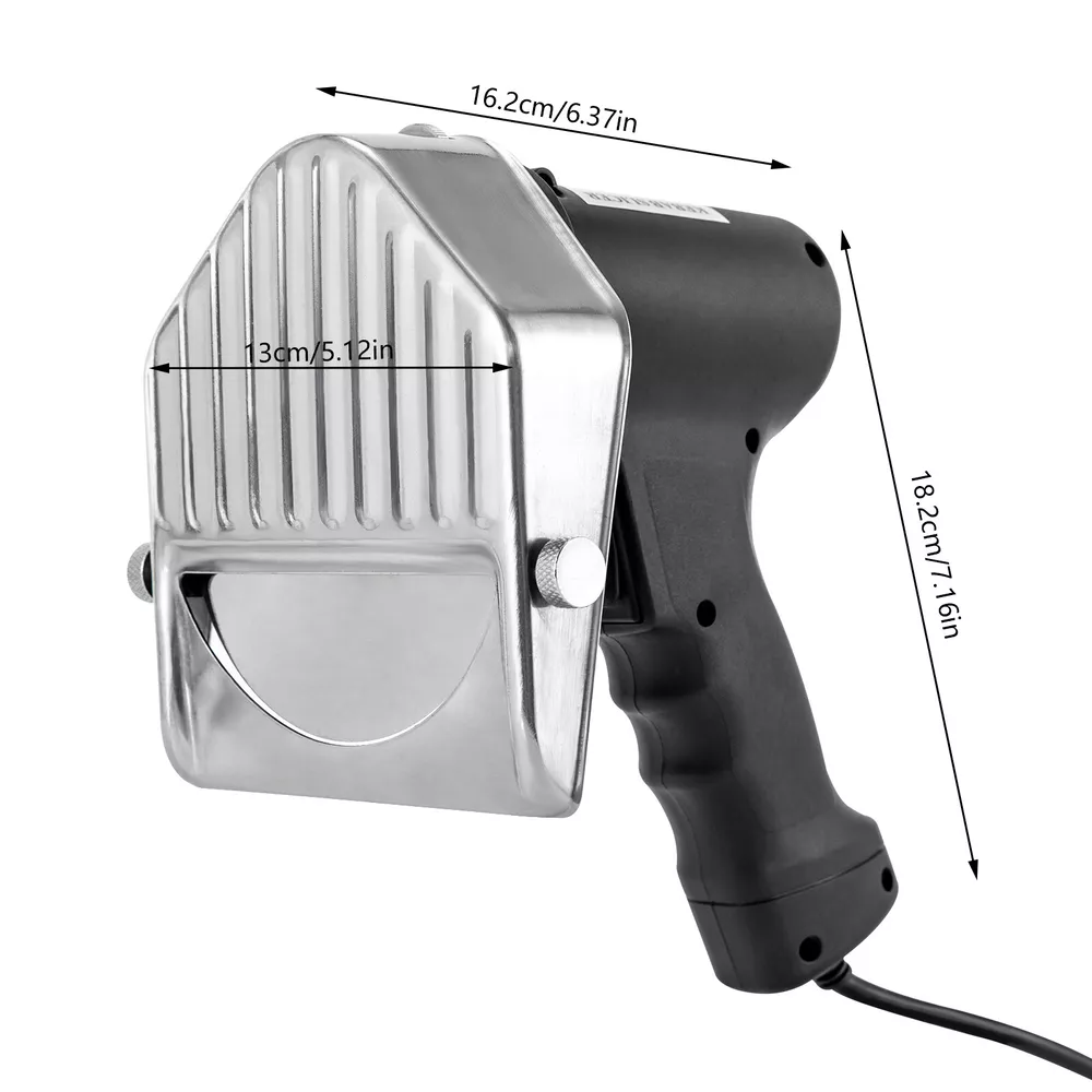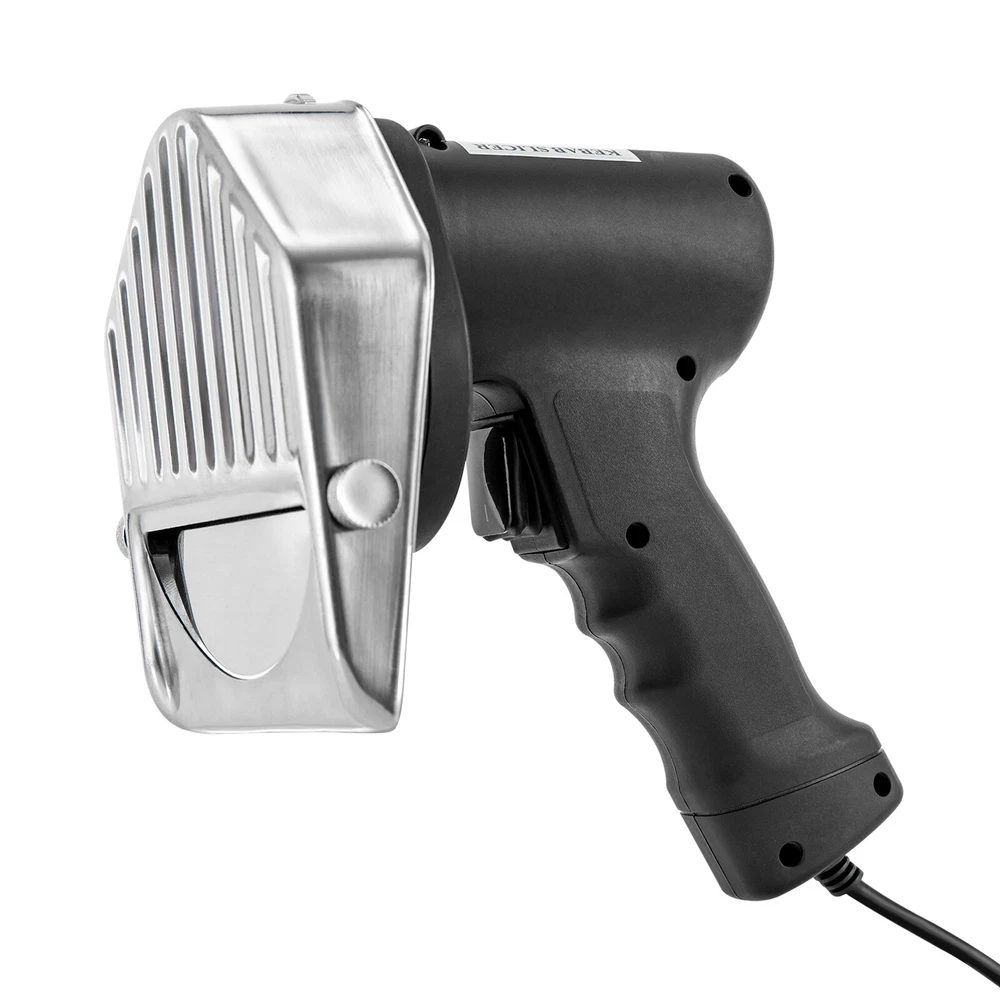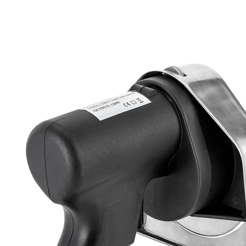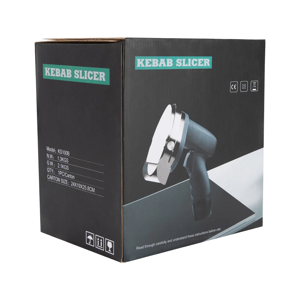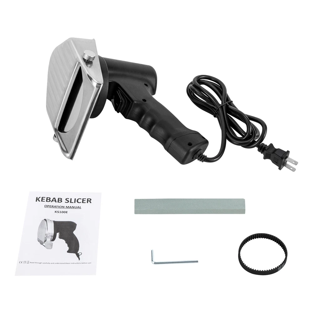 Electric Barbecue Slicer 120W Portable Sliced Cutter Doner Cutting Knife Machine Description This kebab slicer with a sharp blade and strong power helps you prepare food quickly. The adjustable design allows you easily change cutting thickness according to your actual needs. The blade cover can maximize safety during use. It will be a great addition to cooking tools! Let's say goodbye to the waiting and enjoy your food as soon as possible. Key Features Sturdy and Durable : The plastic and stainless steel can resist corrosion, rust and wear, shock, deformation, and break, which are safe to use and ensure extended service life. High Efficiency : The sharp blade and strong power with 120W improve its efficiency and quality, making meat come apart quickly, greatly shortening your cooking time, reducing customer waiting time, and boosting store traffic. Adjustable Design : The cutting thickness can be adjusted between 0-10mm by adjusting the screw on the top to suit your needs. Once the adjustment is complete, the thickness can be quickly locked with the threaded screws on the side, providing you with a taste experience with different flavors. Safe to Use : The stainless steel protection cover can avoid direct contact with blades and prevent hurt from high-speed spinning blades, ensuring your safety while slicing the meat quickly. Comfortable Grip : The ergonomic handle is comfortable to hold, which is anti-slipping and labor-saving and allows for long-time work without hand soreness. Easy to Clean : The detachable blade and simple structure allow for easy cleaning. The blade can be rinsed with clean water or wiped with a wet cloth. Protective Packaging : To prevent the product from being damaged during transportation, we packed it with the sponge to protect your products to the maximum extent possible. Guaranteed Customer Service : We aim to provide quality products and services. If you have problems, please feel free to contact us. We will reply and solve the problem for you as soon as possible. Details Power Cord : The 4. 92 ft long cord reduces usage limitations. In addition, the power cord with a protective sleeve can guarantee more stable and reliable current and voltage, ensuring safer use. Whetstone : The attached whetstone can help you sharpen your blade more conveniently and timely. Power Switch : One-click mode allows for one-hand operation, providing you with more convenience. Spare Power Line : You can replace the worn line timely after long time use, ensuring the excellent performance of the product. Application It is suitable for cutting various kinds of meat and bones in roast meat shops, restaurants, snack bars, families, etc. This product is suitable for all revolving kebab machines or outdoor kebab machines. Specification Material: Plastic, Stainless Steel Model: KS-120E Color: Black Number of Blades: 1 Operation Mode: Electric Plug Type: US Standard Power: 120W Voltage: 110V Cutting Thickness: 0-10mm/0-0.39 in Net Weight: 1.4kg/3 lbs Gross Weight: 1.7kg/3.7 lbs Power Cord Length: 1.5m/4.92ft Blade Diameter: 12cm/4.7 in Blade Cover Width: 13cm/5.12 in Product Size(L*H): 16.2*18.2 cm/6.37*7.16in Package Size: 26.5*23*18cm/10.4*9*7 in Package Included 1* Kebab Slicer 1* Whetstone 1* Power Line 1* Allen Key 1* English Manual Notes To avoid overheating of the motor, the equipment can only be opened during cutting. The maximum uninterrupted operation time is 15-20 minutes. After cooling, the device can continue to be used. Please note that this product is strictly prohibited from being directly rinsed with water. Its blades are very sharp, so pay attention to safety during installation, replacement, and cleaning of blades. It's recommended to wear gloves (not included) when cleaning to avoid injury. Children are strictly prohibited from using or playing with it. Please allow the slight color difference caused by the shooting light and 1-3cm error due to manual measurement, and make sure you do not mind before ordering. Payment Delivery details Terms of sales About us Contact us Payment We accept ebay payment 。 Fees such as import duties, taxes are not included in the item price or shipping costs. These charges are the buyer's responsibility. Delivery details Shipping: 2-9 working days to: USA Terms of sales We maintain high standards of excellence and strive for hundred percent customer satisfaction. Feedback is very important to us. We hope that you contact us immediately before you give neutral or negative feedback, so that we can address your concerns. It is impossible to address issues if we do not know about them! About us Your satis faction is our ultimate goal. We work hard to earn your trust and future business. Our certified technicians have tested each item before shipping. The unit comes with 1 year limited warranty on all manufacturing defects. a) If you receive a defective item, you may return it or ask for a discount. Please contact us within 14 days after you receive the package. b) What you returned must be intact and in its original packaging as re? u. Customer is responsible for shipping costs of the returned item. c) We will cover the cost of shipping back t with the shipping rate indicated in the registration page. We will send you a new unit or refund the full payment you paid. Thank you. Contact us Business Hour Business Hour: Monday To Friday: 8:30 AM to 5:00 PM (Beijing China time) Due to time zones, our reply to your questions may not be immediately. But within above working time, we will reply your email within 24 hours. If it's non-workdays, please kindly be patient and wait till Monday. Please contact us with ebay message. Please feel free to contact us if you have any questions. Monday To Friday: 8:30 AM to 5:00 PM (Beijing China time) Due to time zones, our reply to your questions may not be immediately. But within above working time, we will reply your email within 24 hours. If it's non-workdays, please kindly be patient and wait till Monday. Ple