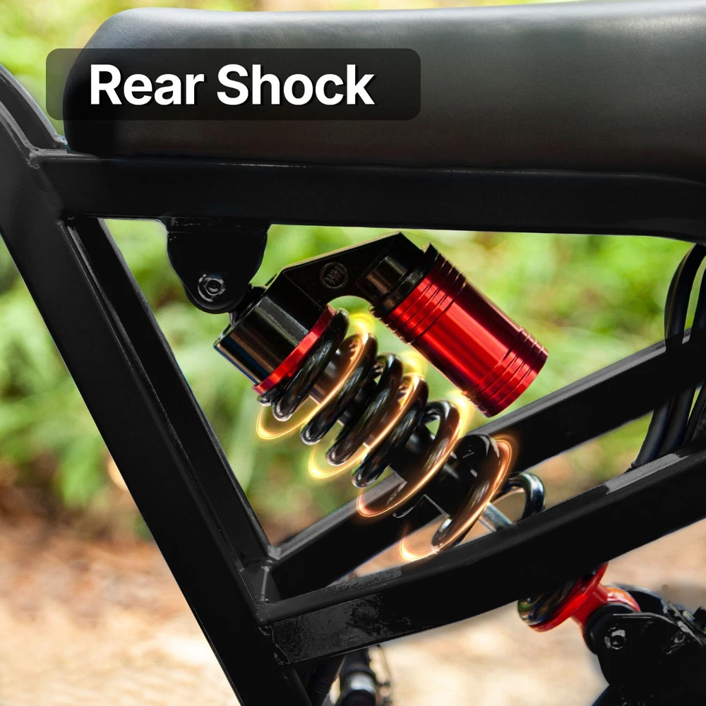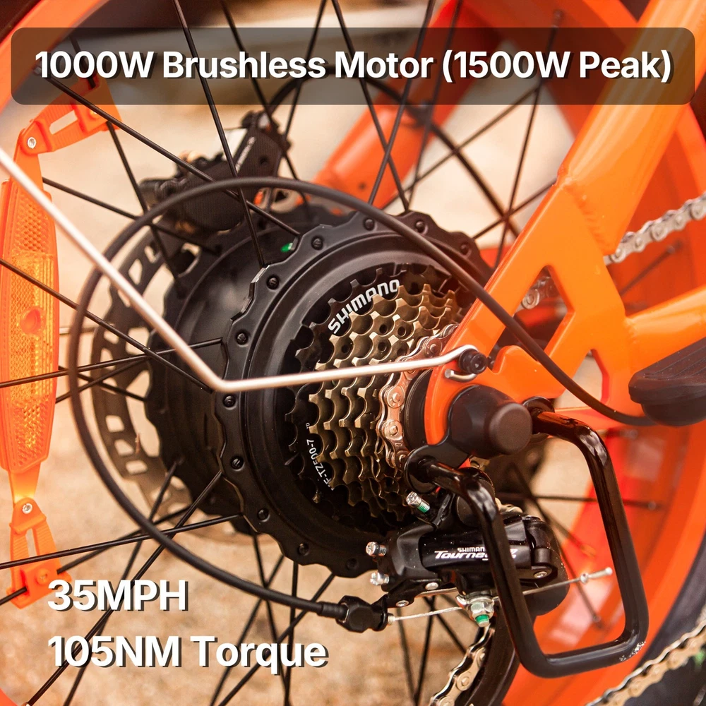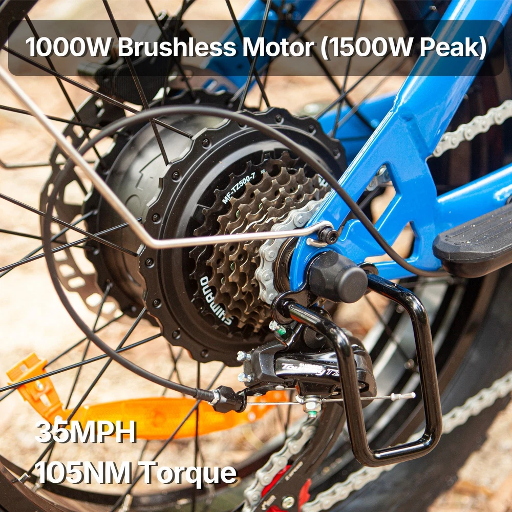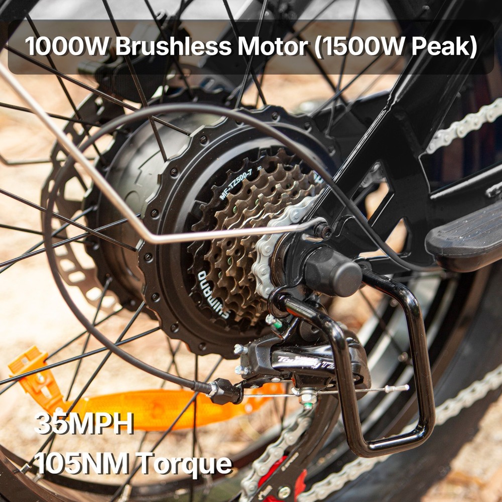 Why BLUVALL? The e-bike is designed for convenience in both commuting and adventure, featuring a speed of 35MPH and a long range of 60 miles,Barely any maintanence. E-SYSTEM Class Class 1/2/3 (Switchable) Motor Rear Geared Hub Brushless Motor, Rated 1000W (1500W Peak) Motor Torque 105Nm Controller 52V 28A Peak Battery Removable BMS Lithium-ion battery, 52V 20Ah, 1040Wh Certification UL 2849 & UL 2271 Certified (Entire e-bike system and battery are certified) Charger 58.8V 3 Amp, Aviation Connector Charge Time 5~8 Hours Max Speed 35MPH Max Range Up to 60 miles by pedal assist, 40+ miles by throttle (based on 70kg rider; varies with conditions) FEATURES Display Backlit LCD Multifunctional Display USB Port Display-Integrated USB Charging Port to charge your phone on the go Lights Integrated 100Lux Headlight & Rear Light with Turn Signals Riding Modes 3 Distinct Riding Modes, 5 Levels of Pedal Assist Pedal Assist 5 Levels, Cadence Sensor Speed Configuration Unlock the speed limit to 31MPH, or set the speed limit to a desired safe velocity. Water Resistance IPX6 Rating (Protects against powerful water jets from any direction) COMPONENTS Frame High-Strength Carbon Steel Suspension Full Suspension Front Fork Dual Crown Suspension Fork (120mm Travel) with lock-out and rebound adjustability for pro-level control and handling. Rear Shock Heavy-Duty Rear Shock (210mm x 800lb) engineered to support heavy payloads and absorb major impacts for a stable, planted ride. Brake Front & Rear Hydraulic Disc Brakes Brake Rotor 180mm, 1.9mm thick Throttle Twist Throttle, Ergonomic Right-Hand Throttle Shifter Shimano, 7-Speed Freewheel 7-Speed Rear Derailleur Shimano, Long Cage Crank & Chainring 48T, 170mm Alloy Crank Handlebar Aluminum Ø31.8mm, Width 710mm Grips Nylon Lock-on Seatpost Forged Alloy, Ø30.4 x 350mm Stem Bar bore Ø31.8mm, Clamp I.D. Ø28.6mm, Height 40mm, Rise 0° Rim Material Aluminum Rim Size 20 x 3.0 Rim Type Wheel with Integral Hub Tire Fat Tires, 20″ x 4.0″ Saddle Extended Two-Passenger Saddle, crafted from durable PU leather to comfortably share the ride Pedal 1 Pairs Alloy Platform Pedals Kickstand Side Kickstand Fenders Full-Coverage Front & Rear Fenders Included Phone Holder Included DIMENSIONS & WEIGHT Net Weight 36 kg (79.4 lbs) Gross Weight 45.6 kg (100.5 lbs) Battery Weight 4.2 kg (9.3 lbs) Payload Capacity 150 kg (330 lbs) Recommended Rider Height 5'1"–6'1" (155cm ~185cm) Product Size 172 x 113 x 75 cm Packing Size 145 x 32 x 80 cm 【Powerful Brushless Motor】 Equipped with rated 1000W (Peak 1500W) high-speed hub motor offers enhanced climbing ability to slope 35°, reaching speeds of up to 31mph . You can get excellent riding experience in most road conditions 【 Removable 1040WH BMS Battery 】 Equipped with The detachable 52V 20AH battery offers a long riding range of 40-60 miles in pedal assist mode, sufficient for adventures or most commutes. Two charging methods are available: charging the battery in the bike or removing the battery for charging 【 Full Suspension & 20"x4" Fat Tires 】 Equipped with front suspension fork and rear shock, which greatly reduces bumps during riding. 20 x 4.0'' fat tires also provide great grip and excellent shock absorption, and effectively increase riding stability. This full suspension ebike offers the most comfortable riding in all terrain such as snow, beach, mountain, gravel roads, helps you conquer most road conditions 【 Shimano 7 Speed Gears & Hydraulic Brakes 】 Equipped with professional 7-speed gears and dual hydraulic disc brakes, you can effortlessly shift gears and stop, giving you full control over your riding experience. Choose from 3 working modes - pure electric, pedal-assist, or pure pedal - to suit your preferences and make every ride tailored to your needs 【Multiple Riding Modes】 Choose from pure electric, pedal-assist, or manual cycling modes, each with 5 assistance levels. The 7-speed gear system offers smooth shifting, making this bike perfect for both casual rides and more demanding off-road adventures. 【 Durable and Stylish Frame 】 Equipped with a strong carbon steel frame supporting up to 330 lbs and suitable for riders from 5'1" to 6'1", this electric bike is designed for both comfort and durability. The modern M5 color display adds a premium touch, giving you a stylish and functional bike for any occasion. 【 LCD Display 】Equipped with the modern M5 color display, which provides real-time metrics, including speed, mileage, PAS level, and battery status, adds a premium touch, giving you a stylish and functional bike for any occasion. 【 High-Visibility Front & Rear Lights 】Equiped with an ultra-bright LED headlight and integrated taillights, delivering enhanced visibility and safety, making the rider easily noticeable from all angles, ideal for the dark environments. 【Easy to Assemble】 This e-bike comes 85% pre-assembled. Assembly video will be provided. 【1-Year Warranty】 If there is any problem, pls contact us, we’ll reply your message within 24 hours. We provide lifetime technical support, and committed to providing professional warranty after-sales service for every electric bicycle. Pls keep the original bike box for 30 days for possible return The item is UL 2849 certified with a link to the UL Product iQ https://productiq.ulprospector.com/en
