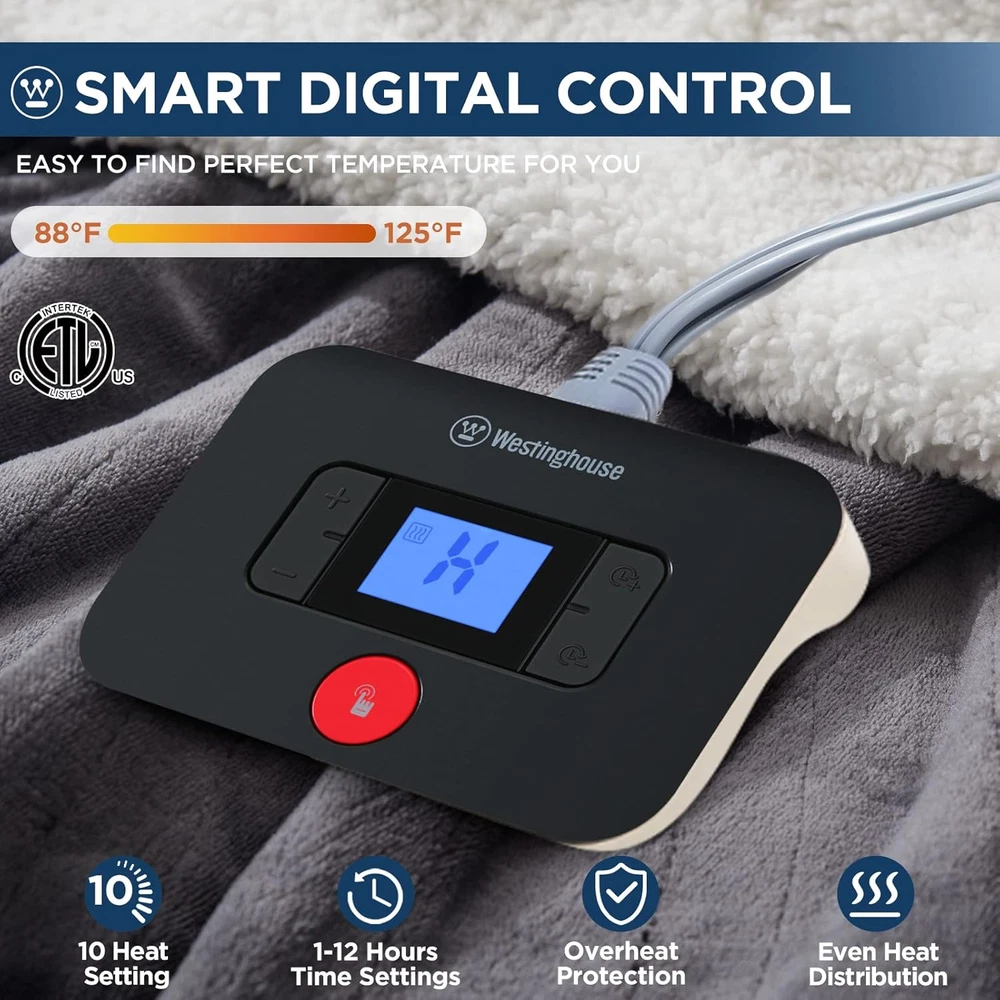 Store New Arrivals Add to Favorite View Feedback Contact Electric Blanket Full, Heated Blanket Full Size with 10 Heating Levels and 1 to 12 Hours Heating Time Settings, Flannel to Sherpa Reversible, Machine Washable (80" X 84", Charcoal) Description Item model number WH-HSF80-CHARCOAL-C Style Modern Weave Type brushed weave Number of Items 1 Pattern Solid Country of Origin China Blanket Form Single Layered Blanket Theme Plain Unit Count 1.0 Count Product Dimensions 84"L x 80"W Material Sherpa Age Range (Description) Adult Seasons Winter Item Thickness 3.94 Inches Model Name WH-HSF80-CHARCOAL-C Water Resistance Level Not Water Resistant Fabric Type Flannel to Sherpa Item Weight 3 pounds Special Feature Skin Friendly Fabric Warmth Description Heavyweight Sport Camping Color Charcoal Recommended Uses For Product Working, Reading, Napping Included Components user manual, heated blanket Product Care Instructions Machine Wash Size Full 80"x84" 【Quick and Consistent Warmth】 Westinghouse electric blanket features high-quality heating wires, densely and evenly distributed throughout. This ensures rapid warming and consistent, comforting heat. 【Soft and Cozy Fabric】 Our heated blanket features a dual-sided design. One side is crafted from ultra-soft and silky flannel, while the other features cozy sherpa fleece for warmth and excellent insulation. 【Easy Operation and Cleaning】 Our heating blanket features a user-friendly controller with 12-hour timer settings and 10 heat levels. For easy cleaning, simply unplug the controller and machine wash the blanket. Always turn off and unplug when not in use. The auto shut-off is designed to complement manual shut-off. 【Reliable Safety】 Our heated blanket features overheat protection system to ensure your safety. It is also ETL and FCC certified, providing peace of mind as you enjoy its comforting warmth. Sleep soundly knowing your safety is a priority. 【Versatile Use】 Westinghouse electric blanket is perfect for use at home, in the office, on the bed, on the sofa, and more. Enjoy its warmth and comfort wherever you need it. We provide good after-sales . If you have any issue, we're always here to help you. Product Description The video showcases the product in use. The video guides you through product setup. The video compares multiple products. The video shows the product being unpacked. 1 SMART CONTROLLER 2 4 LAYER CORE PROCESS 3 COMFORTABLE FABRIC ABOUT US We offer the best prices around on high quality products. Our E-store includes media such as books, movies, music and games while offering electronics, toys, sporting apparel, clothing, tools, general home, garden items and more. SHIPPING We are always working hard to ensure your package arrives as soon as possible. Please understand that some factors like weather, high postal traffic, and the performance of shipping companies are outside of our control. We offer free shipping to the lower 48 states and ship within 2 business days of payment, usually sooner. We do not accept P.O. Boxes. Please provide a physical address. For shipping outside of the continental USA, we only use eBay's Global Shipping Program.The item is shipped to KY and then sent to the rest of the world. International customers are responsible for all duties and taxes. Continue to check out in order to calculate costs for shipping the item to your country. Messages regarding eBay's Global Shipping Program MUST be directed at eBay EXCLUSIVELY. RETURNS We offer a 30-Day Return Policy on items which you are not completely satisfied with. You have the option for a full-refund or an exchange of the item. No returns are available on items shipped outside of the USA. PAYMENT We accept PayPal. CONTACT US This page content is yet to come Please ad us to your favorite seller and visit again later Thank You CUSTOMER SATISFACTION We try our very best to make sure every customer is completely satisfied. If there's a problem, message us! We're happy to help. WE ACCEPT Copyright © 2021 AutoDS. | All Rights Reserved