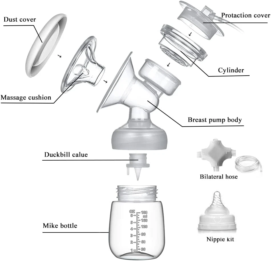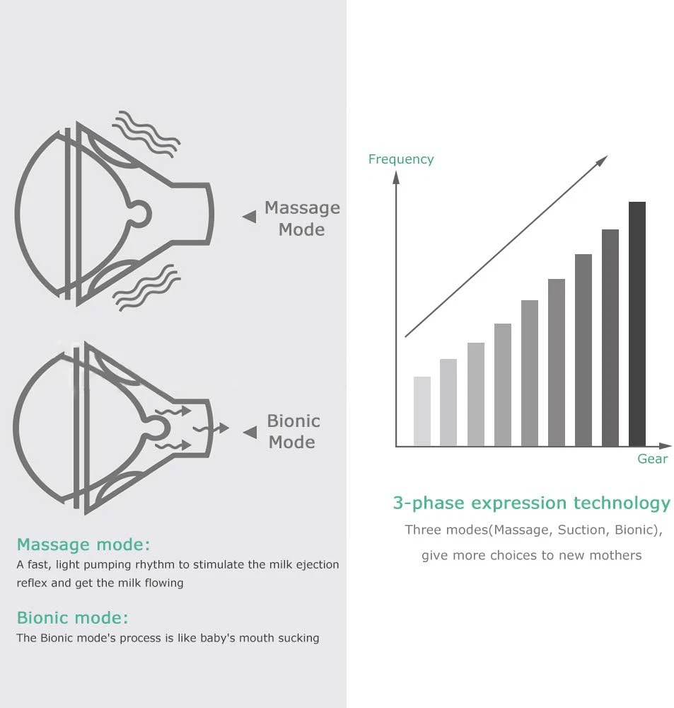 ???3 Modes & 10 Levels & Safe???Automatic breast pumps have 3 modes(Massage, Suction, Bionic), also contains two tubes - Double & Single, give more choices to new mothers. Meet all your needs. ???High Efficiency & Easy to Use???Turn on the electric breast pump and automatically start a gentle pacing mode to stimulate milk flow. It pumps more milk in less time thanks to its 3-phase expression technology.Emovable parts are dishwasher safe. ???Easy to Clean and Compose Double Breast Pumps??? Each component can be flexibly assembled and disassembled. Except for the electrical parts, all other removable parts are dishwasher safe. thanks to its 3-phase expression technology. ???USB Rechargeable Battery Portable Breast Pump???Travel-ready at short time, including a USB charger and built-in lithium battery with large capacity(INPUT: 5V/1A, NOT INCLUDED). A full charge takes about 1.5 hours and can be used 3-4 times. ???3D Soft Massage Cushion???Soft breast cushion massages the areola, and provide a secure seal and snug fit to solve leaking milk.