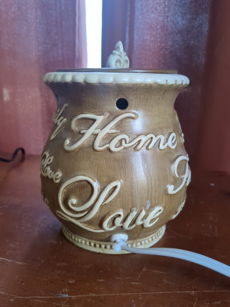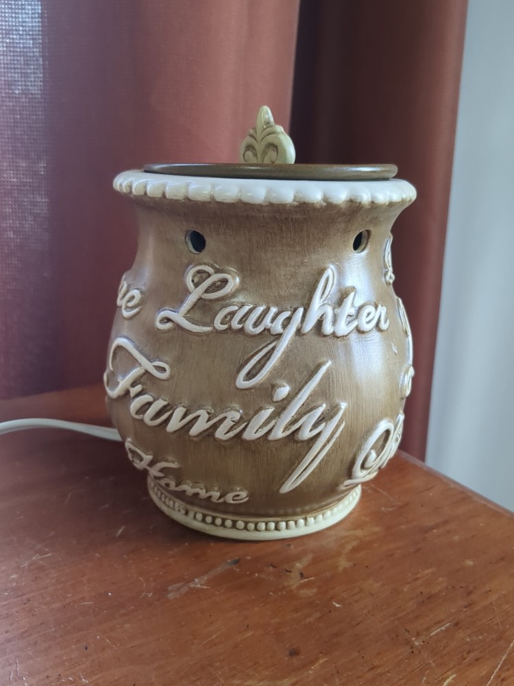 Add some warmth and ambiance to any room with this electric candle warmer. The warmer is made of ceramic and has a tan color and a modern style. It features raised writing of words and letters and is suitable for wickless tart/bar candles. This free-standing warmer has a round shape and measures 6 inches in height. It weighs 2 lbs and is easy to clean with a damp cloth. Perfect for teens and adults, this warmer is a great addition to any home decor, especially for holidays and food & drink themes.