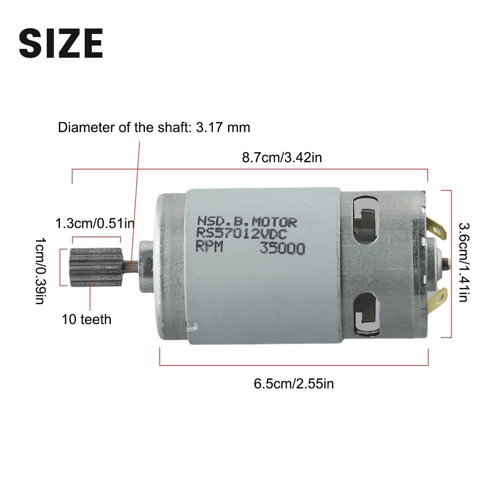 Electric Car Motor Toy Motor Kid Toy Parts 1 Cm 10 Teeth 1Set 6V /12V 24V DESCRIPTION Product Description: brand new high quality Made of high quality material, Children's electric car motor RS550 RS390 RS380 12V 6V RS555 24V 10 teeth 1 cm. The faster the speed, the smaller the torque, conversely, the slower the speed, the greater the torque. Speed: 23000rpm>16000rpm>10000rpm Torque: 10000rpm>16000rpm>23000rpm Torque and power: 570>555>550>390>380 Voltage: 6V /12V 24V strength: 550: 30-45W 390: 25-35W 555: 200W Type: children's electric vehicle motor Model: (optional) 380 6V 14000RPM 380 12V 5600RPM 380 12V 15000RPM 390 6V 18000RPM 390 12V 20000RPM 550 6V 11000RPM 550 6V 13000RPM 550 12V 10000RPM 550 12V 12000RPM 550 12V 16000RPM 550 12V 23000RPM 550 12V 30000RPM 555 24V 18000RPM 555 24V 30000RPM 570 12V 35000RPM Package Included: 1 * electric car motor 1 * gear 1 * motor wire Note: 1.The real color of the item may be slightly different from the pictures shown on website caused by many factors such as brightness of your monitor and light brightness. 2.Please allow slight manual measurement deviation for the data. POLICES Shipping Payment WARRANTY We only ship to confirmed ebay Order addresses. Please comfirm that your Order address is in line with your shipping address. Please kindly note that the c ombined shipping is not provided because the shipping fee is calculated by weight. Also, the each additional item means exactly the the same color and size. It takes about 7 -15 working days to US; about 10-30 working days to other countries. Transit time may be a little delayed because of the bad weather and customs inspection . If you do not receive your item within 30 working days since payment finished, please contact us immediately for further assistance. Payment must be completed within 5 days. If you have any problems about payment, please contact us via ebay message. We strive for 100% customer satisfaction! Positive Feedback is very important to us. If you have any questions, p lease feel free to contact us via "Ask seller a question" . We will reply your email within 24 working hours. On Sep 13, 2024 at 17:27:57 PDT, seller added the following information: