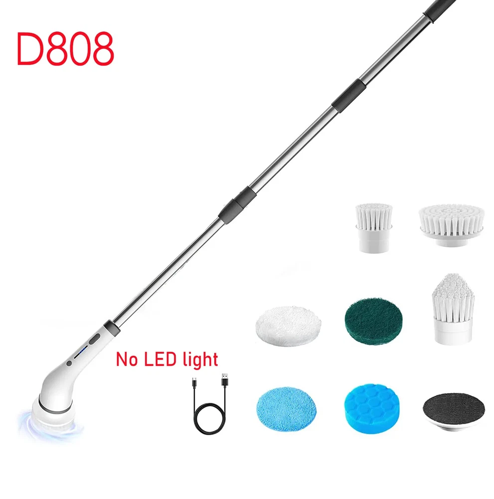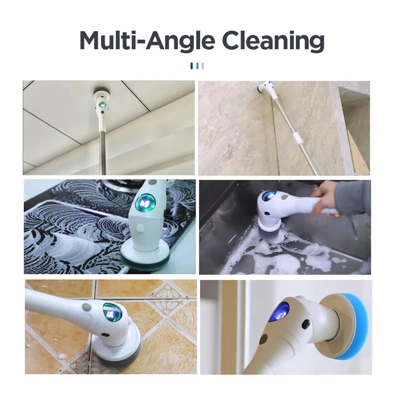 8 in 1 Cordless Powerful Spin Cleaning Brush (with LED Night Light , 3 Speed Control , Battery LED Display) Feature: 1. Suitable for cleaning the entire house . The parts of the multifunctional washing machine can be assembled as required, which is suitable for home cleaning. 2. The rechargeable electronic function is not restricted by the power cord after cleaning, and the cleaning range is wider. 3. The special brush head can clean the bathroom, faucet and other dirt problems, and the corner brush can penetrate into every corner and space. 4. The main unit can be connected to an extension pipe to easily clean the ceiling and tall furniture. 5. The accessory brush head can be cleaned different type area easily and clearly after use. 6.With LED night light design even dark corner also can be clean 7.The three speeds can be adjusted freely,more easy to clean . 8.LED screens can better show of battery power level and speed level Specification Weight with packaging: 1kg Packing size: 44.3x18x8.5cm Battery capacity: 2500mAh Working time: about 90 minutes Charging time: about 4-5 hours Material: environmentally friendly ABS with stainless steel Packing list Host *1 Telescopic pole*1 Sponge tray*1 Polyester tray*1 Fiber tray*1 Large flat brush*1 Fixed tray* 1 Wool tray*1 Pointed brush head*1 Small flat brush*1 Small Mops*1 Storage bag *1 Charging cable*1 Manual *1