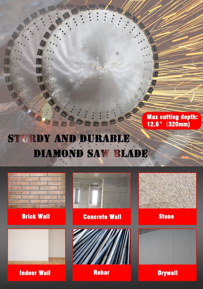 新建网页 3 新建网页 6 新建网页 1 Electric Concrete Saw Wall Cutter w/ 2 pcs Guide Rail 12.6'' Cutting Deepth 220V The wall cutter is used to cut or slit reinforced concrete,brick walls and stone materials.The machine adopts high power motor, strong power, high precision cutting, fast speed. 1.Digital display, real-time monitoring of the host operation data, adjustable speed, remote operation, safe and durable. 2.Thickened steel clamping plate, high strength, wear-resistant and not easy to deformation. 3.Folding rotating hand wheel, personality design, easy to operate, all plastic shell, high insulation strength. 4.Aviation grade aluminum profile refined, high density, wear-resistant, not easy to deformation or broken teeth, precision run-in, teeth uniform, not stuck teeth. 5.Provide water when cutting the next door to prevent excessive temperature damage to the saw blade. 6.Fast connection between controller and host, safe and convenient. 7.Thickened and widened design, more strong wear-resistant, long-term use more stable. Rated Voltage 220V Input Power 5580W Blade Diameter 31.5″(80cm) Max Cutting Depth 12.6″(32cm) No-load Speed 350r/m Z Precautions for use 1. Installation and fixation of the machine. After installing the track, saw blade, and cover of the main machine, grasp the top of the machine with your hand and shake the machine vigorously from side to side. If the machine shakes, it is necessary to adjust the expansion screw on the rail and tighten it with a wrench. Cutting can only be carried out when the machine is not swayed laterally or longitudinally. 2.The motor inside should pay attention to waterproof.If the motor inside water, will cause electric shock or motor burn. 3. Cutting must be cooled in the water inlet valve. Because the overheated saw blade will shorten its life, so in the cutting process, please pay attention to be sure to supply water in the inlet valve, in addition, please pay attention to the use of recycled waste water, otherwise it will affect the flow of water, resulting in damage to water seals and other parts. 4. Use a diamond saw blade. This cutting machine should use diamond saw blades, and other cutting saw blades cannot be used instead of diamond saw blades. 5.Allow the saw blade to fully rotate before starting cutting. Turn on the switch and wait until the saw blade has fully rotated before starting normal cutting. 6. Do not touch the saw blade in rotation. Do not touch the saw blade when the Angle is still rotating. This will cause serious injury and is very dangerous. 7.When operating at heights. If the machine is operated at a high altitude, please pay attention to selecting a stable and secure location for installation. 8.When the cutting machine is cutting laterally. Because the machine must use cooling water during operation, it is very dangerous for the main machine motor to be above during horizontal cutting, and vice versa. When the saw blade is above, water will run into the motor, which is very dangerous. 9. When an abnormal phenomenon is found. In the process of cutting, if the saw blade stops or you hear an abnormal sound, please turn off the switch immediately. 10. Please clean the machine after use. In order to maintain the service life of the machine, please keep the fuselage clean at any time after use. Note: The two types of handles for the controller are shipped randomly. Item included Concrete Wall Cutter--023533 Shipping & Handling Default Shipping Cost or Free Shipping Information: Default shipping cost or free shipping service is only for the lower 48 United States by UPS Ground or USPS. Other areas or needs other shipping ways, please contact us. Buyers from Guam, Puerto Rico, Virgin Islands, American Samoa, Alaska, Hawaii, PO Boxes, APO/FPO addresses or other countries/areas, there WILL be extra shipping costs, please contact us for more detailed information. Please make sure your address is valid for both UPS and USPS services. Any costs incurred because of incorrect or undeliverable address should be undertaken by buyer. Handling Time: Shipping is usually made in 1-3 business days after payments cleared. Orders are processed from Monday-Friday; Not on the weekends & public holidays. Sales tax / Customs duties Any sales taxes or Customs duties are not included. If came out, they must be undertaken by the buyer. Damage In Shipping Email or call us First! We will work with you to get the case resolved in the fastest method. Return&Refund If you are not 100% happy with your purchase, please contact Us. Please don't directly opened a request or case without informing us, or else, we will do some discounts on the warranty and other sales-services later on. Hope for your understanding. Returns & Exchanges All returns must be made within 30 days of delivery date. Items must be in new, unused condition, with all original materials included with the shipment. A partial refund may be applied for opened or damaged items, depending on the condition. Items returned under the buyer’s remorse: The return shipping fee must be covered by the buyer; The original shipping cost will also be deducted from the refund. 15% restocking fee of the items purchase price will be charged. Returns that are the result of our seller's error: Buyer will receive a full refund of the item as well as shipping charges All returns require a RA (Return Authorization) number that will be given by our seller. Please contact with us at first for more details. Defective & Damaged Products If product was received damaged or not as described, please send us some pictures or videos, so we could well understand your problem, then solve them for you ASAP. Besides, it's much helpful for us to claim with UPS, remind our related department to pay much more attention to packaging later on. Hope for your understanding. Replacement or refund of defective or damaged products can only be returned in exchange for the exact same product, or else, the purchase pr