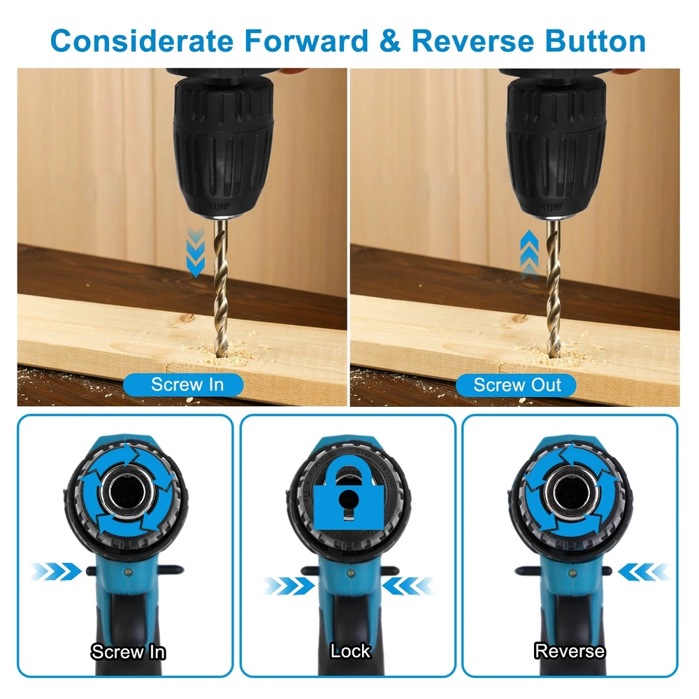 GOOD QUALITY Featured Item Product Detail Image Gallery Product Description Overview: Our electric cordless drill set includes accessories such as a flexible shaft, extension bar, ad holder, drill bits, sockets, screwdriver bits, batteries and charging adapter, all organized in a sturdy storage case. Equipped with 2 variable speeds and 265In-lbs of maximum torque, our cordless drill a must-have high-performance tool for drilling wood, metal, plastics, bricks and so on. 25+3 adjustable torque settings allow you to customize the torque and speed for various applications Powered by 2 included 28V 1200mah rechargeable batteries, this cordless drill driver offers up to 60mins working time per battery. Moreover, the LED working light on the soft-grip handle ensures your safety during dark conditions. This electric cordless power drill set is a must-have tool for home craft projects and handmade creations. Features: High-Performance Drill With 2 Variable Speeds: This high-performance power drill driver comes with 2 variable speeds(220-1500rpm) and 265In-lbs of maximum torque,providing precise control,efficient working and low noise for drilling wood,metal,plastics,and all screw driving tasks at home. A must-have and labor-saving replacement for who loves making craft projects and handmade creations! 25+3 Position Clutch & 265In-lbs Torque: 25+3 adjustable torque settings allow you to customize the torque and speed according to various applications. Additionally,this feature helps to reduces the risk of over-driving screws,thereby ensuring efficient and damage-free work every time and preventing damage to the piece or the drill,like sinking too deep,stripping out the head,or even breaking the screw shaft. 2Pcs 28V Long-Lasting Batteries: Powered by 2pcs included 28V 1200mah rechargeable battery,this cordless drill driver offers a convenient mobile usage experience,eliminating the hassle of cords and restrictions. Each battery offers up to 60mins working time,making sure you can finish the job smoothly while included charging adapter achieves conveniently recharge. Note:Please take off the battery while charging. Ergonomic Design & Comfortable Grip: Designed with 1Pcs LED beads on the soft-grip handle,it will automatically light up your target screw when you activate the trigger,ensuring your safety in dark conditions. Moreover,the change switch of rotate direction on the ergonomic handle meets both tightening and unscrewing demands,the right bulge is counterclockwise and the left bulge is clockwise. 24Pcs Drill Bits With Storage Case: Our electric cordless drill set includes rich accessories:1x flexible shaft,1x extension bar,1x ad holder,6x drill bits,9x sockets,6x screwdriver bits,2x batteries and 1x charging adapter. All the accessories are safely and securely organized in the sturdy storage case,preventing any unnecessary damage or lost. Specifications: Brand: iMounTEK Product Type: Electric Cordless Drill Set Material: ABS Color: Blue Adapter Voltage: 100-240V 50/60Hz Power Supply: Included 28V 1200mAh Rechargeable Battery *2 Per Battery Charged Time: 2-3H Per Battery Runtime: 30-60Mins (According to speed) Speed Level: 2Levels(220-1500RPM) Adjustable Clutch: 25+3 Torque Settings Fit For Chuck: 0.8-10mm; 3/8"—24UNF Item Size: 21x22x6cm/8.26x8.66x2.36in Item Weight: 810g/1.91lbs Package Size: 31*27*9cm/12.2*10.63*3.54in Package Weight: 2321g/5.12 lbs Package Contents: 1x Cordless Drill 1x Flexible Shaft 1x Extension Bar 1x AD Holder 6x Drill Bits 9x Sockets(4/4.5/5/6/7/8/9/10/12MM) 6x Screwdriver Bits (CR-VPH1; CR-VPH2; CR-V3; CR-V4; CR-V6; CR-V7) 2x Batteries 1x Charging Adapter 1x Storage Case 1x User Manual Terms & Conditions Thank you for your business !