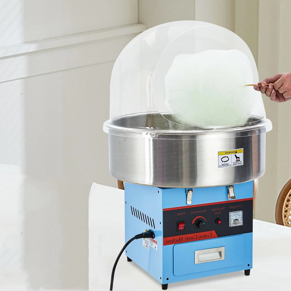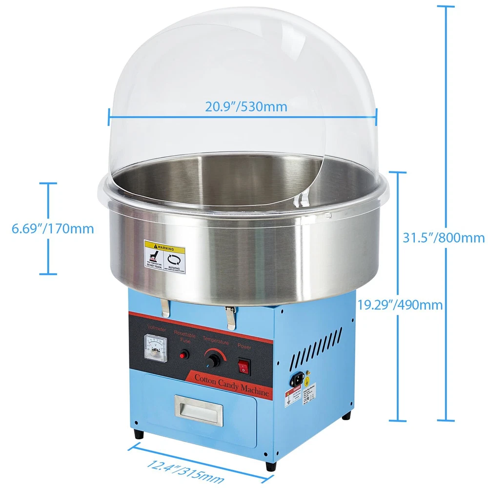 Commercial Cotton Candy Machine 1000W for High Output:Meet your commercial cotton candy production needs with our powerful 1000W commercial cotton candy machine. Designed for high output demands, this machine features a larger candy bowl that ensures rapid cotton candy cone production. Capable of producing 6 cotton candy cones per minute, it is perfect for satisfying large crowds at carnivals, parties, and events. With the ability to operate continuously for 1 hour without blockages or shutdowns Precise Temperature Control for Perfect Cotton Candy:Experience precise control over the cotton candy-making process with our electric candy floss maker. Unlike standard machines, our model boasts a voltage meter and temperature control knob, allowing you to adjust the temperature from 149℉ to 473℉ effortlessly. This feature is especially handy when experimenting with different flavored sugars, ensuring that you achieve the ideal consistency and taste with every batch of cotton candy. Effortless Operation and Convenient Features:Enjoy a hassle-free cotton candy-making experience with our user-friendly machine. Simply turn on the power, adjust the temperature as desired, and warm up the machine for 5-6 minutes. Once it's ready, pour sugar into the spinning head, and use the included sticks to collect freshly spun cotton candies. Versatile Candy Options for Creative Creations:Unleash your creativity by using a variety of candies with our cotton candy machine. Whether you prefer traditional flossing sugars, milk sugars, fruit cubes, or hard candies, this machine accommodates various types, allowing you to experiment with different flavors and textures. Create delectable cotton candies that cater to different tastes and preferences, making it a hit at any gathering or event. Safe and Reliable Performance :Rest assured of safe and reliable performance with our certified cotton candy machine. Additionally, the machine features a clear plastic cover that allows onlookers to observe the cotton candy-making process while keeping them safe from any potential hazards. Whether you're hosting a party, or event, this commercial cotton candy machine is your go-to appliance for creating sweet, fluffy treats that everyone will love.