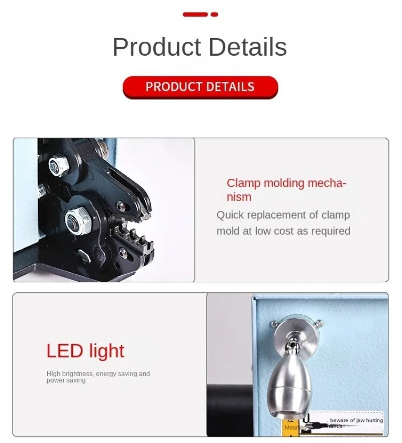 Pure Electric Silent Cold-Press Terminal Crimping Machine Tube-Type Terminal Clamp Electrician's Specialized Wire Crimping Pliers Wire Crimping Machine Model : YQ-02A Input Voltage: AC 220V, 50Hz Motor Power: 60W Motor Speed: 50 rpm Crimping Speed: Single crimp: 1 sec/cycle, Continuous crimping: 2 sec/cycle Mold Socket Thickness: 4mm Overall Weight: 12 kg Dimensions: W 236mm × H 218mm × L 290mm