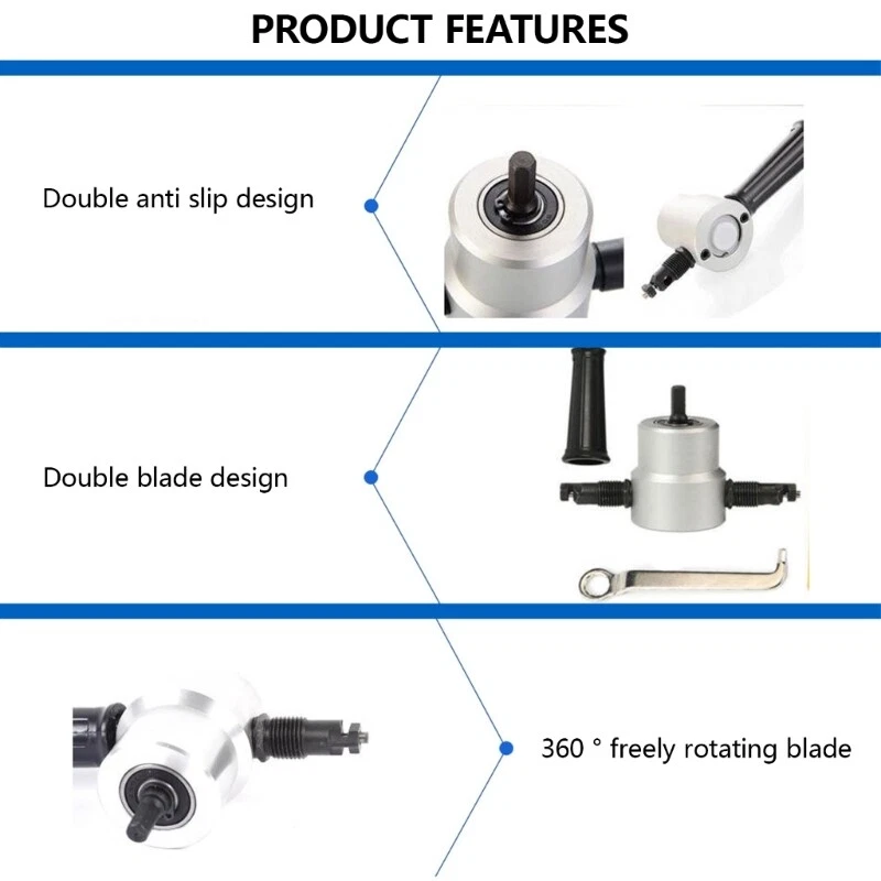 Features: Regularly add oil to the cutting edges of cutter, especially when cutting aluminum plates. Turn on the drill first, then cut, and when finished, first and then turn offs the drill. When cutting, the cutting edges of cutter holder must be keep perpendicular to the workpiece being cut to prevent cutter from breakings due to hard deformation. cutter holder replacement: Open the protective cover, remove the antiloosening nut, loosen the set screw, use pliers to pull out cutter holder, reinstall cutter holder, and tighten the screw. cutter holder replacement: Rotate the clamping caps counterclockwise and replace it with a new cutter holder. Specifications: Component:Steel,ABS Package Includes: 1Set Sheet Metal Nibper note: Please allow 1mm errors due to manual measurement. Due to the differences between different monitors, the picture may not reflect the actual color.