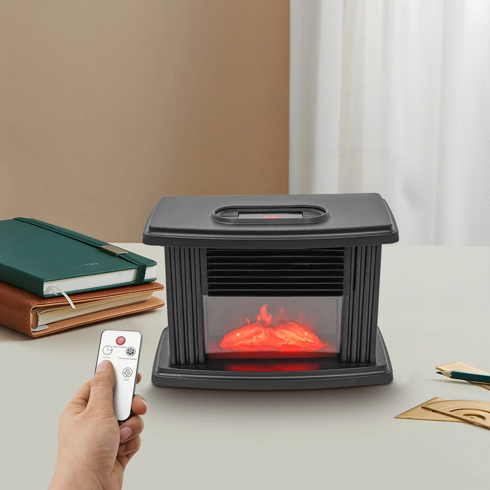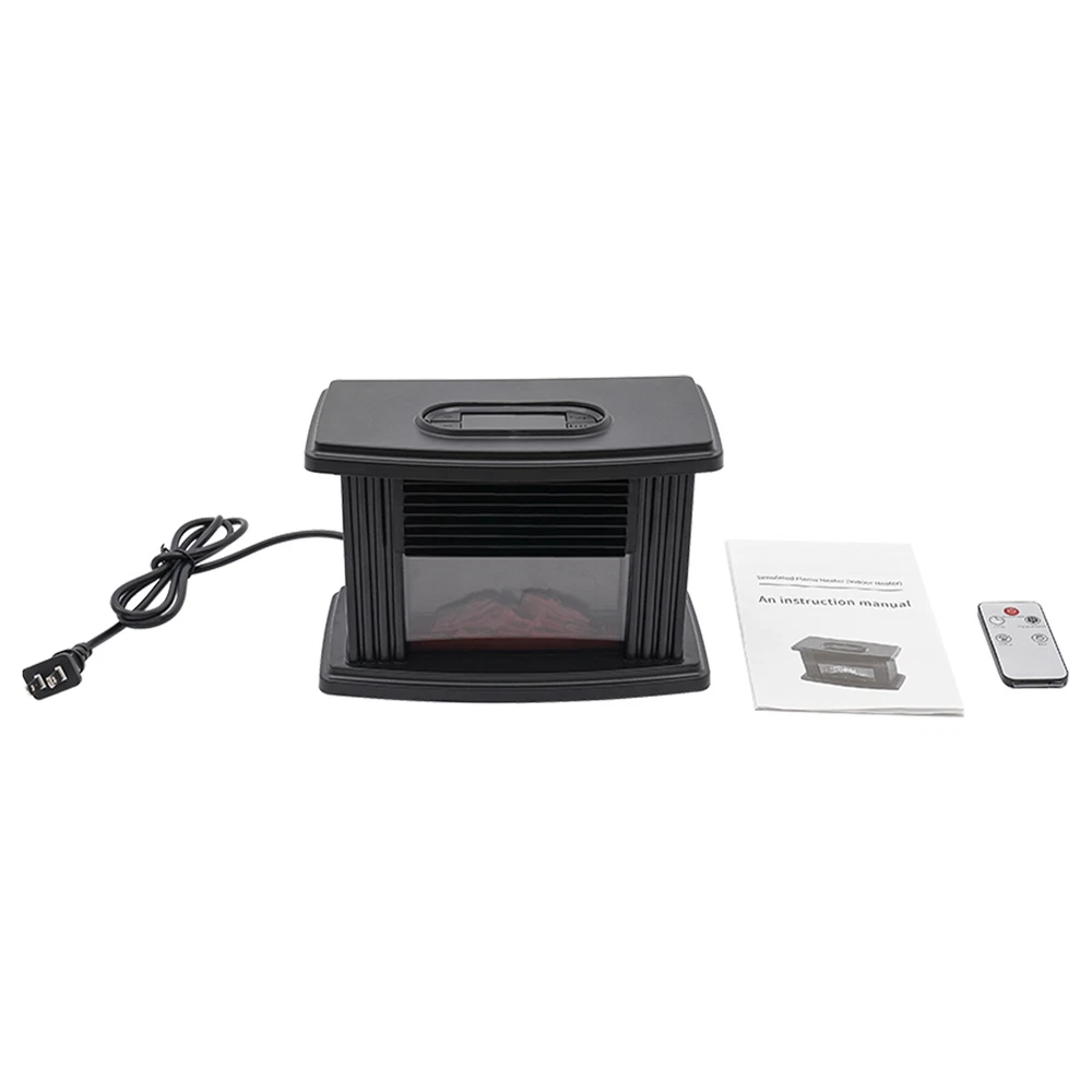 Specifications Material: ABS Color: Black Style: Country Rustic Installation Type: Freestanding Voltage: 110 ~ 220 V Power: 1000W Applicable Area: Less Than 10m²/107.63ft² Heating Mode: Aluminum Heat Dissipation Type Speed Regulating Gear: Third Gear Adjust Temperature: 15-32°C/59-89.6°F TimingRange: 1-8H Product Size: 22.3*12.5 *14.5cm/8.77*4.92*5.7in Packing Size: 22*12*14cm/8.66*4.72*5.51in Weight: 1kg/2.2lbs Package Included 1* Electric Fireplace Notes Please allow the slight color difference caused by the shooting light and 1-3cm error due to manual measurement, and make sure you do not mind before you order. Application It is suitable for living rooms, bedrooms, basements, RVs, garages, apartments, offices, hot yoga studios, etc. It is suitable for spaces up to 10m²/107.63ft². High-quality Material: The housing is made of high-quality ABS material, which is strong, wear-resistant, anti-aging, and impact-resistant, ensuring a long service life. Meanwhile, ABS housing has a good heat insulation effect, so even after several hours of use, the housing can still stay cool to prevent burns. 3D Carbon Fire Technology: It adopts 3D simulated carbon fire heating technology, replicating the effect of burning charcoal fire, with comfortable warm air diffusion, giving you the same comfort as a real fireplace, as well as enhancing the natural luxury of home decoration. User-friendly Design: This heater solves the problem of traditional fireplaces requiring installation and also avoids the hassle of messy ashes from wood fires. It is more energy efficient and convenient than traditional wood, oil or gas fireplaces, allowing you to enjoy hot air by simply connecting to the power source and flipping the switch. Compact and Lightweight: It is compact and lightweight(2.2lbs), so you can easily move it to any room to keep it warm. Its compact size doesn't take up much space and can easily fit in a small corner. Safe to Use: Since it is free from the mess and smoke of a real fire and does not emit any harmful by-products, it is safe for use around the elderly, children, and pets. Also, it is designed with an overheat protection function, which will automatically shut down when the temperature is too high to avoid accidents. The tight air inlet and outlet can avoid finger insertion.