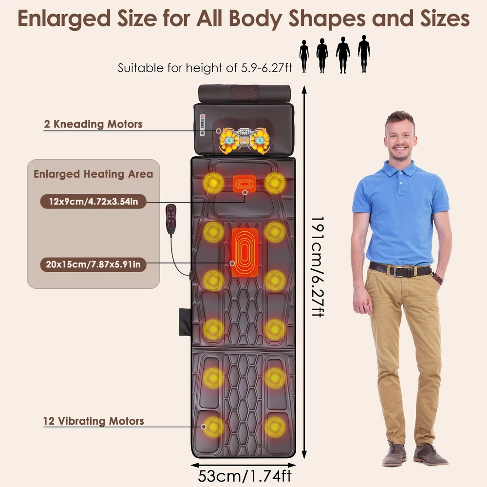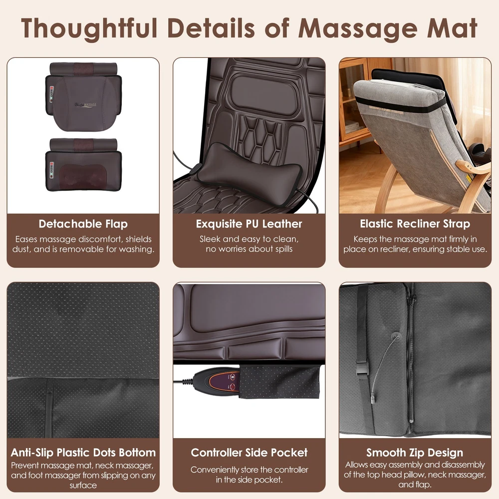 Full Body Massage Mat Electric Heating Vibration Shiatsu Neck Back Foot Massage