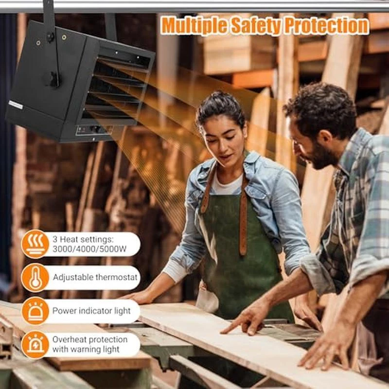 You may also like Portable Radiant Propane Heater 45000 BTU Adjustable Tilt Safety Tank Top 108.39 USD 114.1 USD Free shipping 5% off Personal Space Heater Small Space Mini Desktop 2 Heat Settings Fan-Only Mode US 45.0 USD 47.37 USD Free shipping 5% off Electric Fireplace Heater w/ Remote Freestanding Infrared Fireplace Heater Stove 111.14 USD 116.99 USD Free shipping 5% off Space Heater Portable Electric Heater w/ Remote Thermostat Oscillation Bedroom 61.74 USD 64.99 USD Free shipping 5% off About this item Efficient Ceiling Mount: The electric garage heater is designed for ceiling mounting and hard-wired installation, this fan-forced heater is perfect for spaces like warehouses, garages, and storage areas where floor space is limited. By utilizing the overhead space, you can maximize the utilization of your area while still enjoying powerful heating capabilities. Embrace the space-saving benefits of this ceiling-mounted heater and keep your valuable floor space free from obstructions, Which more safe than the plug design. Adjustable Angle & 3 Heat Settings: This garage heater has adjustable louvers and variable mounting angle to direct the air output. Its maximum BTUs of 17,065 is powerful enough to heat a large area up to 500 square feet. Power ranges from low to high, 3,000 watts, 4,000 watts, and 5,000 watts to meet your different needs in cold days. It also features automatic over-heat protection and a caution indicator light for your safe use. Thermostat & Overheat Protection: Our garage heater is equipped with a built-in thermostat. You can adjust the thermostat to suit your needs and preferences. And a built-in sensor switches the device off automatically if it overheats. And preferences Control Adjusts Temps: 45-95°F/7-35°C. User-Friendly Temperature Control: The ceiling mount heater features a knob thermostat that provides convenient and precise control over the temperature settings. With these intuitive controls, you can easily adjust the heat output to achieve the perfect level of warmth for your space. The quick on/off functionality ensures effortless operation of the heater, allowing you to enjoy immediate comfort with just a simple twist of the knobs. Safety Hard-wired Installation: Designed with your safety in mind, this ceiling mount heater is equipped with intelligent safety features for worry-free operation. The built-in sensor monitors the temperature and automatically shuts off the device if it detects overheating, providing reliable protection against potential hazards. The power indicator light conveniently illuminates when the unit is in use, giving you clear visual confirmation of its operational status. Brand:TROPOW Special Feature:Overheat Protection, Electronic Thermostat, Fast Heating Color:Black Form Factor:Cabinet Indoor/Outdoor Usage:Indoor Power Source:Hard-Wired Heating Method:Forced Air Item Weight:22. 35 Pounds Heat Output:17065 British Thermal Units Developmental Walker Toddler Foldable Baby Learn W/ Music Adjustable Height HOT 58.87 USD 61.97 USD Free shipping 5% off 10 ft Patio Umbrella Heavy duty w/ Auto Tilt Market Table Umbrella Outdoor Shade 74.41 USD 78.33 USD Free shipping 5% off 10 Pack Beehive Frames Wax Foundations for Deep Brood Bee Hives Beeswax Coated 67.92 USD 71.49 USD Free shipping 5% off Gel Fuel Cans 24-Pack Gelled Isopropyl Alcohol for Indoor or Outdoor Fireplaces 133.0 USD 220.94 USD Free shipping 40% off Lightweight Black Poster Frame 24x36 Art Display Vertical Horizontal Use 18.01 USD 18.96 USD Free shipping 5% off Home Music System Bluetooth CD Player Compact Stereos AM/FM Radio 2Channel Clock 71.52 USD 75.28 USD Free shipping 5% off Fatwood Fire Starter Sticks Natural Pine Easy Use Campfires Fireplaces 35lbs 80.27 USD 84.49 USD Free shipping 5% off 13x49 Full-Length Rectangular Gold Mirror for Bathroom Closet Entryway Dorm US 12.63 USD 13.3 USD Free shipping 5% off 4-Shelf Standard Duty Plastic Home Garage Storage Shelves Heavy Duty Shelving 44.15 USD 46.47 USD Free shipping 5% off Hard Floor Steam Mop Cleaner Professional Deep Cleaning Washable Hardwood Home 116.33 USD 122.45 USD Free shipping 5% off Gecko Gauge Siding Mounting Kit For 5/16-In Fiber Cement Siding Lap Siding Gauge 100.03 USD 105.29 USD Free shipping 5% off Baby Bassinets Bedside Sleeper Crib Adjustable Canopy w/ Storage Lights & Music 101.6 USD 106.95 USD Free shipping 5% off