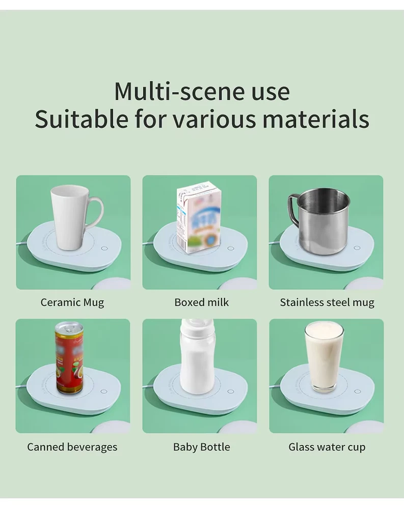 Title Options (80 characters max): "Electric Heated Coffee Mug Warmer Pad with USB - Smart Thermostatic Coaster" "55°C USB Heating Coaster for Coffee, Tea, Milk - Compact Smart Warmer Green" "1PCS Smart Thermostatic Coffee Warmer Pad USB Powered Heating Coaster" "Portable USB Coffee Mug Warmer Mat - Smart Thermostatic Green Coaster" "Eco-Friendly Electric USB Coffee Warmer Coaster for Home & Office Use" Description: Keep your beverages warm and ready to enjoy with the Electric Heated Coffee Mug Warmer Pad . This smart thermostatic heating coaster is perfect for home, office, or on-the-go use, ensuring your drinks stay at the ideal temperature. Key Features: Electric Heated Design: Maintains a consistent beverage temperature for an extended period. Smart Thermostatic Function: Automatically regulates heat, keeping your drink warm at 55°C. Eco-Friendly Material: Made with high-quality plastic and tempered glass, safe for daily use. USB-Powered Convenience: Easily power the heating pad via USB, ideal for schools, dormitories, and offices. Versatile Compatibility: Suitable for stainless steel cups, ceramic mugs, baby bottles, and more. Compact and Portable: Lightweight and easy to carry, perfect for busy lifestyles. Durable Construction: Built to last with robust materials for everyday use. Specifications: Product Name: 55°C Heating Coaster Power Supply: USB power Material: Plastic + Tempered Glass Size: 16 x 12 cm Color: Green Package Includes: 1 x USB-Powered Heating Coaster (Cup not included)