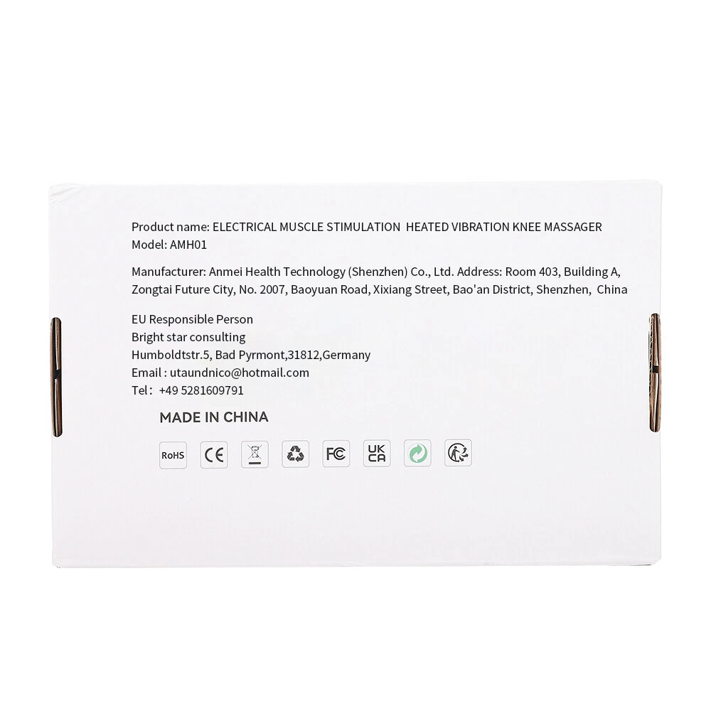 Welcome to my store! Electric Heated Knee Pad Brace Arthritis Pain Relief Warm Therapy Leg Wrap Belt Description Features: Heating and vibration knee pads,your home joint care specialist to improve your joint problems,3 levels of massage intensity to hit the sore spots directly. Large area thermal energy circulation, reshaping knee power, providing warm care throughout the day, with a maximum temperature of up to 70℃/158℉. Moxa hot compress, natural moxa processing combined with Chinese herbs made of moxa packs. Double vibration massage for deep relaxation and also a body therapy device,with 90cm extension strap for shoulder/elbow/knee/leg care. Relax your legs all the time, lightweight and portable, wireless use, 5000mAh large capacity battery, long endurance, continuous knee protection. Specifications: Product model : AMH01 Color : Black Rated power : 10W Rated voltage : DC5V Battery capacity : 5000mAh Tested usage time of knee pads : Battery life : Massage (highest gear) 10H Heating (highest gear) : 2.5-3H Heating (60 degrees) : 4H EMS+heating (highest gear) : 1.5H Net weight of product : 299g Product gross weight : 471g Product size : cm Packaging size : 20.5 * 13 * 7.6cm Packing list: Host * 1 Knee pads * 1 Dragging two electrode wires (117cm) * 1 Pair of * electrode patches * 1 Extension strap (92cm) * 1 USB data cable * 1 English manual * 1 English color box * 1 Delivery details 1.Items will be shipped within 1-2 business day on payment received (Sat. & Sun. excluded). 2.Items are shipped from China using Air Mail,reach most of the countries within 10 to 30 bussiness Days.Delivery time depends on destination and other factors, it may takes up to 30 bussiness days. 3.We ship to the buyer’s Ebay address,your Ebay address must match your Shipping address. Payment 1.We accept PayPal only.All major credit cards are accepted through secure payment processor PayPal. 2.Import duties,taxes and charges are not include in the item price or shipping charges.These charges are the buyer's responsibility. Terms of sales 12 months Warranty. Buy with confidence! If the item is visably damaged or doesn't work properly when you receive your item, please return it within 14 days for a replacement or money back.Please contact me before you return it. Please keep all the package material,return items must be in good condition. Contact us 1. If you have any problem,please contact us,we will reply you in 24 hours. 2. If you are satisfied with our service, please leave us a 5 star positive feedback. Your recognition will make us more confident to develop business and serve you better. 3.If there is any dissatisfaction, please email us before leaving any 1 or 2 ratings, negative feedback or open any ebay or paypal dispute. We will try our best to resolve the issues. Please give us the opportunity to resolve any problem.