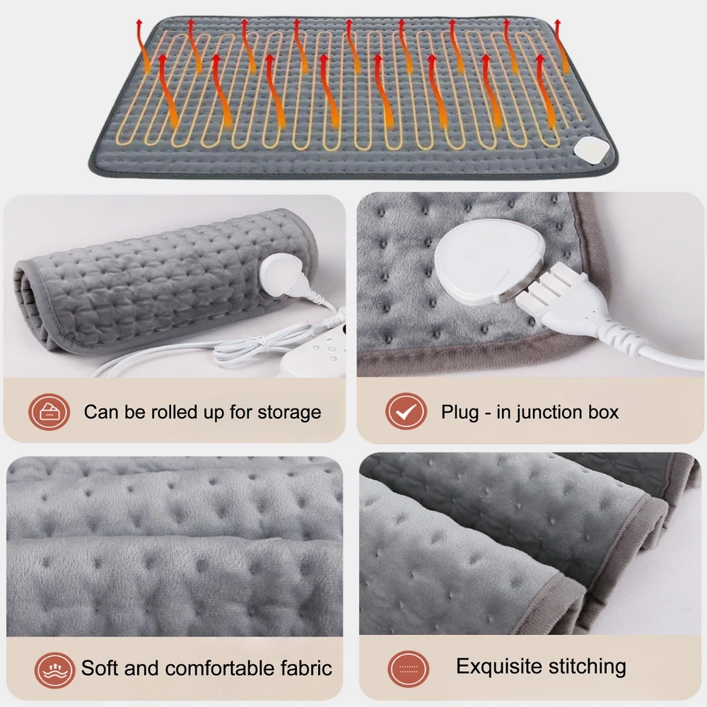 Features: 1.This multifunctional heating pad is made of high-quality super-soft micro-plush, which is soft, skin-friendly and comfortable, with good warmth retention and long service life. 2.Our heating pad is suitable for office and home, to help you dispel the cold and bring you comfortable warmth in cold winter. 3.6-gear adjustable temperature and 4-gear timing function (0.5h/1h/1.5h/2h), optional to meet your actual needs. 4.As an essential warm artifact in winter, this heating pad can be used to warm different parts of the body, such as hands, back, legs, waist, abdomen, etc. Specifications: Material: super soft plush Color: silver gray Operating voltage: 100-130V Operating frequency: 60Hz Timing: 0.5h/1h/1.5h/2h Net weight: 0.4KG Product dimensions: size:12 x 24inch Packing: 29.5*9*9CM Packing List: 1* Heating pad 1* English User Manual