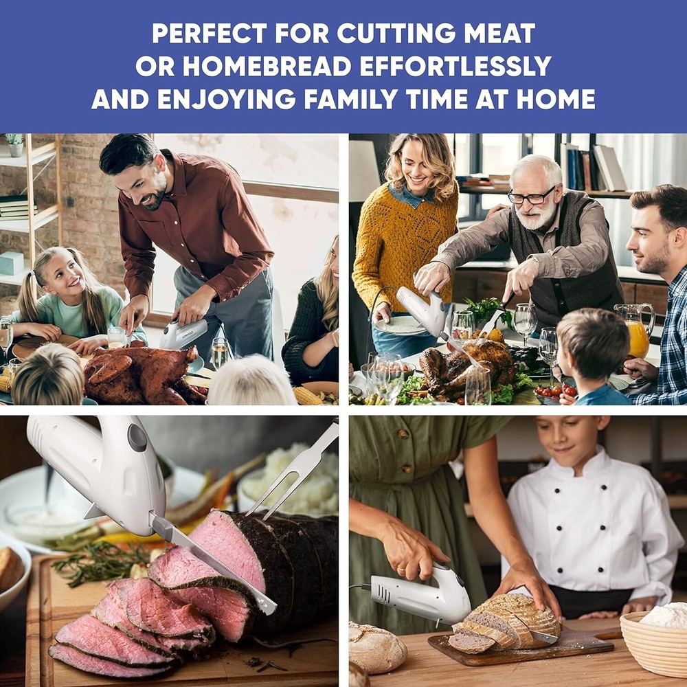 Electric Knife for Carving Meat, Turkey, Bread & More. Serving Fork and Carving Blades Included πͺ FAST & EASY SLICING: Electric Knife allows you to make perfectly even slices fast and without having to apply much pressure or sawing motion! Improved inches( m) extra-long cable allows you to slice your products in a convenient place! The lightweight design of the electric knife makes it easy to hold with one hand. Enjoy your perfect slices regardless of your age! π HIGH QUALITY & ERGONOMIC DESIGN: Electric Carving Knife features an ergonomic handle for comfortable product handling and easy meat, bread, fish, cheese, large vegetables & fruits carving. The two precision stainless steel blades included with the Electric Knife package are strong, durable and designed to last. The removable blades are dishwasher-safe for fast and easy cleanup! π LOW NOISE & VIBRATION: Clever product design provides you with all the power needed to easily and quickly carve through the meats, bread and more without excessive noise and vibration! π‘ DUAL SAFETY LOCK: A specially designed safety lock feature keeps the blade locked in place to avoid accidental activation and to ensure your safety. Electric Knife is ETL certified and fully safe to use! β BASED CUSTOMER SUPPORT: Each Product includes a 1 Cover provided by in addition to the s satisfaction or timeframe.