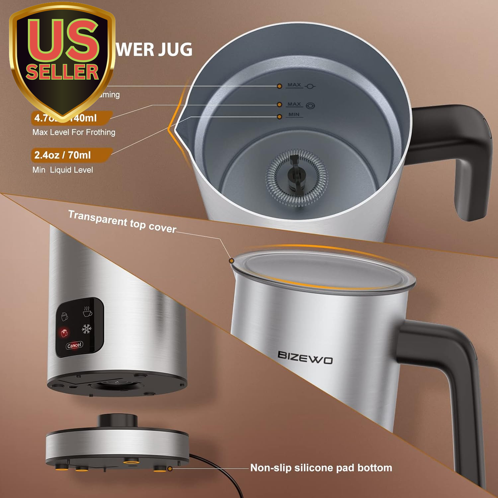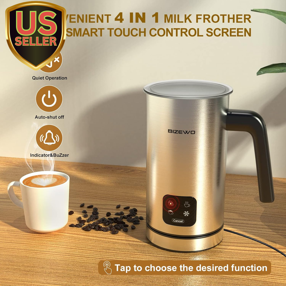 Store New Arrivals Add to Favorite View Feedback Contact Milk Frother Electric, Warm and Cold Milk Steamer, 4 in 1 Automatic Milk Warmer Stainless Steel with Touch Screen for Coffee, Latte, Macchiato, Cappuccino, Hot Chocolate Item Specifics Description Shipping Returns Product Description 4-in-1 Function Milk Frother: The 4-in-1 milk frother can be used as a milk frother, milk frother, hot chocolate maker or milk tea maker, heat. Having a coffee frother is equivalent to having four types of machines. Come with 2 whisks, you don't need to change the whisk frequently when you make different drinks Barista's Choice: The extraction flower spout can pour coffee foam directly into cups, it's a great way for beginners to make cute latte art. According to the preferences of hot and cold milk foam touch button, to complete the exquisite taste of excellent creamy foam in 2 minutes, which produces 95% dense foam of longer duration, hot milk can be heated up to 140 ℉-149℉ It is recommended to use whole milk Fast and Convenient to Operate: The coffee frother is a good choice for people who want to save time and heating steps. As a food-grade coating, the stainless steel mug is easy to clean and will not be contaminated with odors, easy to clean Share Coffee with Others: For people who often need to prepare multiple drinks at one time and pay attention to the delicacy of milk foam, this milk foam frother can froth up to 4.7 ounces of milk at a time or heat milk or chocolate up to 10.1 oz. More suitable for office sharing and family sharing Don't go back to handheld frother: In order to produce more stable milk foam, handheld milk frother often needs experience and touch, but BIZEWO Automatic Milk Frother can help people who have no barista experience Product Description About BIZEWO BIZEWO is pioneering the electronic product with a professional team who actively innovative electronic products. We are specializing in home smart and outdoor products for Americans. We strive to serve up the perfect balance of home life and outdoor sport and provide the best quality to our customers. Our customer services support 24hours online to solve your problems. BIZEWO 4 IN 1 Milk Frother and Steamer The electnic milk frothing machine create rich and creamy froth in 1-2 minutes, this auto-off milk steamer with touch screen panel and LED indicator, which reminds the function to finish your warm milk or delicious froth in time. The BIZEWO ARAMA-F1 comes with a pull flower jug that helps people who have zero experience as a barista. It will help provide you and your family with a cafe experience in your home. Rated Voltage: 120V Rated Power: 300W Min Liquid Level: 2.42oz Max Level for Frothing: 4.7oz Max Level for Heating: 10.1oz TIPS Milk Frothing for Beginners with BIZEWO 4-IN-1 milk frother Why can not froth my milk? Firstly, we suggest using the fresh whole milk to froth. This milk frother makes the silky smooth airy foam bubbles and wet-paint texture that’s characteristic of a latte. Even when using whole milk, be careful that the heated milk will not froth again, make sure the milk is cold before frothing. Finally, Please make sure the amount of milk should not lower than the MIN line! Why did my machine stop working? Firstly, check the power cable is connected. Then, Place the mug directly under running water using a non-abrasive cloth making sure that the underside of the milk frother and LED panel are dry. Why do I think my milk isn't hot enough? This milk warmer can heat milk and increases its apparent sweetness. proper milk temperature is 55-66 Celsius as you go hotter you will lose the sweetness flavor, the proper temperature will not scald you Quickly Operation The electnic milk frothing machine create rich and creamy froth in 1-2 minutes. Make sure the Milk Frother is filled to at least the MIN mark and not exceed the MAX FROTH marking. Otherwise the milk will overflow Magnetic Whisks You don't worry about the magnetic whisks completely out of the unit. This milk foam machine has a little whisk that attaches to a pin in the bottom that is driven by it's motor Touch Screen Panel Touch screen panel comes with LED lights indicator easy to use that all only need to tap one of the four functional modes on the smart touch screen to get hot milk or milk froth as needed 360° Anti -Slip Base The base comes with anti-slip foot bottom. When you put the base on your kitchen or bar or table, anti- slip foots can prevent sinking and slip Auto Shut Off The BIZEWO milk frothers are great for beginners and coffee aficionados alike, with the buzzer sound the milk frother would automatically shut off once done Easy Cleaning You can take a soapy sponge and wipe the milk frother immediately after use. Then, take a wet cloth to wipe the upper part, it will be as clean as a new one About Us We offer great deals on high-quality products and fast shipping from the U.S. Our catalog includes electronics, home items, toys, apparel, and more. Shipping All orders ship fast from within the U.S., typically within 1–2 business days. We use trusted carriers to ensure quick delivery to your door. Returns Enjoy a 30-day return policy. If you're not satisfied, simply return the item in original condition for a full refund or exchange. Payment Payments are processed securely through eBay's trusted checkout system. Contact Us We're here to help! Contact us anytime through eBay messages with questions or concerns. Customer Satisfaction Your satisfaction is our priority. If there's an issue, message us and we'll make it right. Fast U.S. Shipping We proudly ship all items directly from the United States – fast, tracked, and reliable. © ti_560285. All rights reserved.