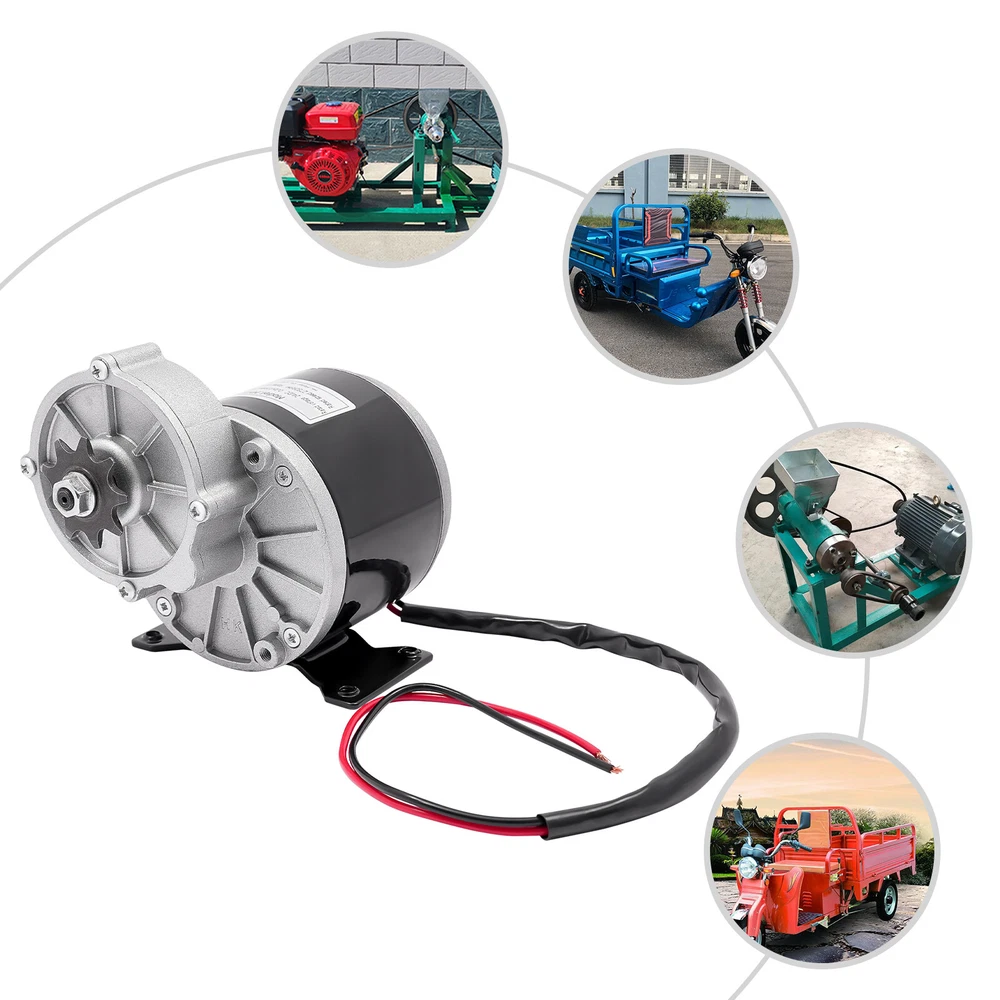 Build to Last: This product is mainly made of high-quality aluminum, which is durable and can be used safely for a long time. Excellent Performance: The 350W pure copper brushed motor has a high reduction ratio of 9.78:1 and high efficiency to provide greater speed reduction. Thoughtful Design: This product can be changed to rotate clockwise or counterclockwise by reversing the motor's power cord to increase flexibility and meet different needs. High Load Capacity: This product produces greater low-end torque and can support a heavy load of 220.46-330.69 pounds, providing a more powerful operation. Smooth Operation: The pure copper brushed motor with low noise and a sturdy base makes the product operate more smoothly and quietly. Electric Motor, Gear Reduction Electric Motor, Geared Reduction Motor 2750RPM Electric Motor, Gear Reduction Electric Motor, Geared Reduction Motor Description Our 24V gear reduction electric motor can help you achieve electrification of your electric bicycle. It adopts a sturdy aluminum shell and a 350W high-efficiency pure copper motor, which has advantages such as fast heat dissipation, long service life, and durability. It adopts gear transmission, reducing the speed of the high-speed motor, achieving smooth starting and low-speed riding of the electric bicycle, which can bring users a more convenient and comfortable riding experience. Key Features Build to Last: This product is mainly made of high-quality aluminum, which is durable and can be used safely for a long time. Excellent Performance: The 350W pure copper brushed motor has a high reduction ratio of 9.78:1 and high efficiency to provide greater speed reduction. Thoughtful Design: This product can be changed to rotate clockwise or counterclockwise by reversing the motor's power cord to increase flexibility and meet different needs. High Load Capacity: This product produces greater low-end torque and can support a heavy load of 220.46-330.69 pounds, providing a more powerful operation. Smooth Operation: The pure copper brushed motor with low noise and a sturdy base makes the product operate more smoothly and quietly. Compact and Lightweight: The compact and lightweight design makes it suitable for situations with limited space. Simple Installation: An integrated structure and pre-drilled holes allow you to complete the installation in a short time. Guaranteed Customer Service: Our friendly customer service team would be happy to solve your issues with our product. If you have any issues, feel free to contact us. Details Smooth Edges: The smooth and burr-free edges enhance the beauty of the product and better care for your skin when installing and cleaning it. Power Cable: It adds convenience when using and installing this motor. Application This product is suitable as a DIY engine kit for light and heavy electric tricycles, robots, electric scooters, electric bicycles, and mini-electric motorcycles. Specification Model: MY1016Z Material: Aluminum Color: Black + Silver Shape: Round Assembly Required: No Motor Type: Brushed Pure Copper Motor Installation Hole Specification: M6 Rated Current: 19A Voltage: 24V Power: 350W Rated Speed: 2750RPM Rated Torque: 1.24 N.m Efficiency: ≥ 78% Reduction Ratio: 9.78: 1 Load Capacity: 100-150kg/220.46-330.69lbs Product Body Length: 93mm/3.66in Axis Length: 18mm/0.71in Axis Thickness: 11mm/0.43in Distance from Axis to Ground: 82mm/3.23in Hole Spacing: 95*42mm/3.74*1.65inch Package Size: 30*20*20cm/11.81*7.87*7.87in Gross Weight: 2.96kg/6.53lbs Net Weight: 2.4kg/5.29lbs Package Included 1* Gear Reduction Electric Motor Notes Please note that if you need to adjust the speed, you need to use it with a controller (not included). Please note that this product does not contain a cooling fan, please do not use it in a small confined space. Please allow the slight color difference caused by the shooting lig ht and 1-3cm error due to manual measurement, and make sure you do not mind before ordering. Payment Delivery details Terms of sales About us Contact us Payment We accept ebay payment 。 Fees such as import duties, taxes are not included in the item price or shipping costs. These charges are the buyer's responsibility. Delivery details Shipping: 2-9 working days to: USA Terms of sales We maintain high standards of excellence and strive for hundred percent customer satisfaction. Feedback is very important to us. We hope that you contact us immediately before you give neutral or negative feedback, so that we can address your concerns. It is impossible to address issues if we do not know about them! About us Your satis faction is our ultimate goal. We work hard to earn your trust and future business. Our certified technicians have tested each item before shipping. The unit comes with 1 year limited warranty on all manufacturing defects. a) If you receive a defective item, you may return it or ask for a discount. Please contact us within 14 days after you receive the package. b) What you returned must be intact and in its original packaging as re? u. Customer is responsible for shipping costs of the returned item. c) We will cover the cost of shipping back t with the shipping rate indicated in the registration page. We will send you a new unit or refund the full payment you paid. Thank you. Contact us Business Hour Business Hour: Monday To Friday: 8:30 AM to 5:00 PM (Beijing China time) Due to time zones, our reply to your questions may not be immediately. But within above working time, we will reply your email within 24 hours. If it's non-workdays, please kindly be patient and wait till Monday. Please contact us with ebay message. Please feel free to contact us if you have any questions. Monday To Friday: 8:30 AM to 5:00 PM (Beijing China time) Due to time zones, our reply to your questions may not be immediately. But within above working time, we will reply your email within 24 hours. If it's non-workdays, please kindly be patient and wait till Monday. Please contact us wi