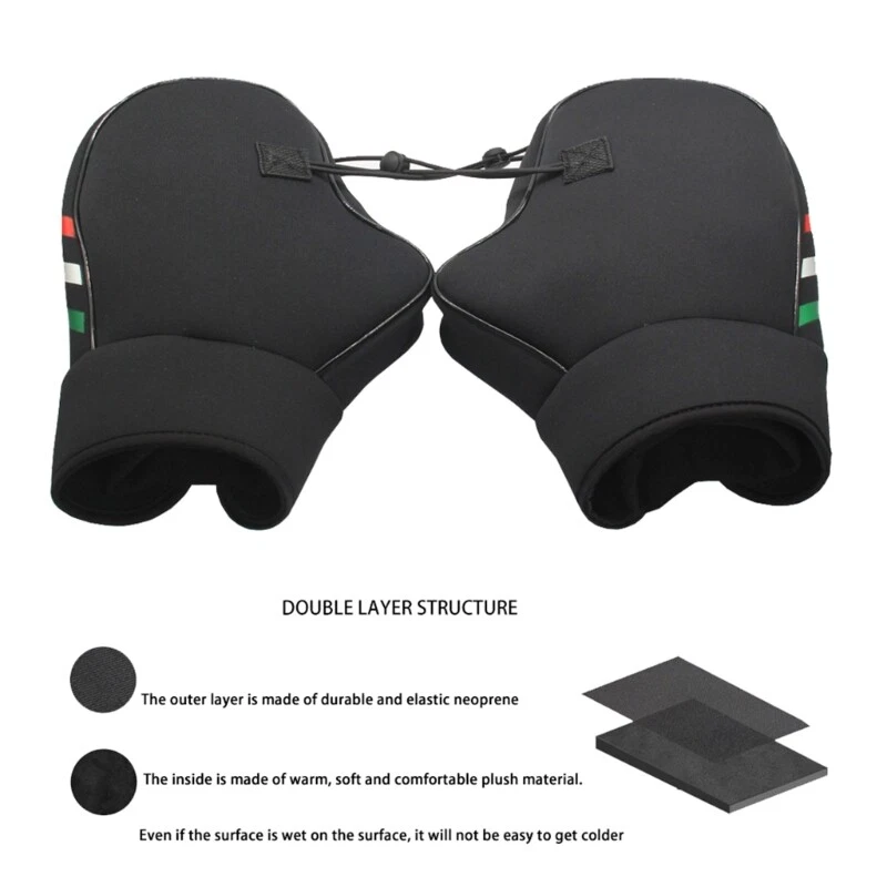 Features: Stay warm and shielded from the with these windproof and waterproof handlebar gloves for motorcycles and electric vehicles. Crafted with special materials, these gloves provide excellent insulation to keep your hands cozy in cold weather. The waterproof feature ensures that rainwater and mud won't penetrate, keeping your hands dry and comfortable. Designed for motorcycle riders, especially those who frequently ride in chilly environments, these gloves offer reliable hand protections and warmth. Perfect for winter rides, these gloves effectively shield your hands from low temperatures, wind and rain, allowing you to enjoy a more comfortable riding experience. Whether you're riding in cold or rainy weather, these gloves provide optimal warmth and waterproof performances, ensuring that your hands stay dry and comfortable throughout your journey. Specifications: Material:Diving Material+Inner Composite Wool Size:As Picture Shown Color:Black Package Includes: 2x Warm Handle Cover note: ①.Please allow 1-2cm errors due to manual measurement, make sure that you do not mind before you order. ②.Due to the difference between different monitors, the picture may not reflect the actual color of the item. Thanks for your understandings.