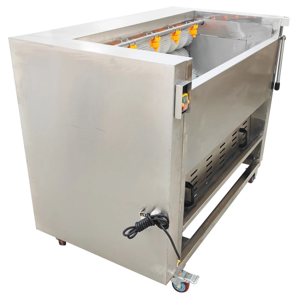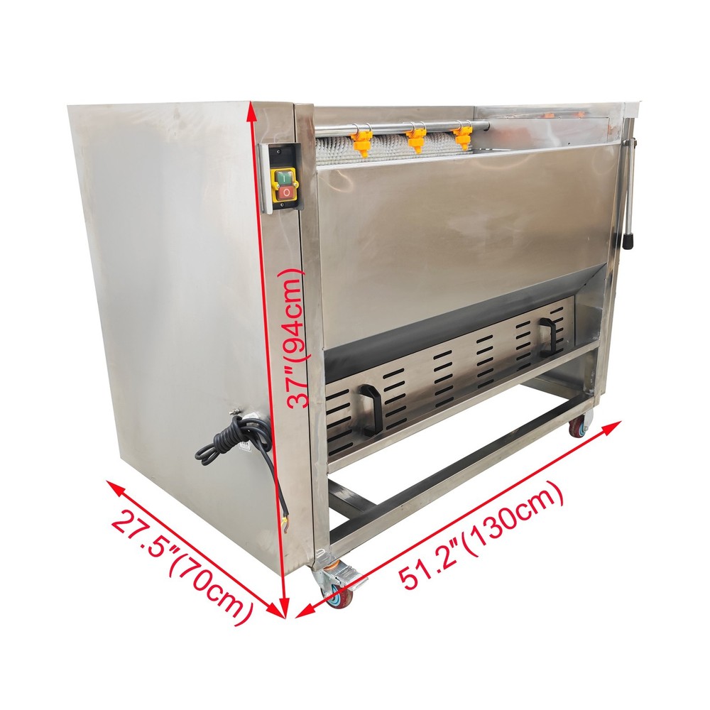 Electric Multifunctional Stainless Rolling Potato Peeling Machine 550Kg/h 1.5KW The electric brush roller cleaning machine is a professional processing facility for cleaning and peeling root and tuber vegetables, such as carrots, potatoes, sweet potatoes, apples, pears and taros. The machine is made of stainless steel and equipped with the 1.5KW motor, and adopts the brush cleaning and high-pressure spraying technology to solve the problems of high cost and low efficiency. It has the advantages of being easy to operate, low in energy consumption, high in yield and efficiency, resist to wear and corrosion and convenient to move, and is an ideal device for the vegetable processing industry. P arameters Voltage 110V Power 1.5KW Material Stainless steel Output 550kg/h Capacity 40-50kg Applicable vegetable Root and tuber vegetables, such as carrots, potatoes, sweet potatoes, taros, lotus roots and ginger Machine size 130x70x94cm (51.2x27.5x37 inches) Net weight 142kg (313LBS) Attention 1. There is no plug on the machine. Please let a professional electrician connect the power supply correctly. Keep reliable and stable grounding. 2. Do not touch the running parts during operation. Do not put the hands into the machine. 3. Do not overload the machine to avoid damage to the machine. 4. After use, clean the machine thoroughly for the next use. Features The structural design of multiple brush rollers is adopted in the cleaning chamber, mud and impurities on the raw materials to be cleaned can be effectively removed through the friction between the rotating brush rollers and the materials, the cleaning and peeling effect is well improved, and the practicability is higher. The high pressure spraying technology is utilized to wash the raw materials, the multiple spray nozzles are directly connected to the water supply pipe, the cleaning effect is better, the cleaning efficiency is obviously improved, the labor intensity is effectively reduced, and the time and cost are effectively saved. The control switch is of a compact structure, machine start and stop can be independently controlled, and the operation complexity is obviously reduced. The protective cover is designed for the control switch, effectively protecting the switch from water and achieving a good protection effect. The enlarged discharging outlet is matched with an outlet cover which can be controlled by the handle to open and close the discharging outlet, the cleaned materials can be smoothly discharged from the outlet after cleaning, and the discharging operation is easy and effortless. The high-performance motor has the power of 1.5KW and can provide stable driving force for cleaning and peeling operation, ensuring reliable operation of the cleaning machine. The motor is also protected by the protective cover, effectively preventing water and other things from entering. The universal wheels with brakes are firmly installed at the bottom of the machine, allowing the machine to freely move and stop in different working environments and remarkably improving the adaptability and practicability of the cleaning machine. Operation Method 1. Connect the machine to the water supply and connect the machine to the power supply. 2. Pour the appropriate raw materials to the cleaning chamber. 3. Turn on the power switch, the machine starts to clean and peel the raw materials. 4. After finishing the cleaning operation, turn off the power switch, push the cover handle to open the outlet cover, and discharged the cleaned materials. 5. Clean the machine completely for the next use. Application As an efficient cleaning device, the brush roller cleaning and peeling machine can effectively clean various root and tuber vegetables, such as carrots, potatoes, sweet potatoes, taros, lotus roots and ginger, and can be widely applied to farms, agricultural cooperatives, fruit and vegetable processing plants, central kitchens, supermarket distribution centers, and so on. Item included (033405) :1 * Electric Multifunctional Rolling Potato Peeling Machine 110V Shipping & Handling Details Default Shipping Cost or Free Shipping Information: ▲ Default shipping cost or free shipping service is only for the lower 48 United States by UPS Ground or USPS. Other areas or needs other shipping ways, please contact us. ▲ Buyers from Guam, Puerto Rico, Virgin Islands, American Samoa, Alaska, Hawaii, PO Boxes, APO/FPO addresses or other countries/areas, there WILL be extra shipping costs, please contact us for more detailed information. ▲ Please make sure your address is valid for both UPS and USPS services. Any costs incurred because of incorrect or undeliverable address should be undertaken by buyer. Handling Time: Shipping is usually made in 1-3 business days after payments cleared. Orders are processed from Monday-Friday; Not on the weekends & public holidays. Sales tax / Customs duties: Any sales taxes or Customs duties are not included. If came out, they must be undertaken by the buyer. Damage In Shipping: Email or call us First! We will work with you to get the case resolved in the fastest method. Return / Refund If you are not 100% happy with your purchase, please contact Us. Please don't directly opened a request or case without informing us, or else, we will do some discounts on the warranty and other sales-services later on. Hope for your understanding. Returns & Exchanges ▲ All returns must be made within 30 days of delivery date. Items must be in new, unused condition, with all original materials included with the shipment. A partial refund may be applied for opened or damaged items, depending on the condition. ▲ Items returned under the buyer’s remorse: The return shipping fee must be covered by the buyer; The original shipping cost will also be deducted from the refund. 15% restocking fee of the items purchase price will be charged. ▲ Returns that are the result of our seller's error: Buyer will receive a full refund of the item as well as shipping c