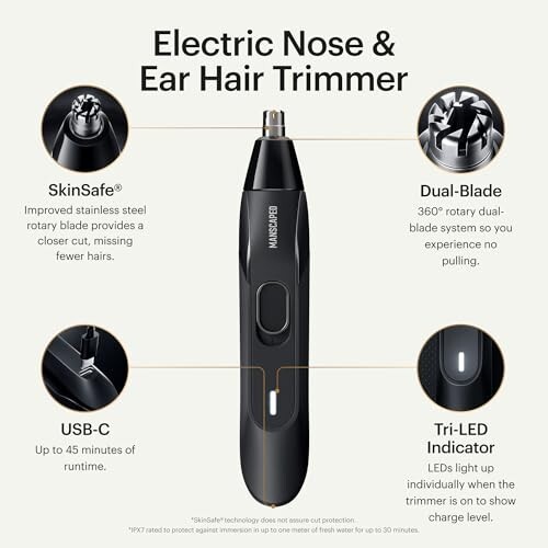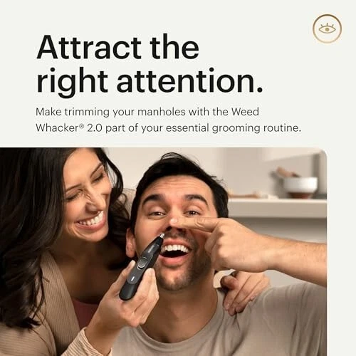 **Ultimate Precision Nose & Ear Hair Trimmer** Introducing the Weed Whacker 2.0, your ultimate grooming companion designed to tackle those pesky nose and ear hairs with ease and precision. Equipped with an advanced stainless steel rotary blade, this second-generation trimmer ensures a closer and smoother cut, leaving no hair behind. Experience the power of a premium 7,000 RPM motor that drives a 360° rotary dual-blade system, delivering a clean and precise trim every time. With its USB-C rechargeable battery, enjoy the convenience of up to 45 minutes of cordless operation, making it perfect for grooming on the go. The matte, rubberized grip provides exceptional control and comfort, whether you're using it in wet or dry conditions. Integrate the Weed Whacker 2.0 into your grooming routine and maintain a polished appearance effortlessly. Say goodbye to stray hairs and hello to confidence with this essential grooming tool.