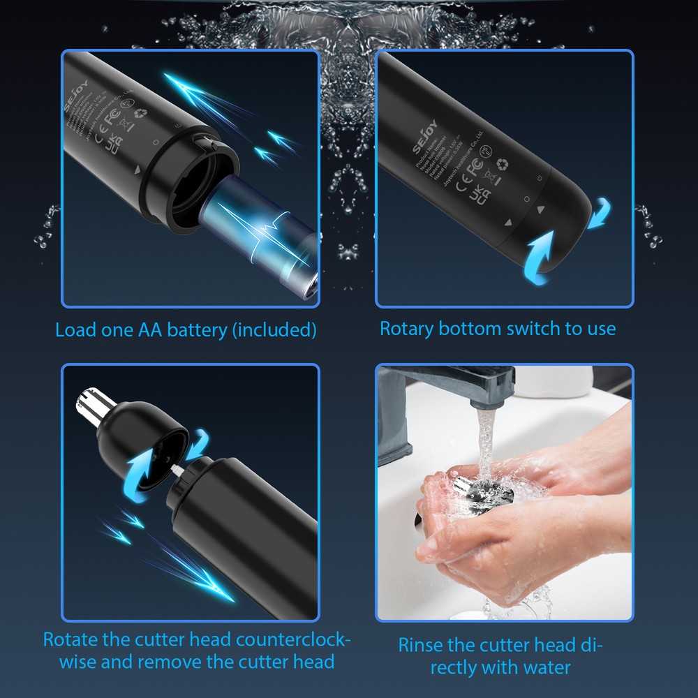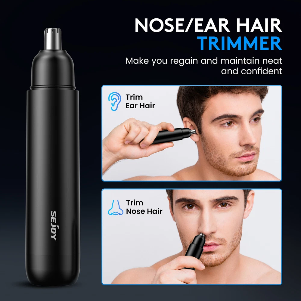 Body Area:Ear, Nose, EyebrowType:Ear and Nose Hair TrimmerDepartment:UnisexBrand:SEJOYFeatures:Cordless, WaterproofHead Type:Nose Hair TrimmerMotor Type:MagneticPower Source:USB ChargingMPN:Does Not ApplyColor:Black