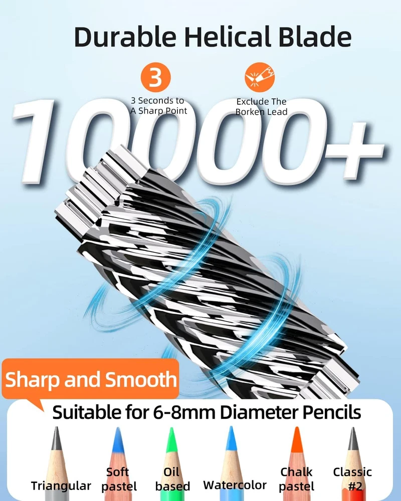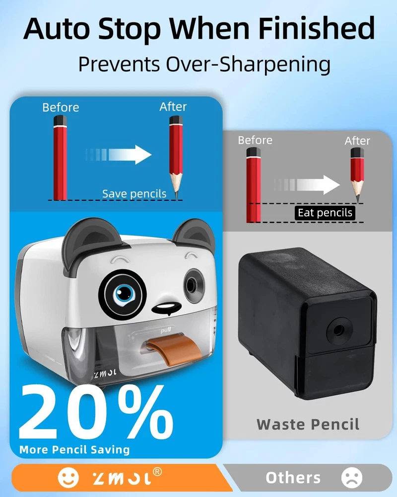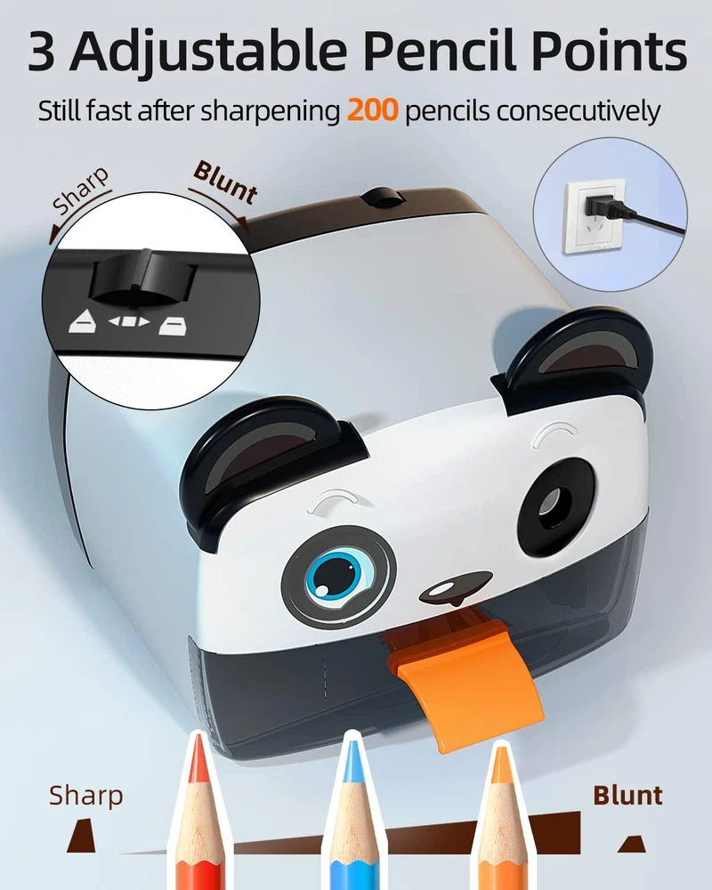 Store New Arrivals Add to Favorite View Feedback Contact Electric Pencil Sharpener,Heavy Duty Pencil Sharpeners for Classroom,Cute Pencil Sharpener Plug in for Kids,Auto-Stop Pencil Sharpener for No.2 / Colored Pencils,Best Electric Pencil Sharpener Description Product Dimensions 6.3 x 6.2 x 5.1 inches Power Source Corded Electric Color Panda Is Discontinued By Manufacturer No Material Plastic Material Type Plastic Manufacturer Part Number jbd111 Item Weight 1.7 pounds Point Type Medium Specific Uses For Product Graphite Pencil 【Auto-Stop Feature】 This automatic pencil sharpener with Pencil Saver feature prevents over sharpening. Electric pencil sharpener stops automatically when it reaches the predetermined sharpness. It doesn't keep sharpening and causing the pencil to go to waste. Attention, please! It is normal for the pencil sharpener to continue working briefly for a few seconds before it stops working after a pencil has been inserted into the sharpener in predetermined sharpening mode. 【Safe And Cute Pencil Sharpener For Kids】This electric pencil sharpener is heavy enough and there is a non-slip mat at the bottom ensures that it is firmly attached to the desk so that kids are able to use it conveniently by themselves. Other than that, it stops shaving when the shavings box is removed or not closed .Perfect gift for teachers, students, engineers, children, artists, and anyone who loves to draw! 【3 Modes To Choose】Our colored pencil sharpener is durable enough to sharpen 200 pencils in a row which is perfect for 6-8mm size 2 graphite pencils and colored pencils such as Prismacolor Premiers, Derwent, Verithins, Faber-castell, Koh-I-Noor Progresso.In addition this pencil sharpener for colored pencils has 3 sharpening modes to choose from (sharp/medium/blunt) so that pencils will be sharpned in 3 different sharpnesses, sharp-mode for writing and medium/blunt-mode for drawing. 【Auto-Stop Feature】 This automatic pencil sharpener with Pencil Saver feature prevents over sharpening. Electric pencil sharpener stops automatically when it reaches the predetermined sharpness. It doesn't keep sharpening and causing the pencil to go to waste. Attention, please! It is normal for the pencil sharpener to continue working briefly for a few seconds before it stops working after a pencil has been inserted into the sharpener in predetermined sharpening mode. 【Risk Free Purchase】100% satisfaction . We're so confident that you'll be delighted with our electric pencil sharpener that if you're not satisfied with them at anytime, and we'll provide you with a FREE or a FULL including the tax . Product Description When you are painting, you find it always takes time to sharpen the pencil. When you sharpen the pencil, you find the core is cut off again. When you urgently to use a pencil sharpener, you find that it is damaged. Now! No more these troubles! Because our Zmol electric pencil sharpener will help you solve these problems completely! Safety First We understand that kids are inquisitive and possess an adventurous mind, so we add a safety feature where if you open the shavings tray, it shuts off the sharpener. In addition, we use child-friendly and high-quality ABS and PV materials, which will be 100% safe and harmless. We also understand that the sharpener would be used by kids in the classroom, increasing the risk of dropping from heights and shattering, so we took extra care in ensuring that our electric pencil sharpener would not get falled and broken easily, but stand up to extreme wear and tear! These protection items will effectively protect the use safety of you or your child . Zmol Electric Pencil Sharpeners Makes Your Life More Efficient and Convenient Lovely Design Our electric pencil sharpeners come with a cute shape which is popular with all kinds of people. Suitable for kids,students,artists,professors of all ages Helical Pencil Sharpener Plug in This pencil sharpener comes with a wall plug, which is easy to use. Non-skid Feet Have suction cup on the bottom to help stay in postion while simultaneously reducing noise. Electric Pencil Sharpener Heavy Duty Plug In Application Notice 1. Please plug in 120V wall power before use. 2. Be sure that shavings box of sharpener is closed before using. 3. Slide switch for sharpness selection: Sharp/ Medium/ Blunt. 4. Insert the pencil and press it with a light pressure, it starts to work automatically. Take out the pencil when it stops automatically. Add to Cart Add to Cart Add to Cart Customer Reviews 4.6 out of 5 stars 2,069 — 4.5 out of 5 stars 162 4.3 out of 5 stars 307 4.3 out of 5 stars 307 Price $24.99 $ 24 . 99 — — $18.99 $ 18 . 99 $18.99 $ 18 . 99 Power AC AC Lithium battery charging AC AC AC power 120V 120V 120V 120V Pencil diameter <8mm <8mm <8mm <8mm <8mm ABOUT US We offer the best prices around on high quality products. Our E-store includes media such as books, movies, music and games while offering electronics, toys, sporting apparel, clothing, tools, general home, garden items and more. SHIPPING We are always working hard to ensure your package arrives as soon as possible. Please understand that some factors like weather, high postal traffic, and the performance of shipping companies are outside of our control. We offer free shipping to the lower 48 states and ship within 2 business days of payment, usually sooner. We do not accept P.O. Boxes. Please provide a physical address. For shipping outside of the continental USA, we only use eBay's Global Shipping Program.The item is shipped to KY and then sent to the rest of the world. International customers are responsible for all duties and taxes. Continue to check out in order to calculate costs for shipping the item to your country. Messages regarding eBay's Global Shipping Program MUST be directed at eBay EXCLUSIVELY. RETURNS We offer a 30-Day Return Policy on items which you are not completely satisfied with. You have the option for a full-refund or an exchange o