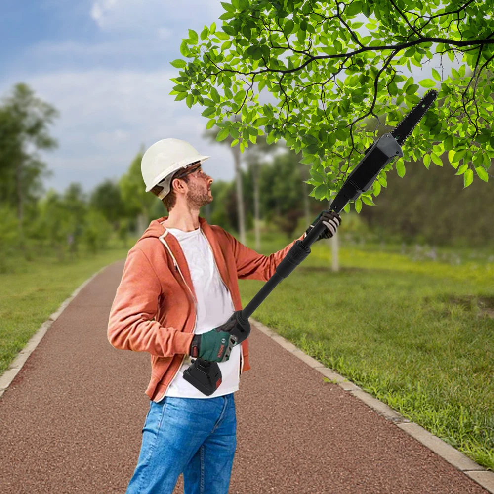Electric Pole Chain Saw Tree Branch Limb Log Bush Trimmer Pruner Garden Tools Welcome~ ✳️Description This pole saw is made of high-quality manganese steel saw chain, alloy carbon steel blade, and ABS for long life. The safety lock design can provide you with a higher level of security. The cordless design eliminates the difficulty of jack wiring and the limitation of work caused by tangled wires. It will be your powerful working assistant! ✳️ Specification Color: Black Model: F007 Material: Manganese Steel, Alloy Carbon Steel, ABS Process: High-temperature Quenching Power Type: Rechargeable - Lithium Technology Assembly Required: Yes Plug Standard: US Standard Rated Power: 552W Lithium Battery Model: 1500mAh No-load Speed: 4500rpm Saw Chain Speed: 1200m/min / 66ft/s Guide Plate Length: 18cm/7.08in Chain Teeth Pitch: 2.5cm/0.98in Chain Thickness: 15mm/0.59in Input: AC 100-240V 50/60Hz Output: DC21V 1A Charging Time: About 2H Duration: About 0.5H Guide Plate Adjustment Angle: Guide adjustment Angle: cannot be adjusted Gross Weight: 2.8kg/ 6.17 lbs Net Weight: 2.3kg/ 5.07 lbs Base Size: 11.8*7.5 cm/4.64*2.95 in Product Length: 1.25m/4.1ft Package Size: 56*15*16 cm/22.05*5.91*6.3 in ✳️ Package Included 1 * Pole Saw 1 * Charger 1 * Lithium Battery 1 * Screwdriver 1 * Chain 1 * English Manual 1 * Guide Plate ✳️ Key Features High-quality Material made of high-quality manganese steel saw chain, alloy carbon steel blade, and ABS, with high hardness, high-pressure resistance, and long service life Adjustable Length The pole saw (the overall length is 4.1ft) makes tough jobs safer and it doesn't need to rely on unstable ladders to handle overhead work. High-Performance 775 Motor the power of the machine up to 552W, no-load speed up to 4500rpm, and saw chain speed up to 66 ft/s, low noise motor with a quieter and non-choking smoke working environment. High Security The machine can only be started by pressing the safety button and the switch at the same time to prevent accidental start-up High-quality Rechargeable Battery The rechargeable 1500mAh lithium-ion battery can provide you with long use time (half an hour after full charge), avoiding frequent charging Wide Application It is applicable to wood cutting, garden pruning, branch pruning, and shrub pruning, and is widely used in gardens, farms, parks, forests, pastures, forest farms, orchards, and greenhouses High-quality Material: The product is made of high-quality manganese steel saw chain, alloy carbon steel blade, and ABS, with high hardness, high-pressure resistance, and long service life. The deep hardened chain has high wear resistance and sharpness. Easy to Use: Large variable speed switch is easy to press (pressing pressure will control the speed, the more force, the faster the speed). The non-slip handle is ergonomic, so you won't feel fatigued even when holding it for long periods of time. The cord-free design also allows you to be free from wire length restrictions, thus providing you with more freedom of use. Adjustable Length: The pole saw (the overall length is 4.1ft) makes tough jobs safer and it doesn't need to rely on unstable ladders to handle overhead work. It can reach high branches and cut them with ease. Efficient Heat Dissipation: Ventilation holes are designed to facilitate heat dissipation, thus ensuring normal motor temperature and effectively extending the product's service life. High Security: The machine can only be started by pressing the safety button and the switch at the same time to prevent accidental start-up. The built-in control circuit board with overload and overheat protection can provide you with safer use. High Efficiency: The high-performance 775 motor enables the power of the machine up to 552W, no-load speed up to 4500rpm, and saw chain speed up to 66 ft/s, which brings you efficient trimming. And the low noise motor can provide you with with a quieter and non-choking smoke working environment. High-quality Battery: The rechargeable 1500mAh lithium-ion battery can provide you with long use time (half an hour after full charge), avoiding frequent charging. It also has overload and temperature protection to provide safer use. Easy to Carry: The detachable design and lightweight of 5.07 lbs makes it easy to carry. You can take it with you wherever you need to work. ✳️ Details Knob Adjustment: Fixing the sprocket cover and adjusting the chain tightness do not require tools, the built-in knob can help you to install and adjust quickly. ✳️ Application It is applicable to wood cutting, garden pruning, branch pruning, and shrub pruning, and is widely used in gardens, farms, parks, forests, pastures, forest farms, orchards, and greenhouses. ✳️ Notes 1. Please pay attention to the tightness of the chain at all times. It is normal for the chain to slip after the operation. 2. When charging, it is normal for the charger and battery to heat slightly. 3. Please do not use damaged batteries or disassemble chargers or batteries. 4. The battery will explode when it is put on fire. Do not heat the battery! 5. With the gradual decrease of battery power, it is normal for the ability of the shearing diameter to decrease. 6. If the battery is not used for a long time, it must be recharged once every 3 months to prolong its service life. 7. New batteries or batteries that have not been used for a long time need about 5 charge-discharge cycles before reaching the maximum capacity. 8. Please do not recharge the battery after a short time of operation, which may reduce the working time and efficiency of the battery. 9. Products with electrical plugs are designed for use in the US. Please check compatibility before purchasing. 10. Please read the operating manual completely before use. And pay particular attention to the safety instructions included. 11. Please allow the slight color difference caused by the shooting light and the 1-3 cm error due to manual measurement, and make sure you do not mind 