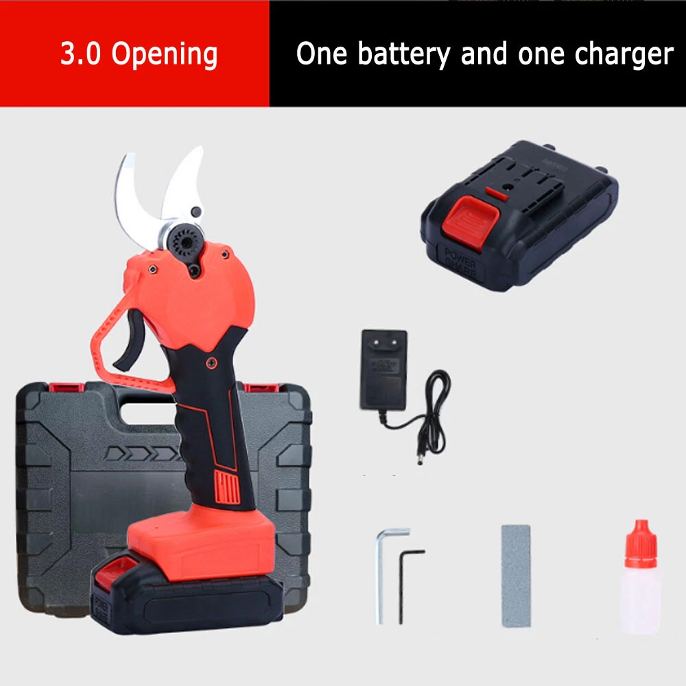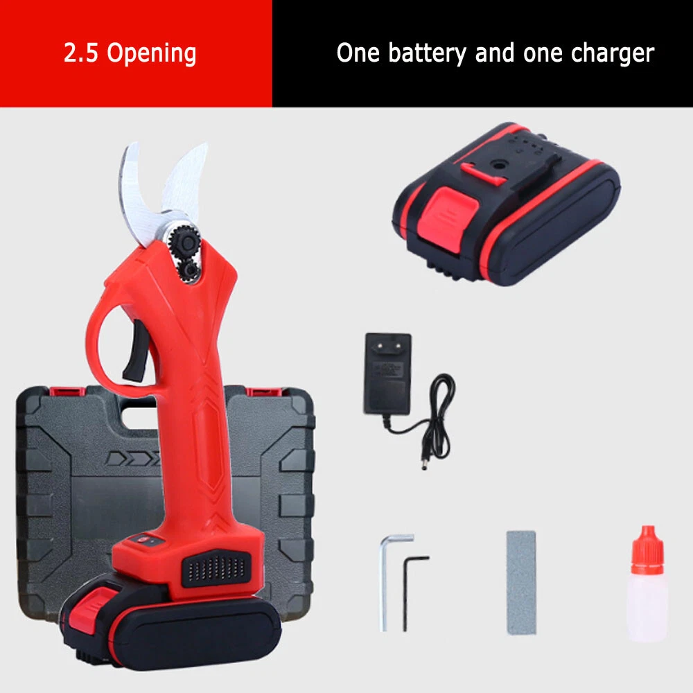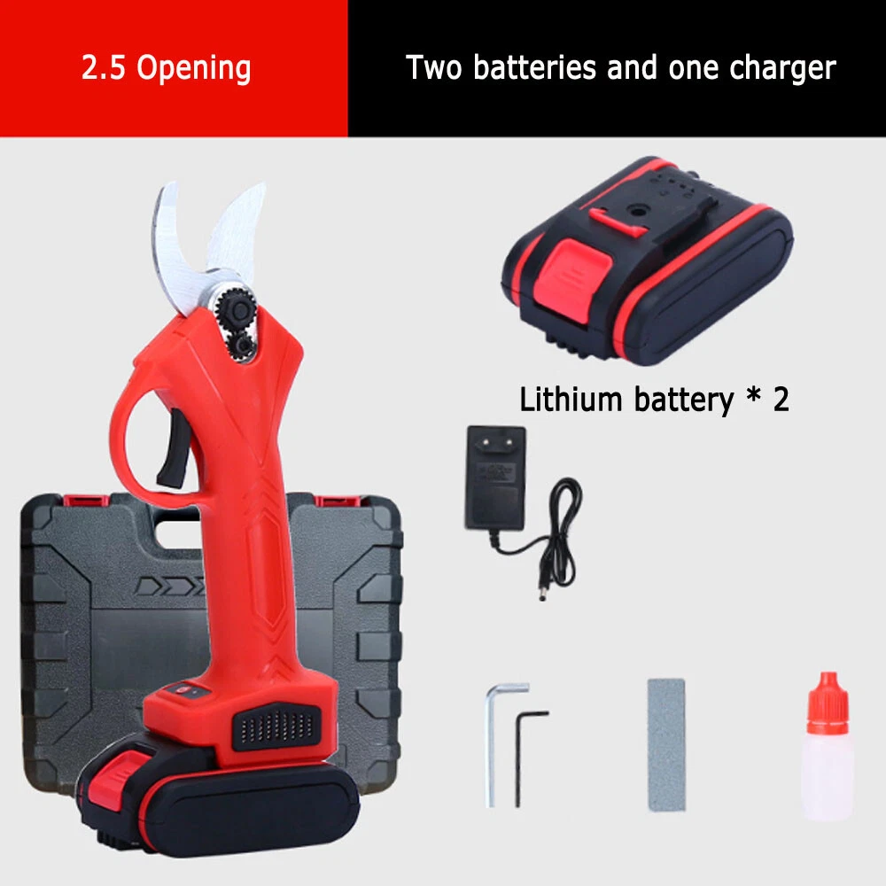 Description: 1. Long endurance, electric pruning, pruning force, increase the battery capacity to make pruning become easier, let you trim 200 more trees a day. 2. Strong power to easily deal with a variety of hard wood, can be used for ten years of pruning, second cut 3 cm thick branches, imported quality SK5 steel efficiency greatly improved. 3. A cut and multi-purpose, a variety of scenes, a machine to do. Logging field, forestry harvesting, household chopping firewood pruning. YMS sharp blade, carbon steel blade high hardness, 3CM thick branches instantly cut, intelligent 2 gear adjustment, flexible gear adjustment, easy to solve the thick branches, the machine only weighs 0.9 KG, such as the weight of a bottle of water, girls are not tired all day use. Clutch safety switch, to prevent misoperation, it is very safe to use. 4. Brush-less motor stable input strong power, brush-less motor strong power source. Waterproof does not skid, efficient work is the hard truth. Specifications: 1. Operating voltage: 21V 2. Scope of application: fruit branch 3. Hamhammer force: No 4. Lithium battery: 5 section cells 5. Shear diameter: 2.5CM / 3CM Package 1 Included: 1 SET Electric scissors 1*battery ; 1*charger ; Package 2 Included: 1 SET Electric scissors 2*battery ; 1*charger ;
