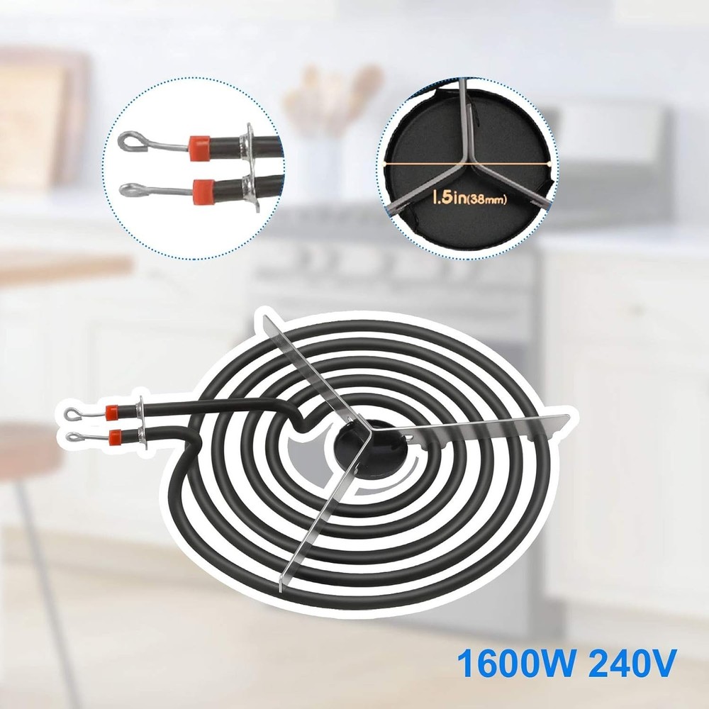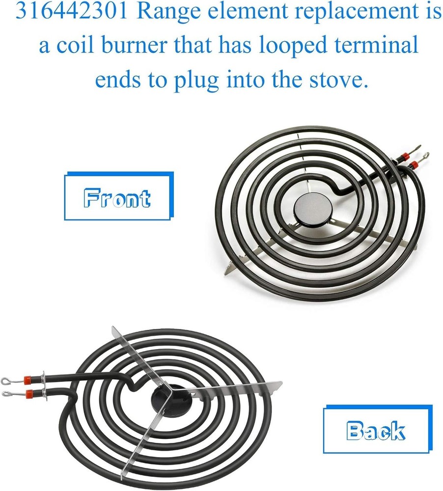 Electric Range Burner 8'' Coil Surface Element 5-Turns by for Frigidaire Range Coil Surface Element Replaces MP26YA AP4356467 PS2339242 [Product Highlights] General Electric Range Surface Element MP26YA 8 inch Surface Element 1 pc. Surface element is used on the stovetop of the electric range and is designed to generate cooking heat. Heavy-duty heating element, rugged stovetop . [ number] 1465861A, P4356467, PS2339242, MP26YA, EAP2339242, 08002901, 08010468, 08011660, 1465861, 2222T025P01, 31616161, 31, 31. 26550 0, 318372204, 318372214, 5303310282, 530332552, 530332555, 5308002901, 5308011660, 8002901, 80031118, AH28 33924 2 【Specifications】Color: black range coil surface element. Size: Approx. inches (Approx. 8 inches (Approx. cm), 2600 watts, 5 turn element coil, 240 volts. Meets or exceeds equipment specifications (☀ See pictures, measurements and part number to determine if this part will fit your model equipment.) 【 Suitable model 】79094142310, CCRE312GWWA, CCRE3530LWE, F04B350BDA, F04S350BWA, FED300WAD3, FED340WA, FED355ABA, FED355CCBJ, FED35CCTA, FED3, FED3, FED3, FED355555CCTA, FED. F326A. QK,FEF329EBD,FEF342BADB,FEF350SAWA,FEF355ABA,FEF355AQF,FEF450WCDA,FES355CCTB [Part Information] Range Coil Surface Element. This element features a tail braid and loop end. Burner element surface with "Y" bracket and black medallion. 2 claw, plug-in surface element that fits most electric heat products, except regular electric heat. Provides heat to the cooking area. Replaces damaged elements and allows your electric range to operate at optimum efficiency. To escort your healthy and comfortable life.