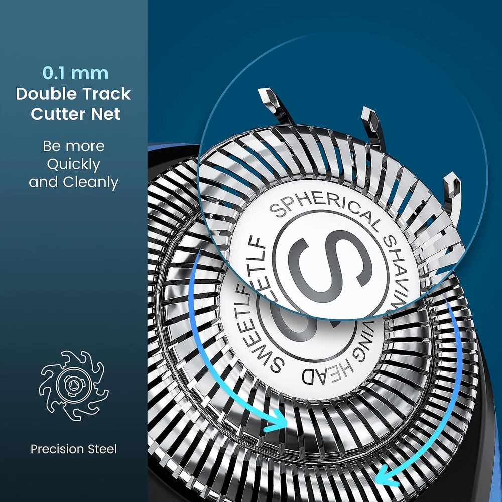 đă3D FLOATING SHAVER HEADă- The electric shaver adopts precision blade technology, high-speed motor, The flexible head rotates 360° to fit any curve of your face, neck or jaw. The 3000 rpm motor gives you a close, deep shave, minimizing pressure and irritation for a smooth, close shave. đăSMOOTH AND CLOSE SHAVE ă- With 3-direction floating heads, the 3D rotary shaver automatically adapts to the contours of the face, neck and jaw, and provides a comfortable and close shave anytime.The more you use it, the better it can adapt to the face đăIPX7 WATERPROOFă- The whole body of the electric razor is IPX7 waterproof,.Enjoy your dry shaving when sitting on sofa, or do a refreshing and comfortable shaving in shower. The rotary shaver easily adapts to either shaving foam or gel for a smoothier and closer shaving experience.Plus, this electric shaver can be washed directly by water. đăPOP-UP TRIMMER & ONE TOUCH OPENă- convenient Pop-Up trimmer is perfect for grooming beards and trimming sideburns. If your beard or other facial hair is too long, it is recommended to use this trimmer before shaving with acordless razor. đăCONVENIENT USB CHARGINGă- Micro USB power port is compatible with all standard 5V USB power adapters, convenient for your daily and travel use. This rotary shaver includes a USB charging cable.Enjoy about 120 minutes shaving time (approximately 30 full shaves) with 1 hour full charge. đăPACKAGE LISTă- 1 x Electric Shaver/Electric Razor,1 x USB Cable (NO USB adapter),1 x Charging Cable, 1 x User Manual