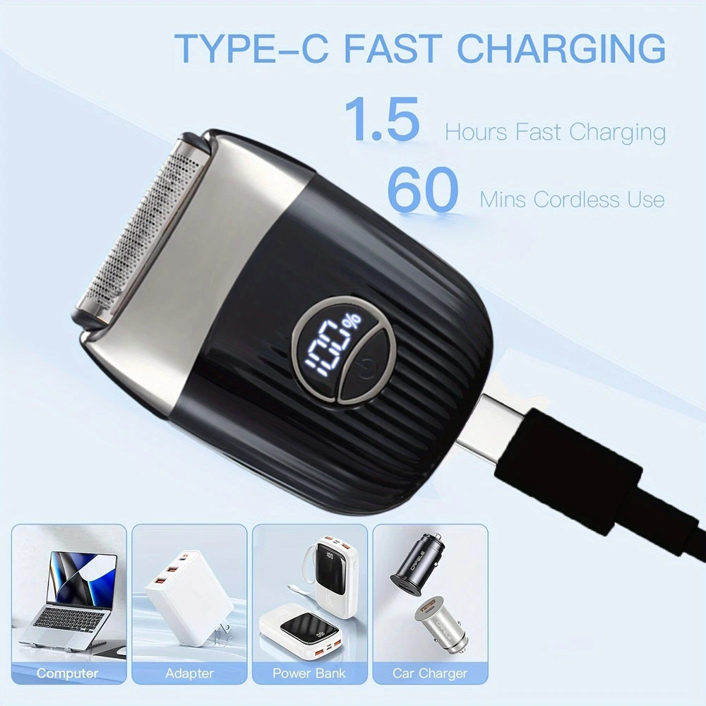 Men's Waterproof Electric Shaver for Wet & Dry Use with Rechargeable Battery