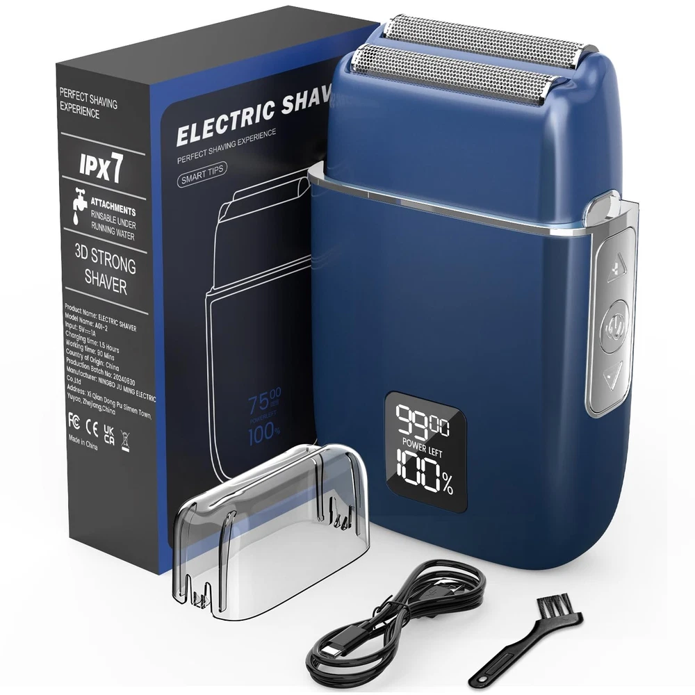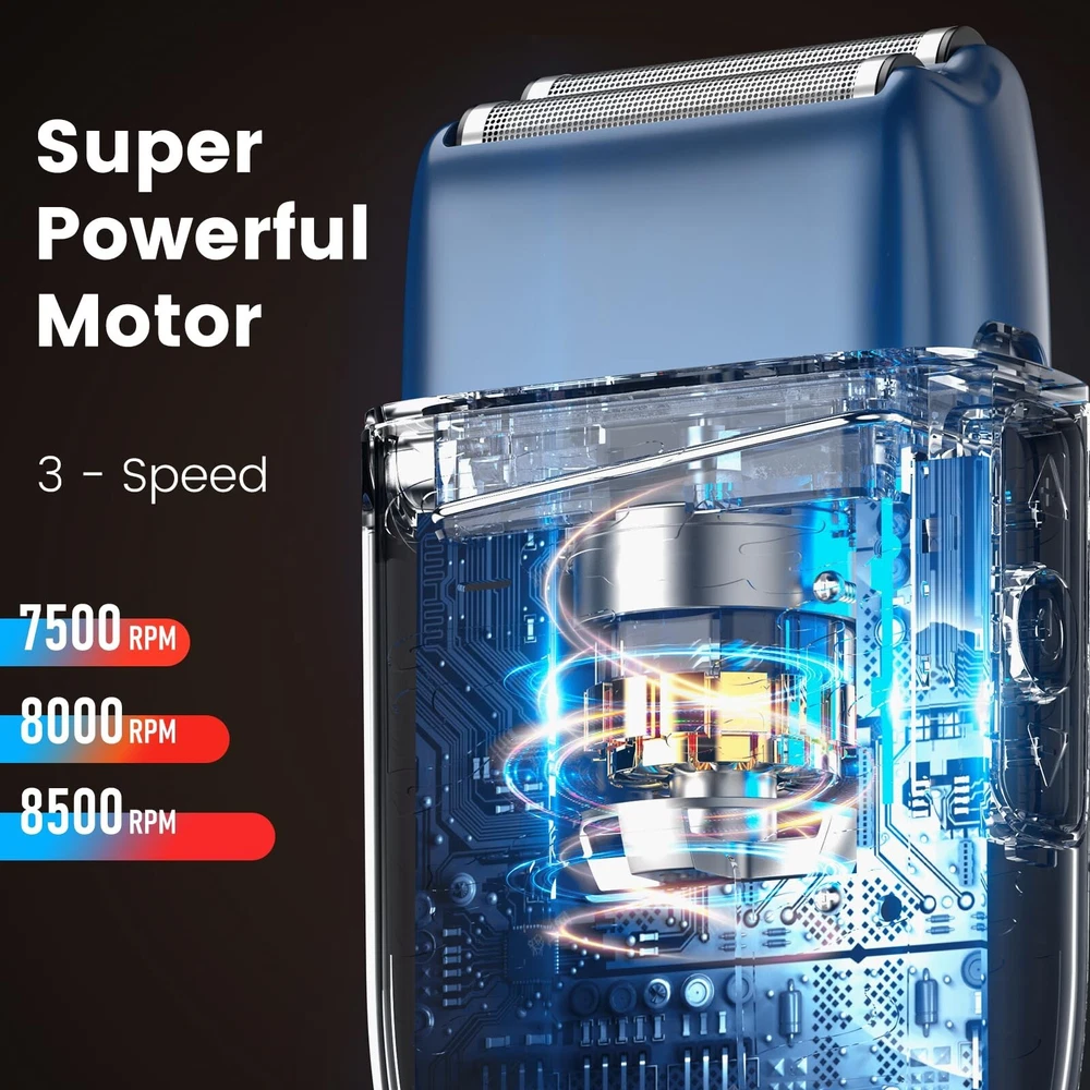 Electric Razor for Men, Waterproof Foil Shaver, Double Floating Blades Beard Groomer, Waterproof Rechargeable 90 Min Runtime LED Display Product Details Color: Blue Brand: Fishcovers MPN: WF-MENRAZOR-003 UPC: Does not apply EAN: Does not apply Brand: Fishcovers Recommended Uses For Product: Beard, Face Special Feature: High Efficiency, Hybrid, Rechargeable, Detachable Head, Battery Indicator Power Source: Battery Powered Included Components: Cleaning Brush, Protective Cap, Charger Package Dimensions ‏ : ‎ 6.3 x 3.9 x 2.24 inches; 14.89 ounces Item model number ‏ : ‎ WF-MENRAZOR-003 Date First Available ‏ : ‎ October 29, 2024 Manufacturer ‏ : ‎ Fishcover Country of Origin ‏ : ‎ China Professional Shaving Experience - This electric razor features ultra-thin hypoallergenic dual titanium foils, delivering a smooth, irritation-free shave. Designed for sensitive skin, it ensures comfort, confidence, and a clean look every time Powerful Motor & Long Battery Life - Equipped with an 8500RPM motor and 800mAh battery, this electric shaver offers 90 minutes of runtime. Its fast, powerful performance easily handles coarse beard, making it ideal for daily use and travel needs Smart & Travel-Friendly Design - Designed for modern men, this electric razor has an LED display for battery and speed (7500/8000/8500RPM). Its USB-C port supports car or phone charging, offering ultimate convenience for on-the-go grooming Easy Maintenance & Waterproof - This IPX7 waterproof electric foil shaver has a detachable, washable foil head for quick cleaning. Wet/dry shaving support and a 3-second travel lock make it easy to use and secure, perfect for home or travel Premium Quality & Warranty - Backed by a 12-month warranty, this electric razor ensures durability and top performance. With hassle-free support and a money-back guarantee, its built to last and delivers reliable shaving results Perfect Gift Option - This electric shaver combines strong performance with a stylish design, making it a great gift for any man. Ideal for birthdays, holidays, or anniversaries, its a thoughtful and practical grooming tool Warm Tips - This electric razor is best for stubble shorter than 1/25 inch. For thicker or curly hair, please use the clipper or Scissors first to trim. This ensures smoother, closer shaves with maximum comfort and efficiency