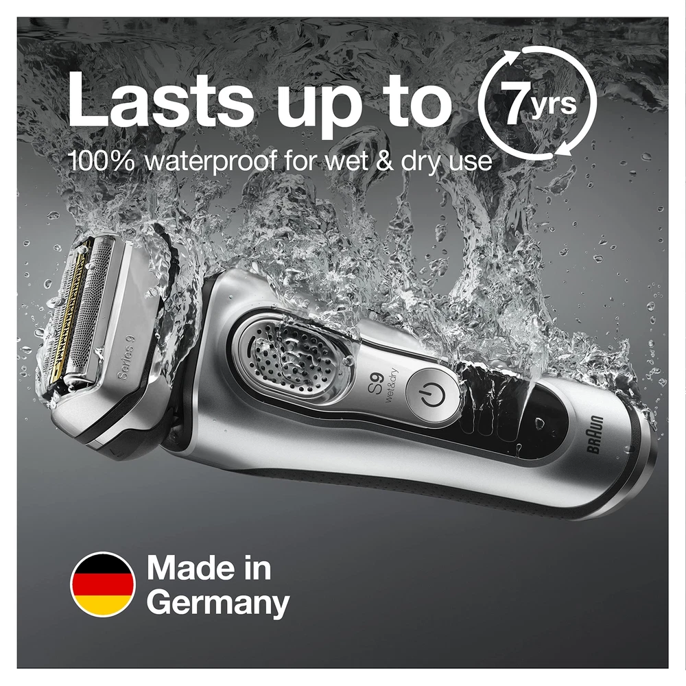 Electric Razor for Men With Precision Beard Trimmer, Rechargeable, Wet & Dry Foil Shaver, Clean & Charge Station & Travel Case, Silver, 3 Piece Set Series 9 9370cc Men's Electric Shaver with Clean & Charge Station, Cleaning Cartridge, Travel Case, Smart Plug and Cleaning Brush World's most efficient electric shaver* features 5 shaving elements to get more hair in one stroke than any other shavers These electric razors for men intelligently respond to your face contours and beard density, giving you more skin contact for a more thorough shave 5-in-1 Clean & Charge station automatically charges and hygienically cleans, lubricates, and dries for a shaver that performs like new Battery on rechargeable shavers for men lasts 20% longer** (60-minute full charge) or you can quick-charge for one shave in only 5 minutes Wet and dry men's electric razors are 100% waterproof and can be used with foam, gel or even under the shower *Tested on 3-day beard vs. leading premium tier products **vs. previous Series 9 The Series 9 is our best electric shaver with 5 synchronized shaving elements, worlds strongest sonic technology and an intelligent autosensing motor to shave more hair in one stroke than any other shaver. A 100% waterproof electric razor designed to last up to 7 years, and a trimmer reinforced with Titanium coating. How to shave with an electric foil shaver: We recommend that you shave before you take a shower. Stretch the skin and shave against the direction of beard growth. At all times, hold the shaver at a right angle (90 Degree) to your skin. Keep the pressure even to achieve the most thorough and comfortable shave from . To trim sideburns, mustache or beard, series 9 features an integrated precision Trimmer with superior cutting performance. In order to use This comfortable and precise tool, simply slide the trimmer upwards. Shipping We offer FREE shipping on all orders! We ship within Three business days of payment, usually sooner. We use a selection of shipping services such as UPS, FedEx, USPS etc. We only ship to the lower 48 states, no APO/FPO addresses or PO Boxes allowed. Local pickups and combined shipping options are not provided at this time. Return You can return a product for up to 30 days from the date you purchased it. Any product you return must be in the same condition you received it and in the original packaging. Please keep the receipt. Payment We accept payment by any of the following methods: PayPal Please pay as soon as possible after winning an auction, as that will allow us to post your item to you sooner! Feedback Customer satisfaction is very important to us. If you have any problem with your order, please contact us and we will do our best to make you satisfied. Contact Us If you have any queries, please contact us via ebay. We usually respond within 24 hours on weekdays. Please visit our eBay store to check out other items for sale! Thank you for shopping at our store.
