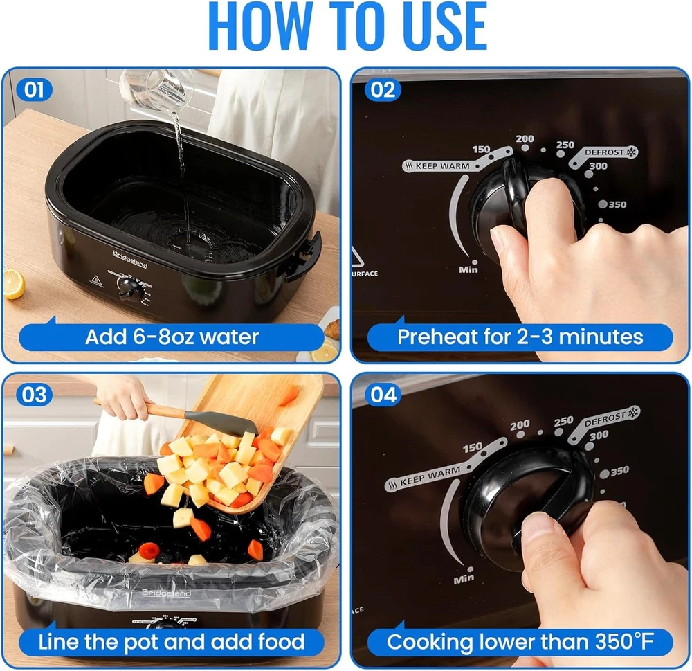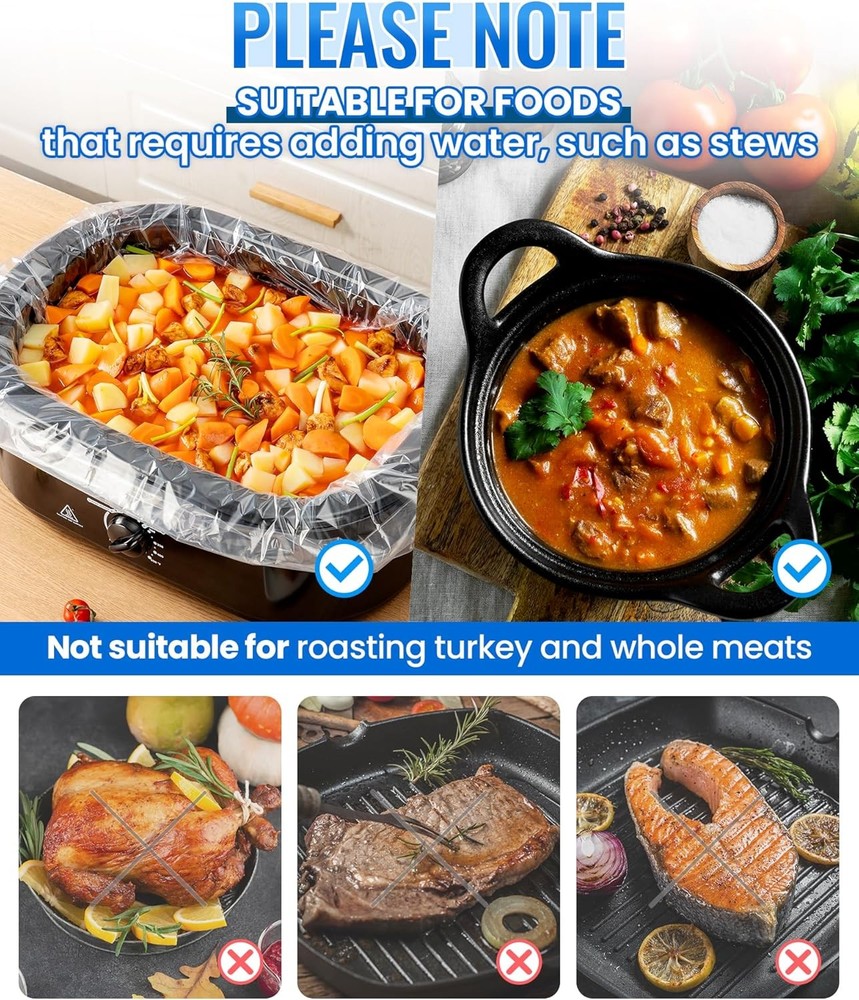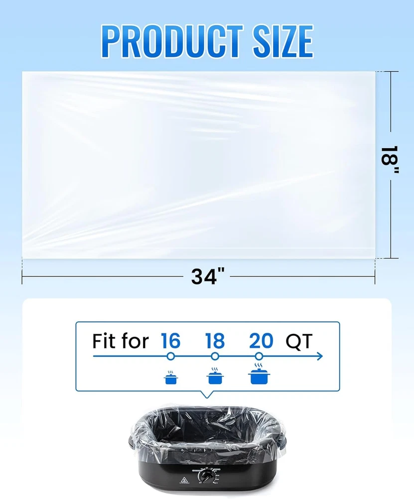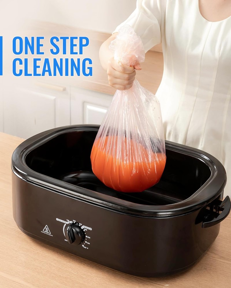 Free eBay listing template designed by dewiso.com Electric Roaster Liners 34 x 18 Inch, 10 Count Disposable Roaster Oven Bags, Heat-Resistant Liners Fit 16, 18, 22 Quart Roasters for Quick & Easy Cleanup FREE AND FAST SHIPPING! About this item Mess-Free Cleanup in Seconds-Save time and effort after cooking—simply remove and discard the liner. Our electric roaster liners are leakproof and greaseproof, preventing stuck-on messes and protecting your roaster pan from stains and residue. Food-Grade, Safe & Odorless Material-Crafted from high-strength PA material that is BPA-free, non-toxic, and odorless, these liners ensure your food retains its original flavor. Cook with peace of mind using our certified food-safe liners. High Heat Resistance up to 350℉-Designed to withstand temperatures up to 350℉, these liners distribute heat evenly, making them ideal for slow-cooked meals like casseroles, chili, and stews—without compromising safety or taste. Extra-Large Size Fits Most Roasters-Measuring 34 x 18 inches, our disposable liners are compatible with 16, 18, and 22-quart electric roaster ovens. Need to cook multiple dishes? Use two liners at once to separate meals in the same roaster. Usage Tips & Limitations-Perfect for liquid-based dishes like soups, stews, and vegetables. Do not use for whole-muscle meats (e.g., chicken, turkey, steak). Always add water and preheat the pan for 3 minutes to prevent the bag from melting due to uneven heating. Product We offer a 30-Day Return Policy on items which you are not completely satisfied with. You have the option for a full-refund or an exchange of the item. No returns are available on items shipped outside of the US . Shipping We offer Free Shipping to the US and ship within 2 business days of payment, usually sooner. We use UPS express shipping. That's why your products are usually delivered within 3 days . Contact We try our very best to make sure every customer is completely satisfied. If there's a problem , message us! We're happy to help. 24/7 live chat available.