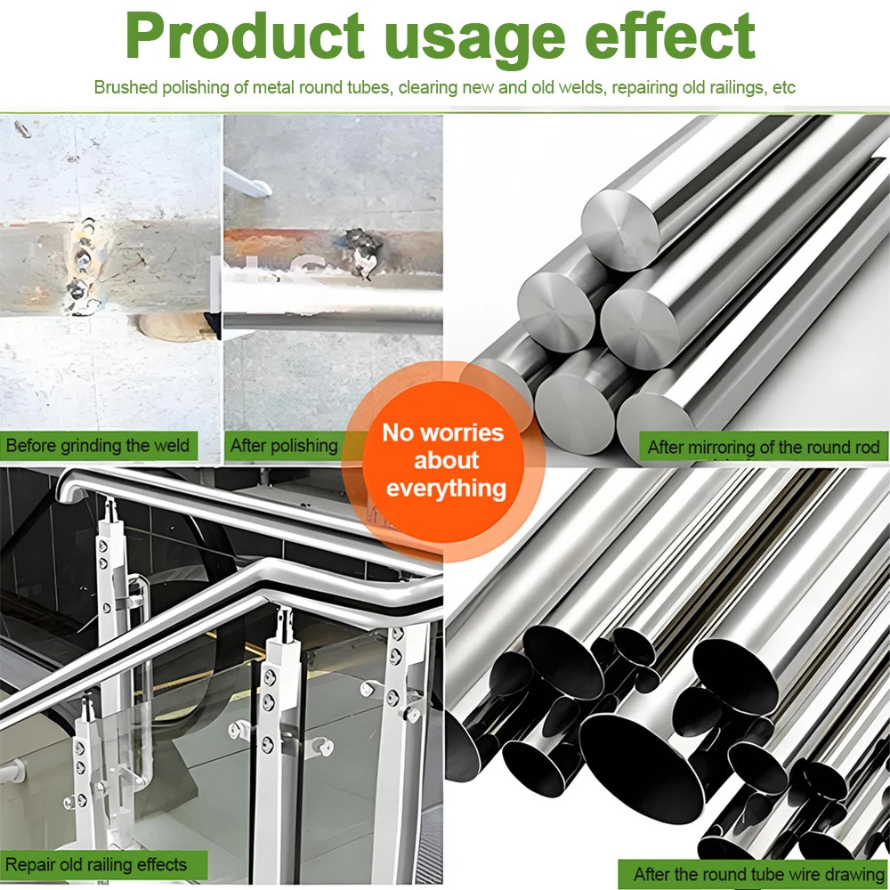 Electric Round Tube Polishing Machine Stainless Steel Curved Edge Grinding 220V Designed for uniform grain grinding, it can produce various brushed effects. It also achieves polished and mirror finishes. Whether grinding thick or thin tubes, or even round tubes for railings and handrails, this machine handles them with ease. For removing new welds or repairing old railings and welds, the round tube grinder is the ideal choice.