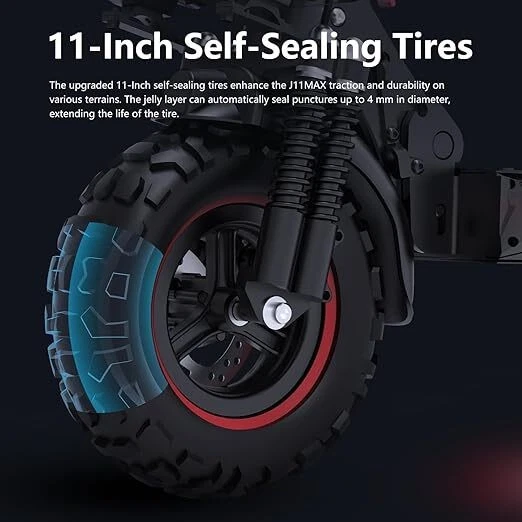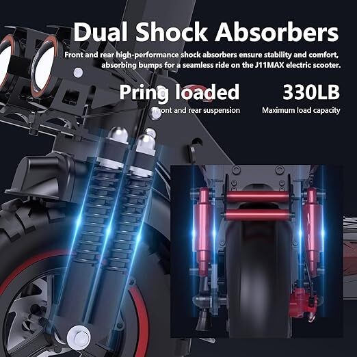 High-Powered Performance Equipped with a single 1200W motor, the J11Max electric scooter reaches a thrilling top speed of 55 KM/H (34 MPH) — ideal for high-speed commuting and adventurous riding. Long Range Battery Ride longer with a 48V 18Ah lithium battery offering up to 33 miles (53 KM) on a single charge. Say goodbye to range anxiety and enjoy extended trips with confidence. Off-Road Ready Tires Durable 11-inch off-road tires provide exceptional grip and stability on both urban roads and rugged paths, ensuring a smoother ride wherever you go. Smooth Ride with Hydraulic Suspension Features advanced 6-point hydraulic shock absorption that effectively filters vibrations from rough terrain for a comfortable and stable ride. Foldable with Optional Seat Designed with convenience in mind – foldable frame for easy transport and storage, plus a removable padded seat for customizable riding comfort. We build scooters with precision engineering and strict quality inspection. We provide pre-assembled delivery for easy installation and a 180-day component warranty for your peace of mind. Contact our 24-hour dedicated support team and we will provide you with timely assistance - your satisfaction is the driving force of our innovation.