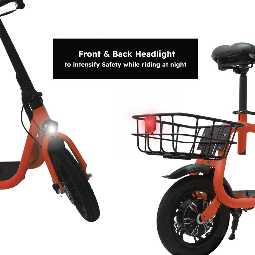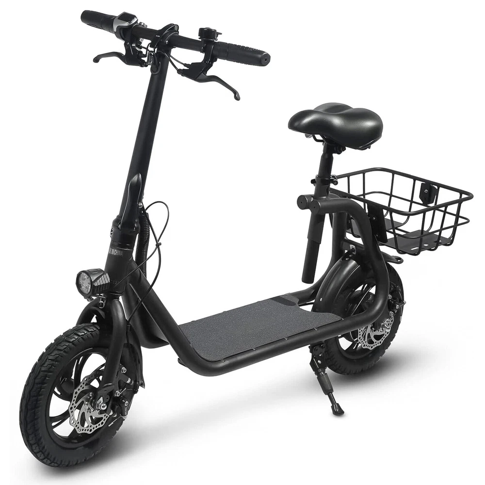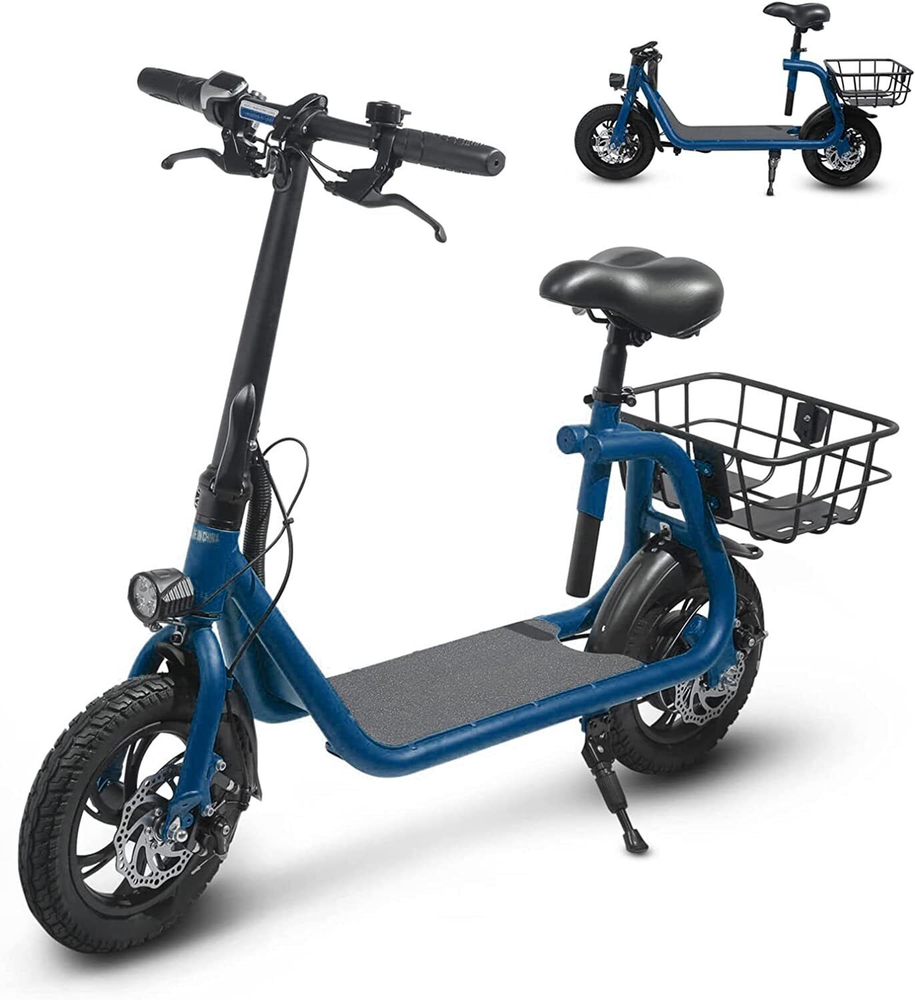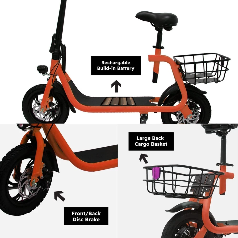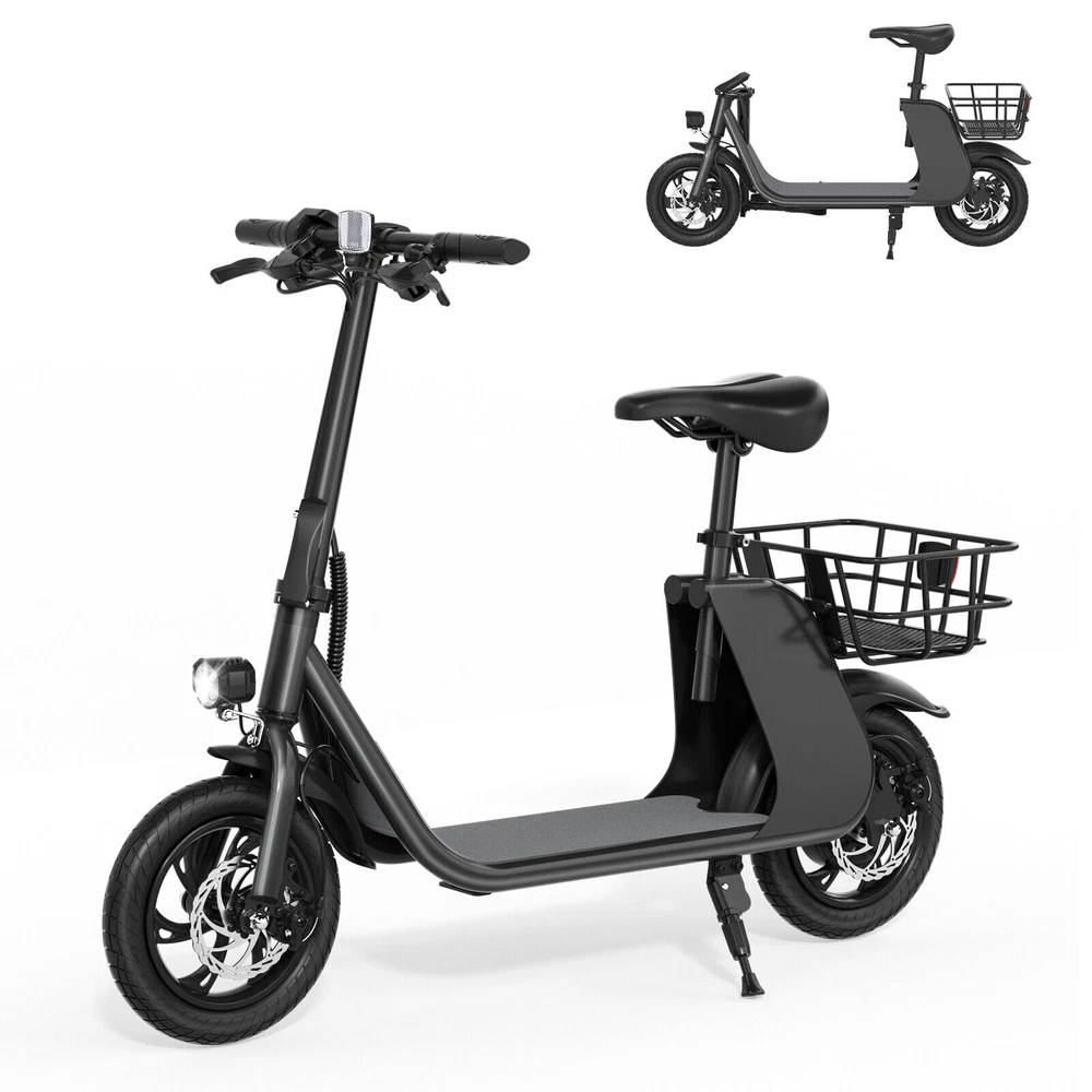eBay Sports Electric Scooter with Seat for Adult Electric Bike Electric Moped for Adult Commuter. Feature Powerful Motor & Long Range: The adult electric bike comes with a 450W powerful brushless motor and large 40 cells 8.0Ah Lithium-ion battery, enables a 12.5-mile range, and a max speed of 15.5 mph. Portable & Lightweight: The foldable electric bike only weighs 42 lbs and can comfortably accommodate riders up to 265 lbs. This adult electric scooter can be easily folded and stored in the car trunk, which makes it perfect for commuters and students. Safe & Durable: With double braking systems, the front and back disc brake of the e-bike give you double safety. The 12" tires built for multi-terrain of daily use or outdoor activities. Detail Oriented Design: The E Scooter come with 13 x 11 inch rear carry basket and scooter deck, front LED light and rear reflectors for safety. Easy Assemble Required: The only assembly required is the seat and basket attachment. The handle bars are folded and just need to be erected. All tools are provided in the box. Package Listing 1 X E Scooter 1 X Charger 1 X User Manual 1 X Tool Kit After you receive the adults scooter,before first Riding,please do the follows: 1.Inflate the Tires before Riding. 2.Complete Charging(Light RED:Charging, Light Green: Charging Compelte). The E-bike have passed safety standard detection Shipping Payment Return & Refund policy Feedback Customer Support - Contact Shipping FREE SAME BUSINESS DAY MONDAY- FRIDAY SHIPPING FROM USA. All orders and payments received before 4PM EST (1PM PST) will be shipped the same business day. All other orders within 1 business day. No shipping on Weekends or US Public Holidays. No responsibility for any custom duty Shipping information will be updated when available. Payment We accept payment via PayPal. Use PayPal at checkout to pay with credit or debit. Immediate payment is required. Shipping will be arranged within 1 business day once payment is cleared. Return & Refund policy 1.We stand behind our items and offer 60 days warranty. All items are in new and working condition unless specified otherwise elsewhere in the description. 2.All Returns - defective or otherwise - MUST BE PREAUTHORIZED to guarantee refund or exchange. Please contact us to get an authorization and return address. 3.Buyer agrees to pay for the cost of re-shipment for undeliverable or wrong addresses. 4.Buyer is responsible for Return Postage as well as a 20% restocking fee if return/replacement is not a result of our mistake such as wrong item. 5.Replacement or Refund will be made upon receipt of the returned item. Please include tracking number so we can process ASAP. If you do not wish to wait for a replacement, please repurchase the item. 6.ALL REFUNDS will be processed via PayPal. Please double check via PayPal history and transaction for confirmation. PayPal will send it back to whatever you used to pay within 3-5 days. Feedback We strive to provide the best products and services. Your positive feedback 5 stars DSR help us do better. If anything about your transaction did not meet expectations, please CONTACT US and give us the opportunity to make things right. We are always here to help. Customer Support - Contact Please do not hesitate to CONTACT US. You can message 24/7 on eBay for all questions and inquiries. We will get back to you within 1-2 business days at the latest.