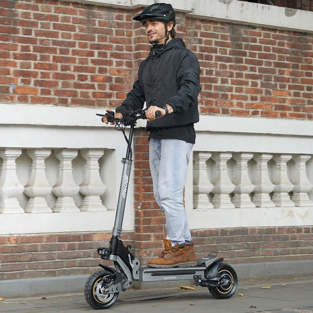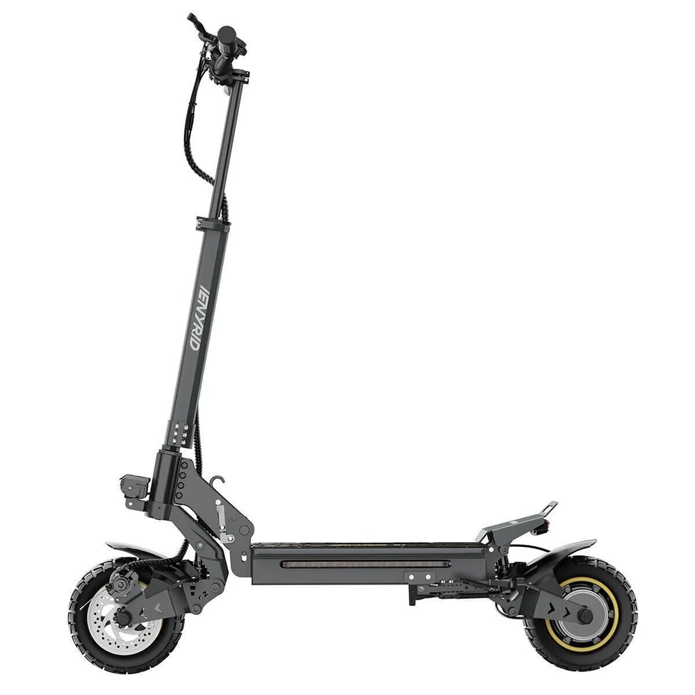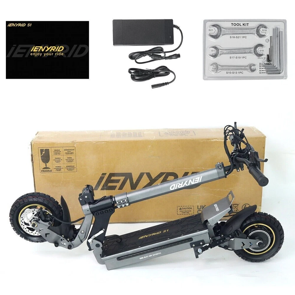 iENYRID 700W 48V Adults Electric Scooters Dual Motors Drive Commute Off Road E-Scooter 2025 Upgraded iENYRID Electric Scooter S-A Foldable Electric Scooter comes with a 700Wh (48V 15Ah) battery assisting 19-25 miles cruising range. S-A becomes an excellent choice for high-quality and comfortable riding. It is suitable for commuting to work, shopping in supermarkets, mountain cross-country and traveling. Powerful Motor & Long Lasting Battery S-A electric scooters f With powerful Dual 700W Motors, detailed parts, detachable seat and foldable design, brings faster acceleration and climbing ability to this electric scooter, which can reach 28 mph max and max 30°climbing angle. Comfortable Commuting IENYRID S-A adult off road electric scooter comes with upgraded 10-inch off-road tires and front and rear dual suspension to ensure max comfort even on bumpy roads. Also, the aviation-grade aluminum frame is stronger and lighter, which makes the scooter much more elegant to look at and handle as well. And it has a max load of 280 lbs. Foldable Electric Scooter Easy to fold and carry, carry it on public transportation or store it in your car to get to wherever you want. Dynamic, Easy storage in car trunks and other compact spaces, occupying little space and suitable for travel and transportation commute. IPX5 Super Waterproof & LED Intelligent Lighting System The waterproof frame and deck are tightly sealed against water, accredited with an IPX5 ingress protection rating painting. The head of the e scooter is equipped with three LED lights with different functions to ensure safe and worry-free riding at night. Specification: Type: Electric Scooter for Adults Model:S-A Motor: 700W Tyre Type: Air tires Battery specification: 48V 15AH Charger specification: Input 100-240V 50/60Hz 2.0A, Output 54.6V 2A Max Controller specification: DC48V/36A Charging time: 6-8 hours Frame Material: Aluminum alloy Light: Front LED headlights, sidelights, and taillights Drive mode: front and rear wheel dual drive Max Speed: 28MPH Max Range: 19-25 Miles Max Load: 265 lbs Maximum climbing ability: ≤ 30 ° Tires: 10 in off-road pneumatic tires Frame Material: aluminum alloy Braking method (front/rear): mechanical braking Front shock absorber: Yes Rear shock absorber: Yes Front headlights: integrated with horn Tail lights: Yes Edge light: Yes Brake lights: Yes Net Weight: 65 lb Front and rear tire pressure: 50 ± 10psi Product Size (L x H x W): 47.24 x 49.6 x 23.62 in (unfolded), 45.67 x 20 x 23.62 inch (folded) Package Size: 128*24*48 cm Package Contents: 1 x Charger 1 x User Manual 1 x Electric scooter Warning: It is illegal to ride electric scooters on public roads (except under very specific circumstances), pavements or cycle paths. They are intended only for use on private land with the owner’s permission.