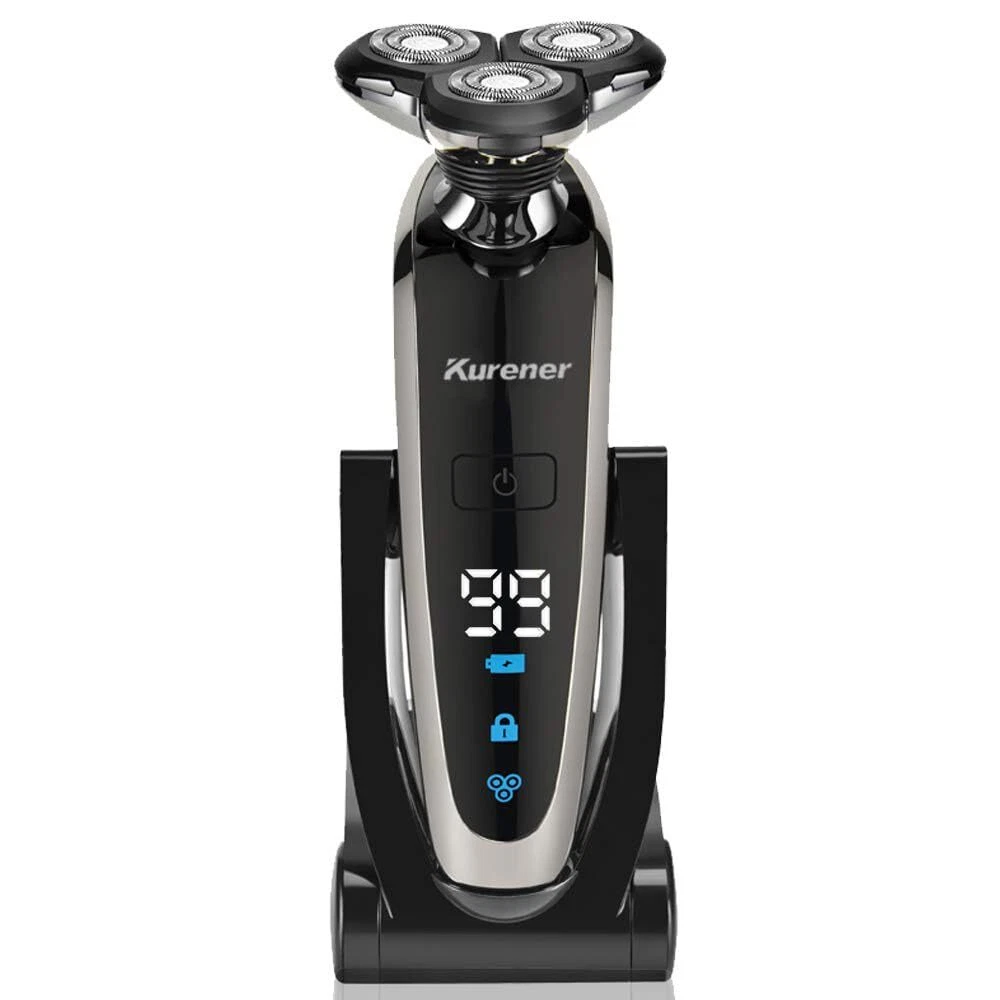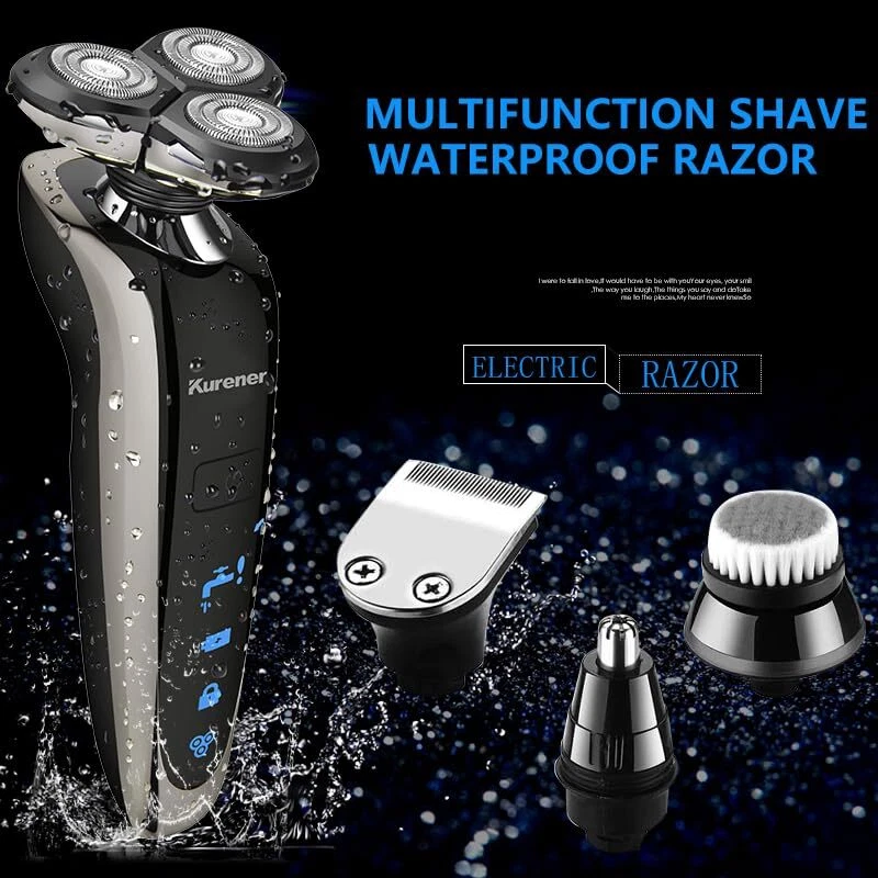 3D FLOATING HEAD - 360 degrees close to the skin tightly, fits the curve of face and neck perfectly, gives you a reliable close shave every time. DOUBLE-TRACK CLOSE-TO-FACE CUTTER With the design of double-track cutter, the contact surface is increased, so save greatly your time and energy when shaving. MUTE HIGH SPEED MOTOR - You could enjoy every moment of shaving quietly because of the low noise of this shaver for men. EXTREME SHAVING SYSTEM - With automatic grinding technology and blades self-sharpening, which will not pull the beard or damage skin, its sharpness can last longer than normal blades. leading premium tier products A Smooth and Close Shave- electric shaver can perfectly fit the curve of face and neck, minimizing pressure and irritation, provides you a more comfortable, smooth and close shaving experience. WATERPROOF : The whole body is washable with water. Very convenient to clean. Can be directly under the tap cleaning 4 IN 1 MULTI-FUNCTIONAL ELECTRIC RAZOR: Beard trimmer, hair trimmer, facial cleaning brush and nose trimmer . Easily switch between four heads. Convenient charging method:you can charging by a stand station or direct charging,the Stand charge station make you easy to charge after you use,Make the razor clean and tidy Special Wet & Dry electric Edition so you can enjoy a comfortable dry shave or a refreshing wet shave withfoam