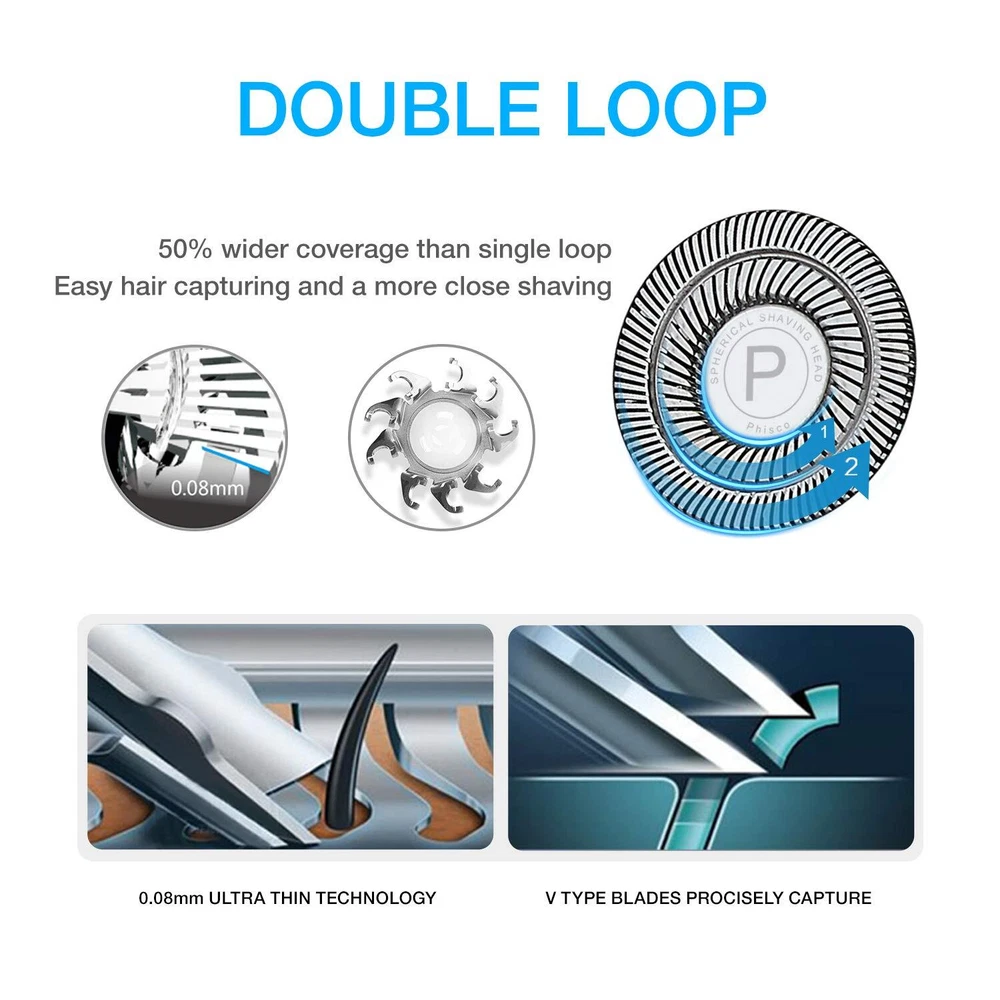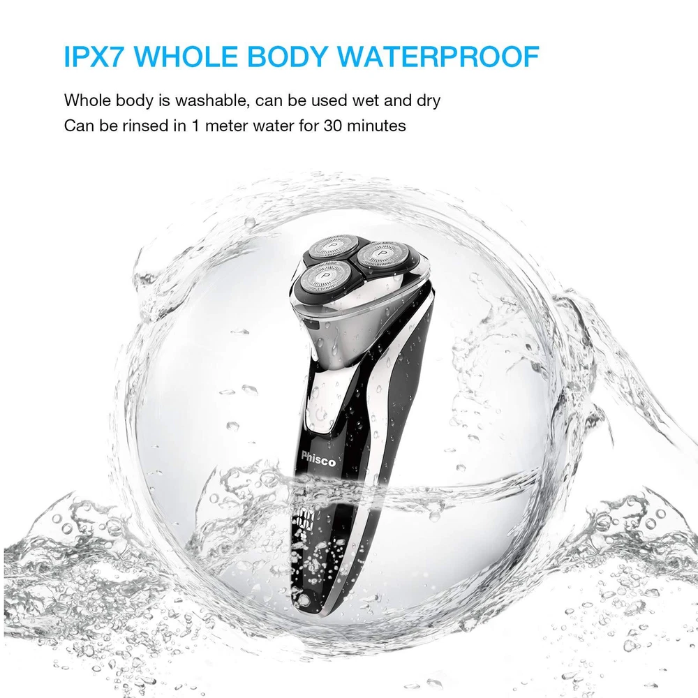 【3D Razor Heads & Pop-up Trimmer】The electric razor head is made by Double-track Ultra Thin Spherical Cutter Net and Self-sharpening Steel Blade, Increases the Wider Contact Surface than Single Track, Delivers a More Smooth, Close and Sharp Shave. It can float in 4 directions and automatically adjust to your face, neck, and even the contour of the jaw. The Pop-up Trimmer Easy one push to open, perfect for sideburns, mustaches. 【Wet and dry, IPX7 Waterproof】The electric shaver has an IPX 7 waterproof rating. Therefore, you can enjoy it with gel or foam in the shower to get a better shaving effect. In addition, it is very convenient to clean under running water. 【USB charging & LED display】It takes 1 hour to fully charge the electric shaver through the USB cable, and it can be used for 120 minutes of shaving. The USB data cable is very portable for charging, allowing you to charge your electric shaver anytime, anywhere. The LED digital display can inform you of the percentage of remaining power for you to check. Convenient and suitable for your daily and travel use. 【Intelligent System】 When the battery is low, the LED display of the electric shaver razor for men will prompt you to charge. When the electric razor for men is in use, the remaining available time will be displayed on the display screen. When the electric razor appears a small "faucet" icon on the body reminds you to clean the electric razor. When you press and hold for 3 seconds which will lock the electric razor to prevent accidental touch. 【Multifunctionality】The Electric Shaver Razor is equipped with a 3D floating shaving head and a pop-up beard trimmer, catering to the diverse needs of users whether for dry shaving or wet shaving. High-Quality Materials: The shaver is fitted with stainless steel blades, ensuring durability and sharpness for a clean and precise shaving experience. Portability and Travel-Friendly: The shaver is designed to be lightweight, making it an ideal choice for users who travel frequently or are often on the go. Long Battery Life: With USB quick charging and a long-lasting battery, the need for frequent recharging is reduced, making it more convenient to use. Men's Electric Shaver with Floating Rotary Razor, IPX7 LED Display, Rechargeable Dry/Wet Men's Shaver, with Pop-Up Beard Trimmer, Ideal for Father's Day Gifts.