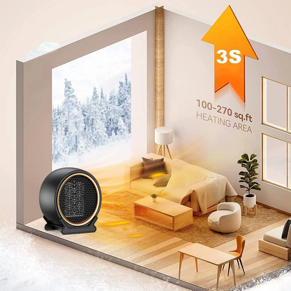Note: Pl ease don't cover the fan when the machine working. Please don't use it for a long time. There is no light in the use of the product, and the picture is a display effect. Factory mass production, the product may have small scratches,we promise all products are brand new. F eatures: Small but Powerful This compact space heater is heated with advanced PTC ceramic, which emits extraordinary intense heat, instant comfort and warmth, mini lightweight and portable, perfect for desktop, countertop bedside, bedroom , bathroom, study, kitchen, office and indoor use. 2 Seconds Fast Heating Fan Mode This 1200W portable heater heats the air around you in 2 seconds! Quality space heaters use PTC ceramic heating technology and high-speed fan, quickly release a large amount of heat for whole house heating, save electricity effectively, long life, for your family's office, and provide a personalized and comfortable temperature. 2 Adjustable Heating Power Two heating modes and one natural wind mode are available, including 1200W (high), 800W (low) power settings .Just press the button you can enjoy comfortable warmth. Low Noise and Energy Saving Automatically adjusts the heating mode according to the room temperature: This indoor heater will save money on your electric bill while keeping you comfortable. Our portable electric heaters are more energy efficient and quieter than traditional ones. The working noise is only 45 decibels. The internal heaters will not interfere with sleeping, studying, reading or working, giving you an ultra-comfortable quiet space. Portable Mini Spac e Heater The low energy consumption heater is easy to carry, light weight and small in size. You can easily take the heater anywhere. Internal heaters are small enough that most people can use them in their bedrooms while they sleep. Heart Warming G ift for Winter This would be ideal for family, friends and girlfriends on cold winter days or while on vacation. When you hand it over to the gift, they will feel the warmth of your heart. Descriptions: Name:Smart Heater Fan Type:Heater Fan/Space Heater Features:800/1200W Power,PTC Material,Overload Protection,2 Levels Winds,Portable Design,Tip-Over Protection,3s Heating Rated voltage:110V,50Hz Power:800/1200W Gear: low gear 800W, high gear 1200W Noise: ≤50dB Applicable area: 10-20 ㎡ Heating mode: PTC ceramic heating Product size: 16.5*11*18cm Single weight: 0.80kg Plug:US Plug Color:White/Black Packages: 1x Space Heater fan 1x Manual