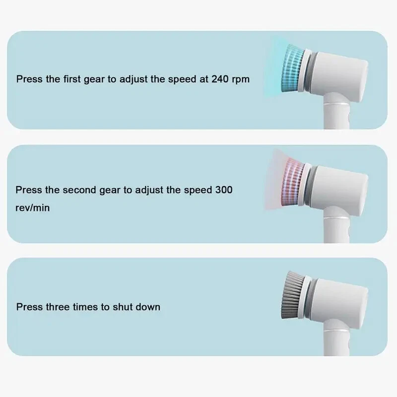 Describe: 1. Lanyard electric brush adopts ergonomic design, portable, light and comfortable to hold 2. Get rid of the annoyance caused by traditional power cord tangles, save time and clean easily and effectively 3. The battery capacity is 1500 mAh, after charging for about 4-5 hours, it can work continuously for up to 200 minutes 4. The speed of the electric scrubber has two adjustments, allowing you to easily and effectively clean stubborn and dirty stains Material: ABS Weight: 437g Product size: 19*7.5*5cm\7.48*2.95*1.96IN Power supply mode: USB power supply Battery capacity: 1500mAh List: 1*Electric brush host 5* brush heads 1*USB charging cable 1*Instruction manual See more product details 1.【Large-capacity Battery】The battery capacity of this cleaning brush is 1500 mAh, after charging for about 4-5 hours, it can work continuously for up to 200 minutes, and the battery life is long 2.【Comfortable Grip】Our bathroom cleaning brushes are comfortable to grip and designed with a non-slip handle for easy grip even when wet and can be used with confidence 3.【Easy to Storage】Our multifunctional electric cleaning brush can be wall mounted for easy storage and it has a storage lanyard at the back for easy to storage 4.【Effortless Atain Removal】This cleaning brush allows you to easily and effectively clean stubborn stains and dirty stains, the speed can be adjusted in two gears, which can save half the cleaning time 5.【Versatile Use】Our multifunctional cleaning brush is used in a kitchen, bedroom, bathroom, etc. It is very suitable for brushing shoes, can brush clothes, cleaning kitchen, toilet, etc.