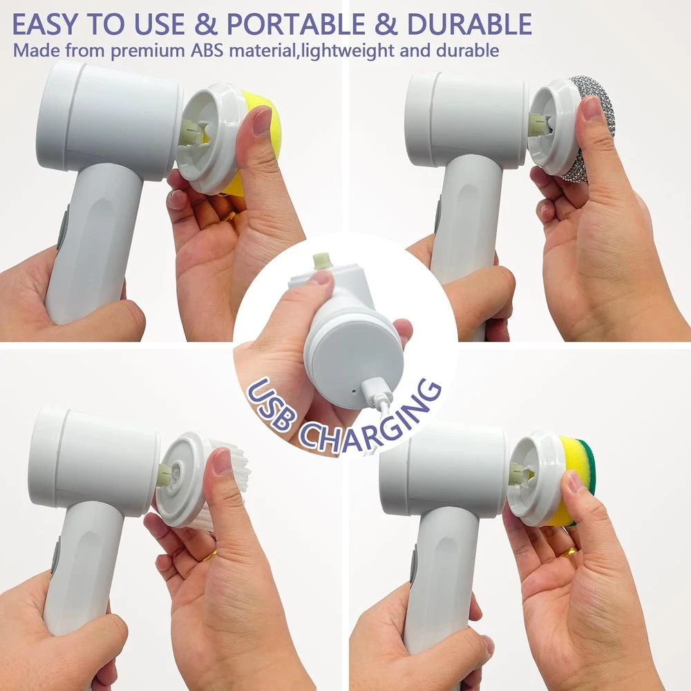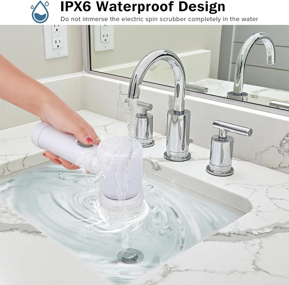 【6in1 Portable Electric Cleaning Brush】This electric spin scrubber is made of high-quality ABS material,,The Portable new cordless handheld electric brush is ergonomically designed, portable, lightweight, comfortable to hold and easy to clean. Get rid of the troubles caused by the entanglement of the traditional power cord, you can clean it anytime and anywhere without dragging the power cord. Save your time and clean easily and effectively. Textured silicone grip provides a firm grip even with wet hands. 【 6 Kinds of Replaceable Brush Heads】 The electric spin scrubber includes 6 high-quality interchangeable brush heads to meet different cleaning needs in various areas. From bathroom bathtubs, kitchens, and grills to stove tops, heavily oiled walls, slots, sinks, floors, grout, toilets, car wheels, tumblers, windows, and dishes, these brush heads are versatile. The storage bracket helps save space and allows easy access to the cleaning brush.Note: Do not immerse the entire electric spin scrubber head in water. Remove the brush head and clean the electric spin scrubber separately. 【Rechargeable & Powerful】 This electric cleaning spin scrubber is equipped with a 2200mAh rechargeable battery and built-in leakage protection technology. It ensures safe charging and provides continuous and powerful operation for up to 40-60 minutes after fully charged for 3-5 hours. With a speed of 350r/min, this electric cleaning brush saves your tired body and effectively tackles stubborn stains. 【Waterproof and Safe cleaning】 With your safety in mind, shower spin scrubber is highly sealed, splash proof and can be used in wet conditions. IPX7 waterproof function ensures safe daily use and longer service life. The handheld power shower scrubber is highly sealed to prevent water damage. 【Quality Assurance & Tips】 If you have any questions about this electric spin scrubber, please contact us and we will respond to you within 24 hours. Tips: 1. Please charge this electric cleaning brush fully before the first use; 2. When cleaning the cordless power scrubber itself, please wipe it with a damp cloth.Additionally, this cleaning tool serves as an excellent gift for your family and friends.